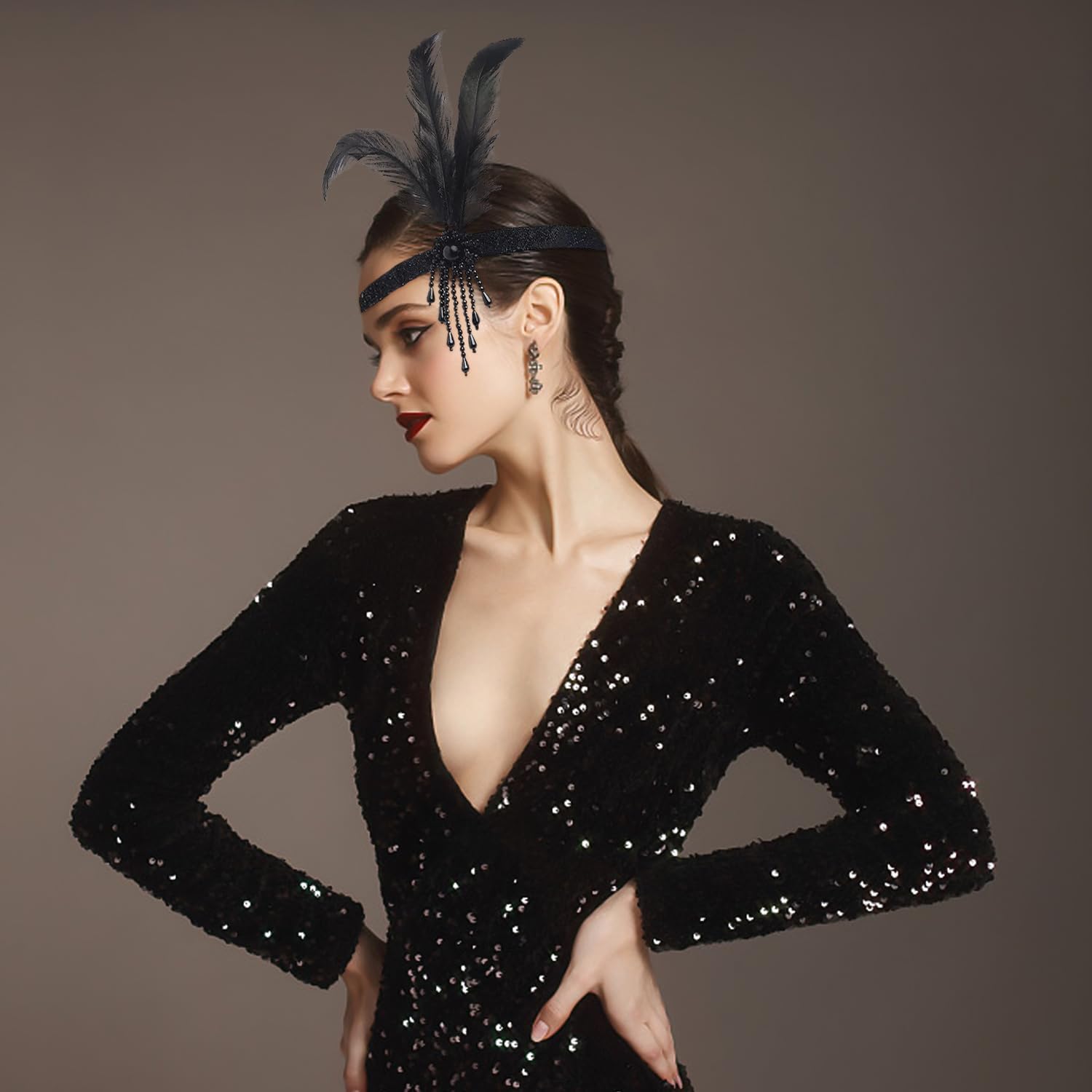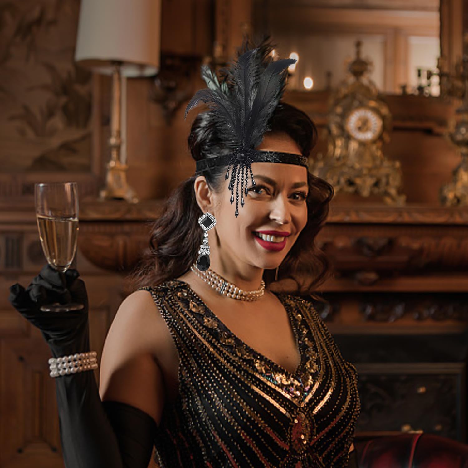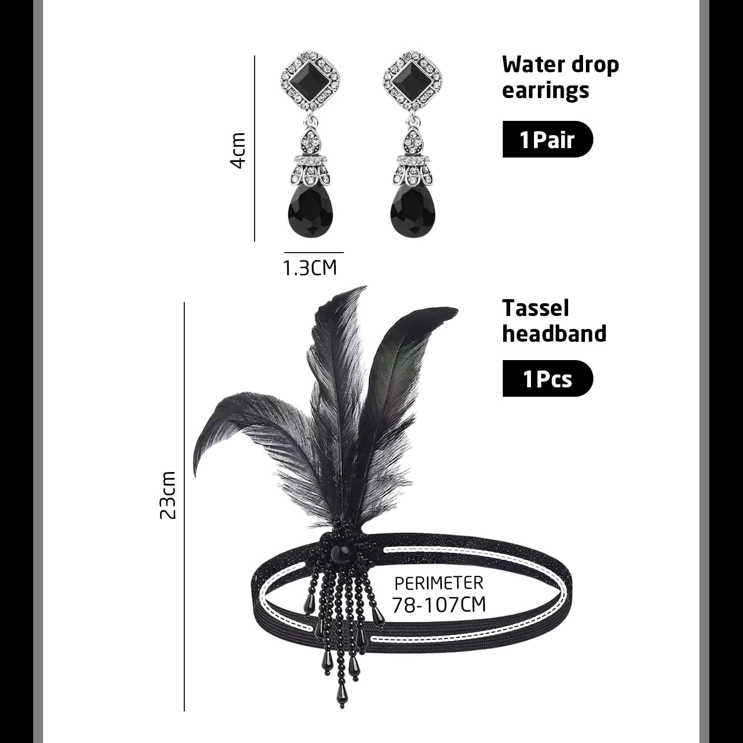 【Contenuto Del Prodotto】 Riceverai 1 Fascia Di Nappe Piuma E 1 Paio Di Orecchini Di Strass. La Fascia È Di Dimensioni Di 50 Cm * 15 Cm, Di Colore Nero E Nero Negli Orecchini, Adatto Per La Corrispondenza Dei Gioielli Retrò E Il Gioco Di Ruolo. 【Materiale Del Prodotto】 La Fascia Di Nappe Della Piuma Di Questo Prodotto È Realizzata Con Piume, Morbida E Confortevole, Leggera E Resistente. Gli Orecchini Sono Realizzati Con Pietre Preziose E Sole, Aggiungendo Alla Splendida E Unicità Degli Accessori Complessivi. 【Design Unico】 Questo Prodotto È Progettato In Modo Univoco Con Una Fascia Di Nappe Con Piuma Con Elee Decorazione Di Piume, Adatta A Una Varietà Di Mascherate E Attività Di Gioco Di Ruolo. Gli Orecchini Sono Progettati Con Goccioline Di Acqua Prismatiche, Che Completano La Fascia E La Combinazione Generale È Elee E Retrò. 【Applicazione Multifunzionale】 Questo Prodotto Non È Solo Adatto A Mascherate E Giocatori Di Ruolo, Ma Anche Come Accessorio Unico Per L'Abbigliamento Quotidiano, Aggiungendo Punti Salienti Al Tuo Look. Che Si Tratti Di Una Festa, Un Festival O Altre Occasioni Speciali, Puoi Ottenere I Riflettori. 【Match Perfect】 Questa Fascia Di Nappe Piuma E Orecchini Di Strass Possono Essere Perfettamente Abbinati A Vari Stili Di Abbigliamento, Che Si Tratti Di Modo Retrò O Moderno, Controllalo Facilmente, Aggiungendo Uno Stile E Fascino Unico Al Tuo Look Generale.