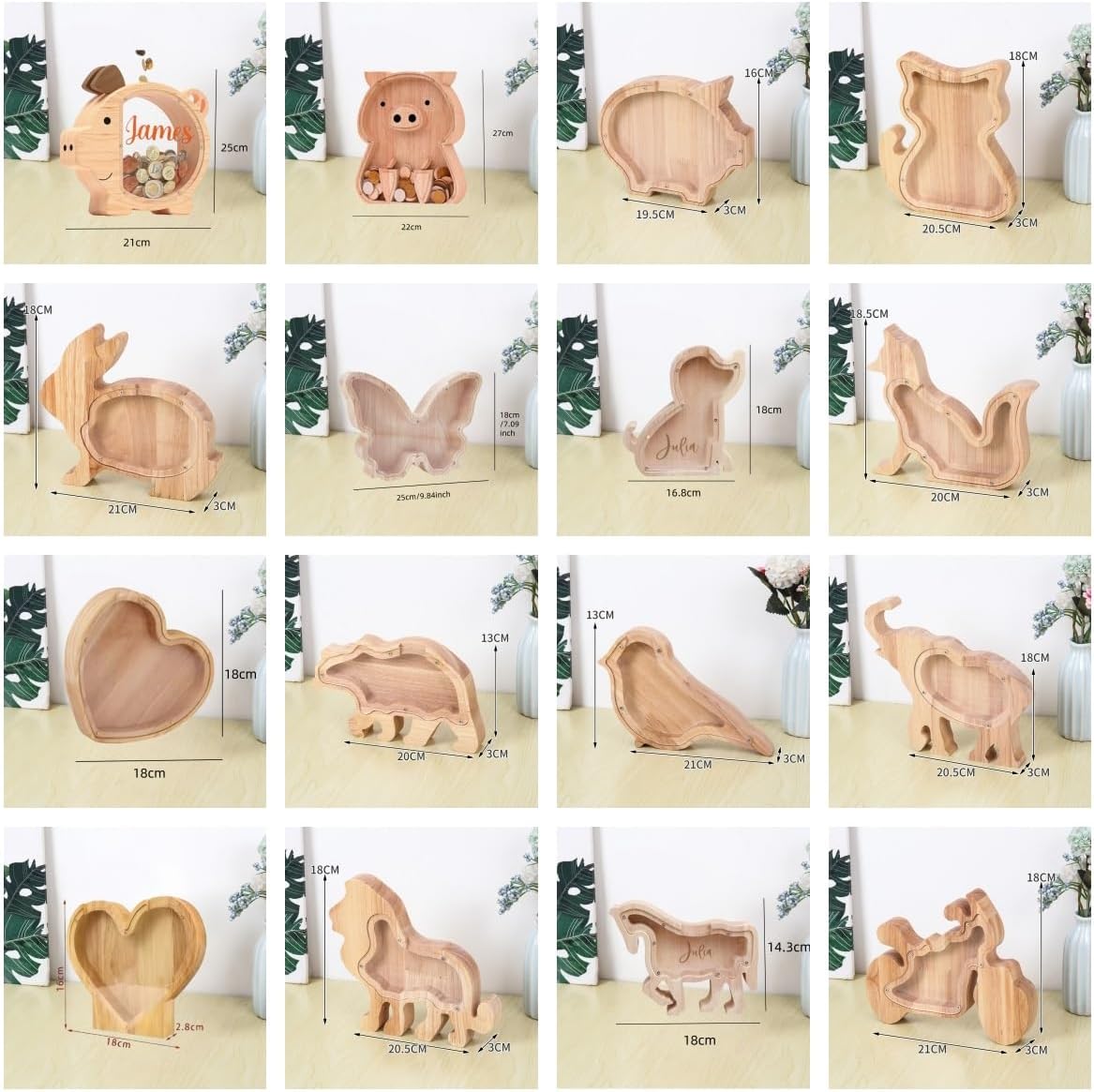 Salvadanaio personalizzato: Il salvadanaio personalizzato è appositamente progettato for essere realizzato con materiali a forma di animale, molto amati dai bambini. Il design è semplice ed elegante, con bordi lisci e arrotondati, sicuri for le manine dei più piccoli. La forma, bella, pratica e unica, rende la vita piena di divertimento e i design accattivanti non solo catturano l'immaginazione, ma li rendono perfetti for uno stile di vita giocoso ma al tempo stesso sicuro Stile personalizzato: Il salvadanaio personalizzato presenta un delizioso design a forma di animale che i bambini adoreranno, trasformandolo in un ricordo speciale e unico che riflette l'individualità di ogni bambino. Non è solo un pratico strumento di risparmio; è uno sfogo creativo che incoraggia i bambini ad essere orgogliosi del loro percorso finanziario, rendendo il risparmio un'esperienza entusiasmante e gratificante Lavorazione artigianale di qualità superiore: Il salvadanaio Personality è meticolosamente realizzato in legno pregiato. Ogni salvadanaio for bambini è sottoposto a un processo di lucidatura di alta qualità, che conferisce una superficie liscia e raffinata, priva di spigoli o sbavature. L'utilizzo di legno naturale garantisce sicurezza e benessere, rendendolo un'ottima scelta for i più piccoli Versatile: Oltre a fungere da salvadanaio, questo prodotto è anche un elegante elemento d'arredo, perfetto for scrivanie, comodini o for essere esposto nei negozi. Aggiunge anche un tocco festoso alle decorazioni for matrimoni e feste di compleanno. Inoltre, è un regalo di compleanno pratico e premuroso for familiari, amici o bambini Istruzioni for l'uso: Il nostro salvadanaio in legno con le lettere dell'alfabeto è progettato for essere aperto senza danneggiarlo. for accedere ai tuoi risparmi, svita delicatamente le viti e rimuovi con cautela il pannello in acrilico trasparente, che ti consentirà di prelevare facilmente i fondi accumulati