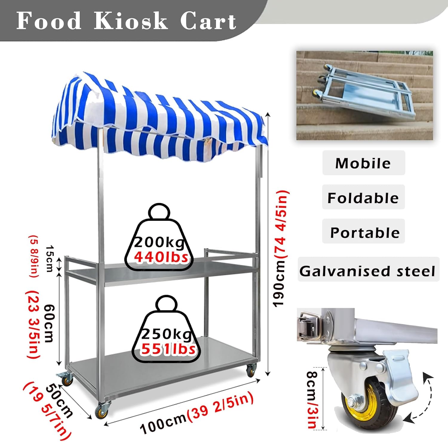 Carrello pieghevole per bancarelle: il nostro carrello per bancarelle è dotato di telai e pannelli staccabili per un rapido utilizzo. L'installazione e il montaggio fai da te richiedono solo pochi minuti. Ideale per venditori ambulanti, bancarelle ed eventi all'aperto, offre una soluzione mobile versatile per le attività commerciali. Chiosco mobile per cibo con ruote da 8 cm: scivola attraverso strade acciottolate o fiere affollate con ruote resistenti da 8 cm. Niente più mal di schiena per il trascinamento delle attrezzature: il tuo stand scorre senza intoppi, anche su campi erbosi o marciapiedi irregolari. Stand con portata di 500 kg: costruito con supporti in acciaio zincato, questo stand può sostenere fino a 500 kg/1102 libbre senza ruggine o deformazioni. La tettoia inclusa garantisce protezione da qualsiasi condizione atmosferica (pioggia/neve) e il suo design resistente dura dai 5 ai 10 anni. Ampio spazio di archiviazione: riponi le cassette dei contanti, i menu di riserva o quel bouquet extra sotto il discreto ripiano inferiore. Niente più inciampi nel disordine, ideale per fioristi, negozi di souvenir, grandi magazzini, centri commerciali o chioschi indipendenti. Intestazione personalizzabile: condividi la tua visione progettuale e noi la realizzeremo! Pannelli pubblicitari pronti per essere affissi attirano l'attenzione e migliorano la professionalità del marchio. Una scelta perfetta per le dimostrazioni di prodotto.