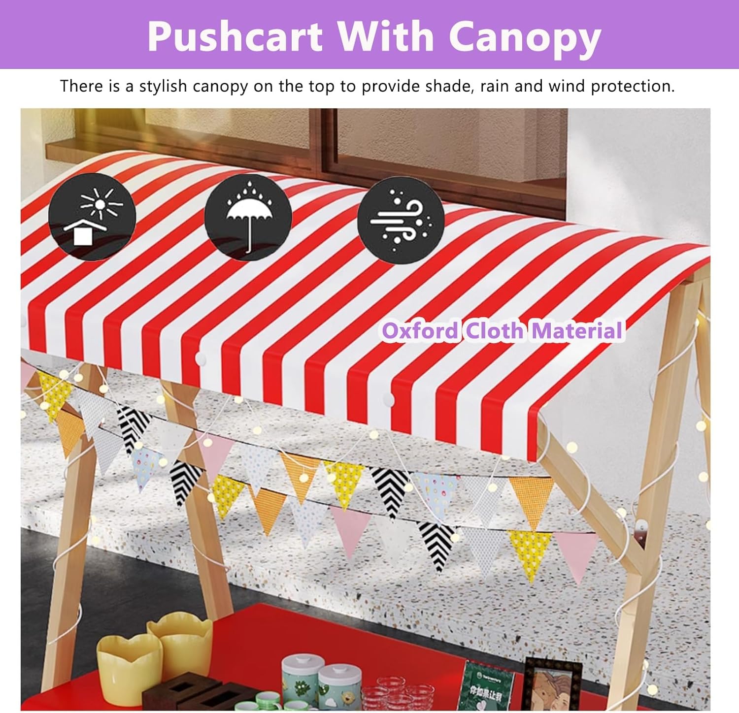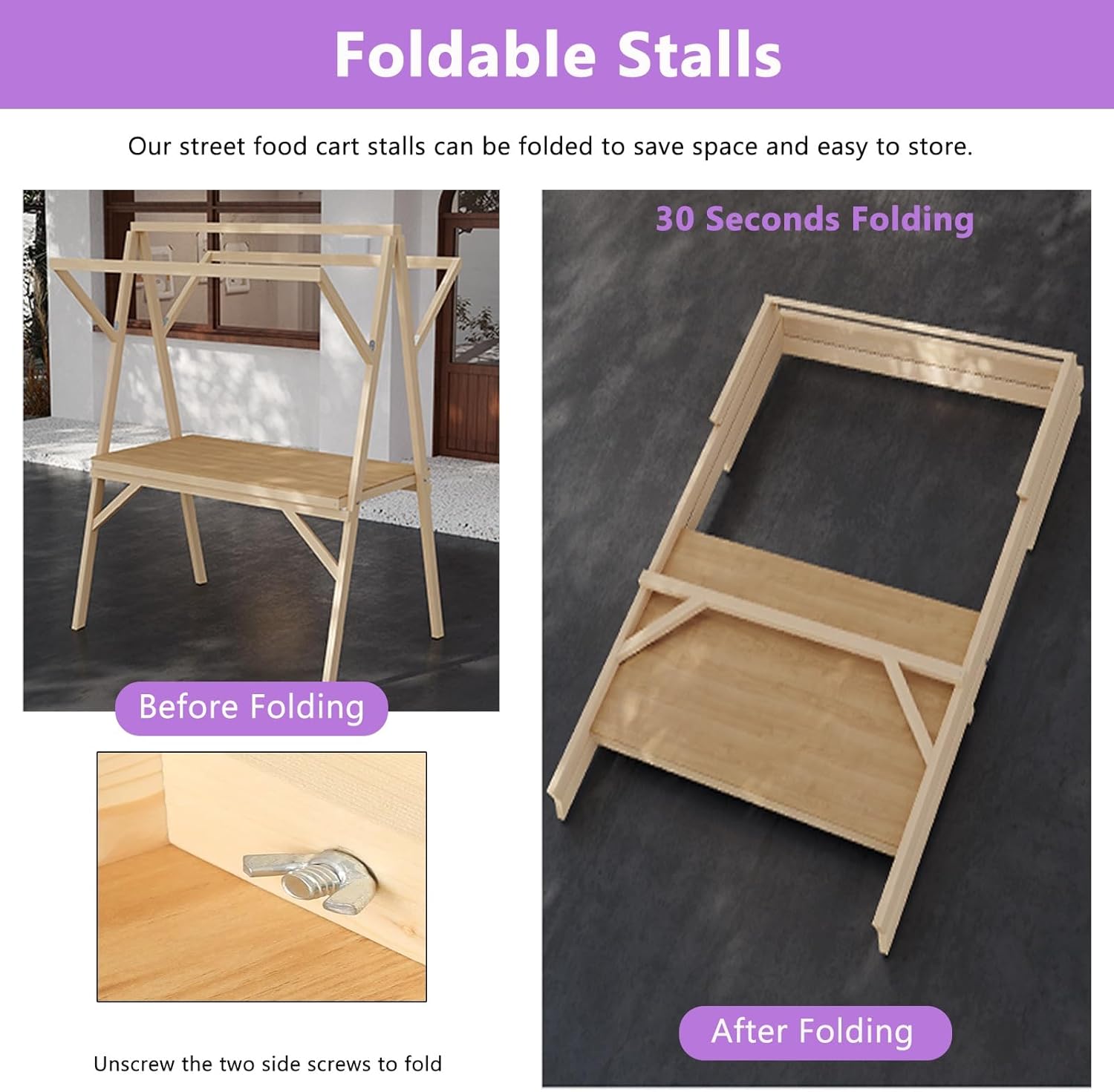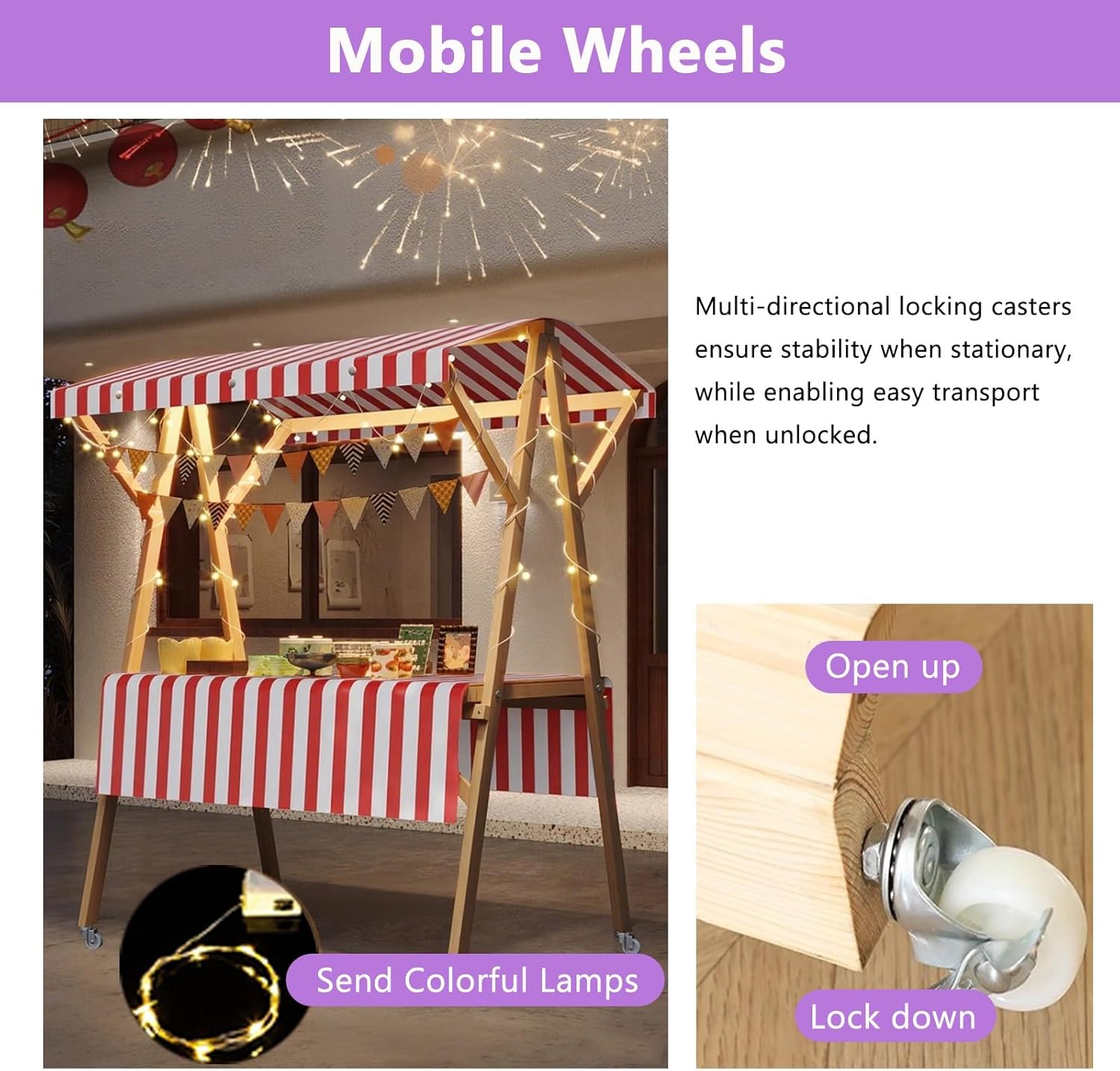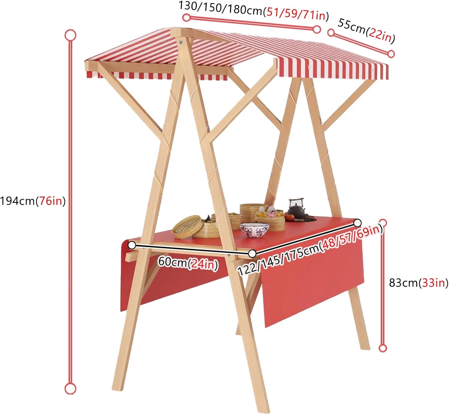 Spazio espositivo fai da te di grandi dimensioni --- 122x60 cm/145x60/175x60 cm (48x24 pollici/57x24/69x24 pollici) L'ampio piano del tavolo offre spazio per i tuoi prodotti e gli strumenti essenziali; appendi decorazioni, luci o cartelli alla robusta struttura per creare uno stand unico - Perfetto per fiere, fiere dell'artigianato o mercati! Fai risaltare il tuo allestimento! Telaio in legno resistente con ruote --- Robusto, resistente e stabile, il nostro espositore per alimenti Vending vanta una capacità di carico di 100 kg/220 libbre, rinforzato con barre trasversali triangolari per distribuire uniformemente il peso ed evitare oscillazioni, perfetto per eventi ad alto traffico. Questo carrello è dotato di ruote resistenti per una mobilità fluida. Tendalino impermeabile e anti-sole --- Questo versatile chiosco da mercato è dotato di una resistente tendalino in tessuto Oxford, che offre un'essenziale protezione solare e salvaguarda i tuoi prodotti dalle condizioni meteorologiche avverse. Facile da montare e piegare --- Questo carrello della spesa è progettato per un montaggio semplice e senza bisogno di attrezzi. Quando non in uso, si ripiega comodamente per riporlo facilmente. Bancarella versatile per venditori --- Migliora le tue capacità di ristorazione! Questo carrello espositivo commerciale è ideale come postazione mobile per la colazione, bar per dessert, chiosco per caffè o stand di concessioni. Il suo design elegante e funzionale si adatta perfettamente a bar, hotel, campus ed eventi, offrendo versatilità e praticità per tutte le tue esigenze di catering.