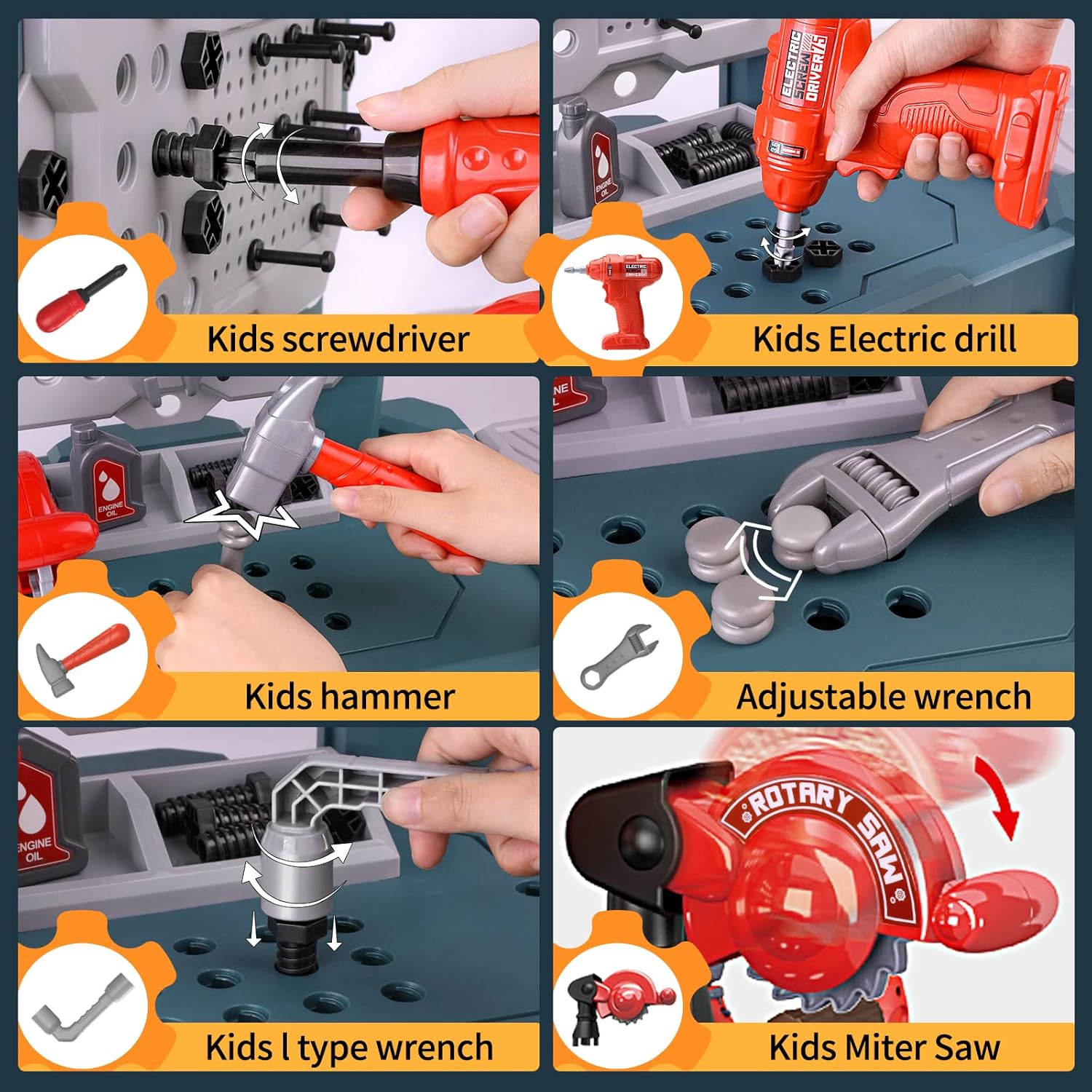 【Materiali sicuri】Il banco da lavoro giocattolo è realizzato in plastica ABS di alta qualità, più resistente e ecologica. Facile da montare e smontare, senza odori, superficie liscia, senza bordi appuntiti, i bambini possono giocare in sicurezza. 【Banco da lavoro per bambini con divisa da lavoro】Questo banco da lavoro per bambini è dotato di trapano e diversi punte per esercitarsi, sega meccanica inclinata, cacciavite con viti, dadi e bulloni, martello a molla e diversi tipi di chiavi, pinze, sega a mano e altri giocattoli. Questo aiuta il vostro bambino a sviluppare la creatività e acquisire nuove abilità fin da piccolo. 【Banco degli attrezzi e banco da lavoro integrati】È possibile trasformare il Cassetta Attrezzi in un banco da lavoro assemblando le parti. Quando il gioco è finito, è possibile smontarlo e trasformarlo nuovamente in un Cassetta Attrezzi. Il design compatto lo rende facile da trasportare per il vostro bambino, sia in viaggio, alle feste o nel cortile di casa. 【Sviluppo delle abilità del vostro bambino】Il set di attrezzi per bambini è stato creato con materiali di alta qualità e una struttura robusta, permettendo al bambino di divertirsi in sicurezza per lungo tempo. Il vassoio sotto il banco da lavoro è ampio e profondo abbastanza da contenere tutti i pezzi. Il piano del banco da lavoro è perfetto per fingere di tagliare o trapanare, stimolando l'immaginazione del bambino. 【Regalo perfetto per bambini dai 3 ai 5 anni】È il regalo perfetto per compleanni, premi, Natale, Capodanno e altre occasioni per bambini dai 3 ai 5 anni. Se non siete soddisfatti del giocattolo, contattateci immediatamente.