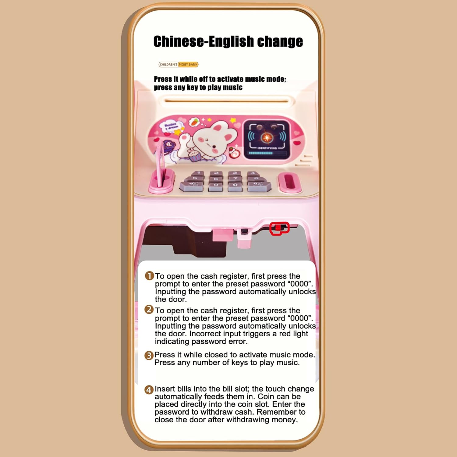 Esperienza Musicale Interattiva: Con la sua capacità di produrre effetti sonori deliziosi e melodie automatiche, questo salvadanaio rende il risparmio coinvolgente per i bambini, aggiungendo un tocco gioioso ad ogni deposito di moneta durante l'uso quotidiano o le occasioni speciali. L'esperienza interattiva e musicale trasforma il risparmio in un gioco, mantenendo alto l'interesse e la motivazione, con suoni che rendono ogni transazione un momento di felicità e coinvolgimento per i giovani Design Giocattolo Educativo: L'ATM Salvadanaio per bambini presenta un design di prelievo sicuro studiato attentamente, garantendo che i giovani ti possano accedere ai propri risparmi solo in momenti appropriati. Questo promuove comportamenti responsabili di spesa e risparmio in scenari quotidiani, aiutando a sviluppare abitudini finanziarie fin dall'infanzia. Il prodotto combina apprendimento e divertimento, rendendo l'educazione finanziaria accessibile e coinvolgente per i più piccoli Rotolo Monete Coinvolgente: Con un design ispirato alla tecnologia, il salvadanaio ATM per bambini introduce un rotolo monete coinvolgente che rende il rituale del risparmio sia funzionale che piacevole. Questo meccanismo interattivo aiuta i giovani ti a sviluppare migliori abitudini di risparmio senza sforzo, trasformando l'accumulo di monete in un'esperienza educativa e divertente che promuove la gestione finanziaria quotidiana in modo naturale e coinvolgente per tutta la famiglia. Divertimento con Riconoscimento Facciale: Questo Bancomat per Bambini fornisce una simulazione realistica di bancomat con il divertimento del riconoscimento facciale, consentendo ai giovani ti di immergersi in un ambiente bancario esperienziale mentre apprendono le del risparmio e della spesa durante il di gioco, promuovendo l'apprendimento finanziario attraverso attività interattive e coinvolgenti. Giocattolo Monetario Coinvolgente: Con un aspetto delizioso ispirato al coniglio, il Kids ATM trasforma il risparmio in un'esperienza divertente, aiutando i bambini a sviluppare abitudini monetarie positive mentre lo usano come accessorio giocoso e strumento di apprendimento pratico quotidianamente. Questo salvadanaio rende l'educazione finanziaria un momento di gioia e interazione, i piccoli possono esplorare il valore del denaro attraverso il gioco immaginativo, rafforzando le abilità di