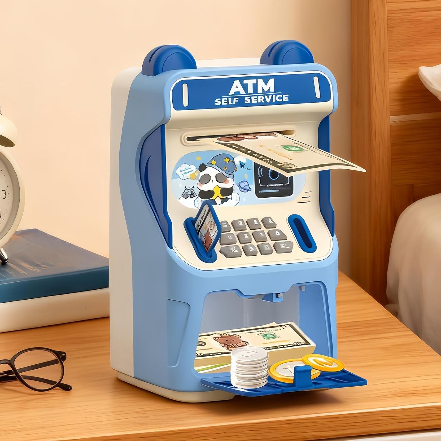 Compagno di Risparmio Divertente: Progettato per intrattenere i bambini, il salvadanaio ATM combina segnali audio allegri e musica automatica, creando un'esperienza di risparmio immersiva che incoraggia i bambini a divertirsi gestendo le loro monete durante momenti di gioco. Questo compagno di risparmio rende l'attività piacevole e educativa, promuovendo la responsabilità finanziaria in modo ludico, con audio e musiche che trasformano il risparmio in un'avventura coinvolgente e memorabile per i Strumento Risparmio Interattivo: Questo giocattolo educativo per il denaro combina interazione ludica con un design di prelievo sicuro, permettendo ai bambini di depositare e ritirare fondi in modo sicuro. Favorisce lo sviluppo di competenze di alfabetizzazione finanziaria precoce in modo coinvolgente, rendendolo per ambienti di apprendimento familiare. Attraverso il gioco, i bambini imparano i concetti base del risparmio e della gestione del denaro, mentre si divertono in un contesto c Gestione Denaro Interattiva: Il salvadanaio ATM include un meccanismo di rotolo monete coinvolgente che migliora l'esperienza rituale del risparmio, consentendo agli utenti di monitorare visivamente il processo di accumulo. Questa funzionalità ispira un approccio tecnologico alla gestione del denaro nella vita quotidiana, promuovendo competenze finanziarie essenziali attraverso un metodo interattivo e moderno che rende il risparmio accessibile e stimolante per i bambini. Simulazione Bancaria Realistica: Con la speciale funzione di riconoscimento facciale, il Bancomat per Bambini offre una sessione bancaria interattiva e unica, permettendo ai bambini di esplorare il risparmio e le transazioni in modo creativo e innovativo, favorando l'educazione finanziaria attraverso un'esperienza pratica e coinvolgente con il gioco del bancomat. Cassaforte Divertente per Bambini: Progettato con un tema a coniglio, il Kids ATM funge da strumento interattivo per incoraggiare il risparmio adatto ai bambini, rendendo piacevole il deposito di denaro e favorendo la consapevolezza finanziaria attraverso scenari di gioco immaginativi a casa. Questo salvadanaio coinvolgente aiuta i piccoli a imparare il valore del denaro in modo giocoso, mentre si divertono a usare la cassaforte per simulare operazioni di risparmio quotidiane, trasformand