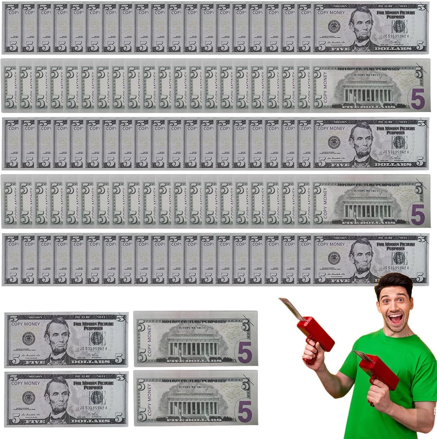 Aumento del valore da collezione: progettato per gli amanti delle repliche dettagliate degli stili iconici delle banconote, combina armoniosamente il design creativo con il significato commemorativo storico. Texture realistica: superficie coordinata dal design autentico, garantisce il rispetto delle normative sugli oggetti di scena. Offre un'esperienza tattile simile alle banconote vere, supportata da marchi da collezione facilmente riconoscibili. Momento clou dell'evento: crea un'atmosfera di festa travolgente con realistici manichini da un dollaro che deliziano tutti gli ospiti con immagini dinamiche sparse - ideali per anniversari e carnevali Elemento decorativo versatile: aggiungi profondità giocosa alla tua casa con banconote retrò adattabili che consentono composizioni creative su pareti o tavoli e danno ad ogni stanza un carattere individuale Gesto creativo: mostra il tuo affetto con questa simbolica banconota da un dollaro, appositamente progettata per momenti indimenticabili come vacanze o compleanni. Un regalo speciale pieno di calore.