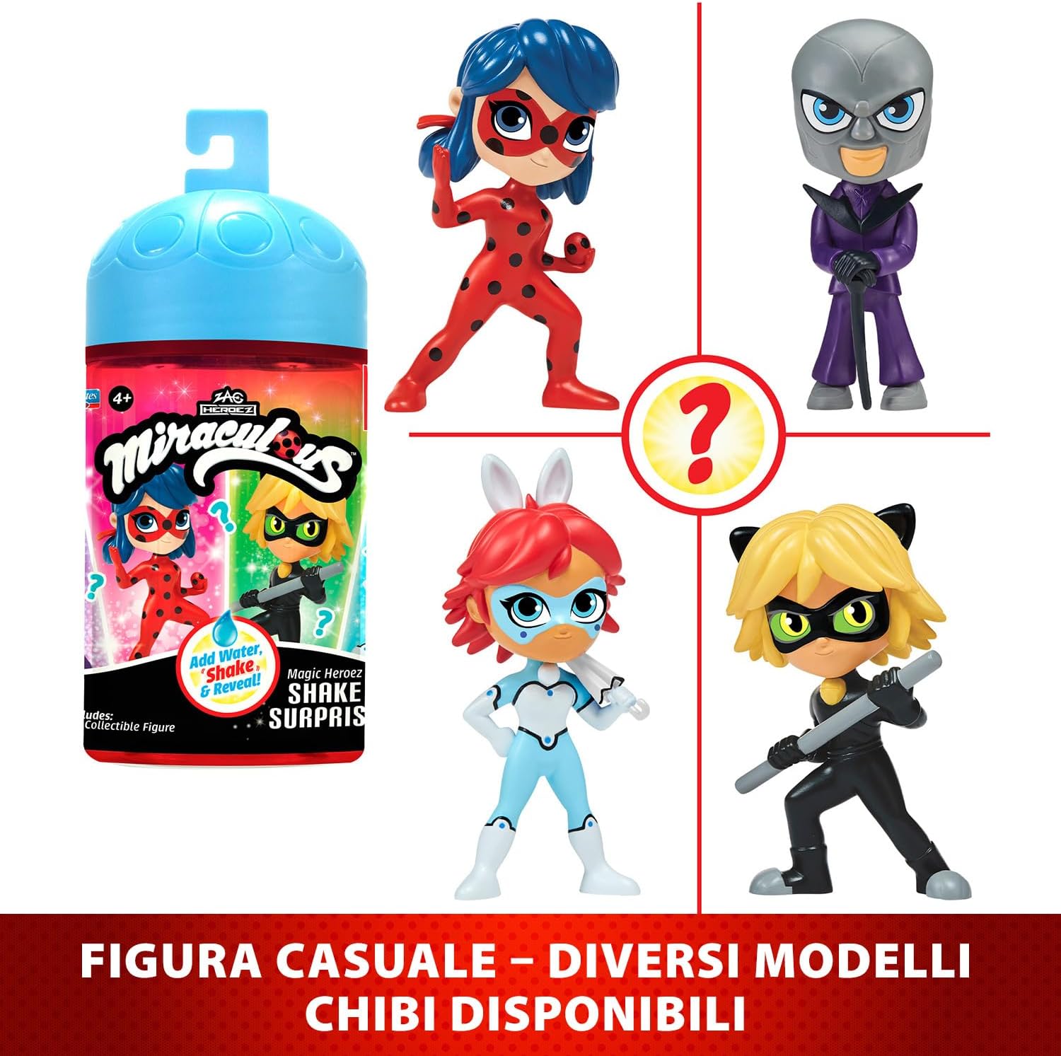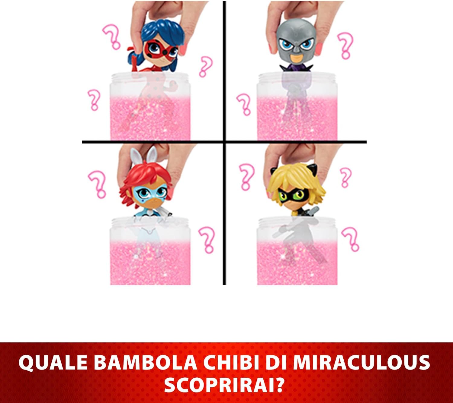 CHIBI MIRACULOUS CAMBIA COLORE - Scopri le Chibi Miraculous Color Change Surprise di Bandai. Un concetto semplice e divertente per svelare l'aspetto sorpresa di un personaggio Miraculous in versione mini Chibi. Quale Chibi Miraculous scoprirai? Scoprilo! FACILE DA USARE - Per rivelare l’aspetto della tua figura Miraculous, rimuovi il tappo e la pellicola opaca che copre il tubo. Svuota completamente il contenuto e riempi il contenitore con acqua calda fino alla linea indicata. Agita fino a che l’acqua cambia colore. Estrai quindi la figura dal tubo per svelare il suo aspetto. MINI FIGURE CASUALI - Colleziona i 6 personaggi Miraculous Chibi Color Change Surprise da 10 cm per ricreare mini avventure nel mondo di Miraculous! REGALO MIRACULOUS SORPRENDENTE - Le piccole figure Miraculous Color Change Surprise da 10 cm sono un regalo perfetto per sorprendere i bambini e i loro genitori grazie all’effetto sorpresa del color reveal. Crea nuove avventure per Ladybug e i suoi amici con la collezione Miraculous di Bandai! COLLEZIONE MIRACULOUS - Scopri tutta la gamma di giocattoli Miraculous di Bandai: universi di gioco, bambole articolate da 26 cm, mini bambole da 12 cm, peluche Kwami, testa da pettinare Marinette, set di trasformazione e accessori.