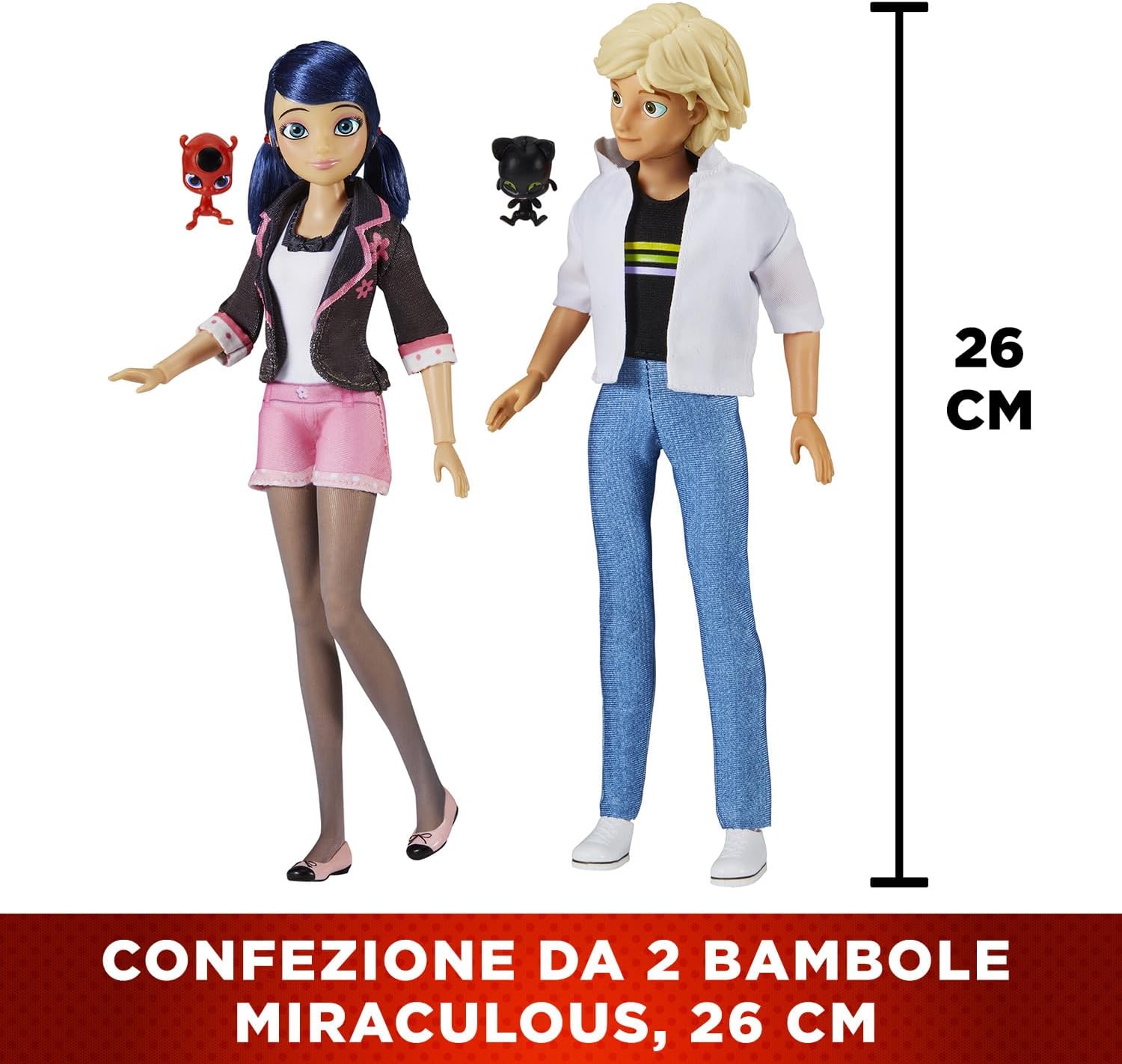 SET 2 BAMBOLE MIRACULOUS - Bandai presenta il set di action figures per bambini ispirato alla serie Miraculous Ladybug, le avventure di Ladybug e Chat Noir. Questo giocattolo per bambini vi trasporterà nell'universo di Miraculous, a Parigi. GIOCATTOLI MIRACULOUS MARINETTE E ADRIEN - Questo set Miraculous include i due personaggi iconici della serie nella loro vita quotidiana: Marinette e Adrien. Ogni action figure per bambini è alta 26 cm. COFANETTO BAMBOLE CON ACCESSORI INCLUSI - Gli abiti e le scarpe sono rimovibili, e i capelli di Marinette sono pettinabili. Ogni action figure di Miraculous è accompagnata dal suo Kwami: Adrien con Plagg e Marinette con Tikki. GIOCATTOLO PER BAMBINI 4+ - Le bambole Miraculous sono adatte ai bambini dai 4 anni in su. Ogni bambola articolata è facile da maneggiare e può assumere diverse posizioni per un’esperienza di gioco ancora più ricca. UNIVERSO MIRACULOUS - Scopri tutti i giocattoli Miraculous Ladybug di Bandai per immergerti nell’affascinante universo della tua serie preferita. Questi giocattoli Miraculous Ladybug sono compatibili con la stanza di Marinette e le altre bambole da 26 cm.