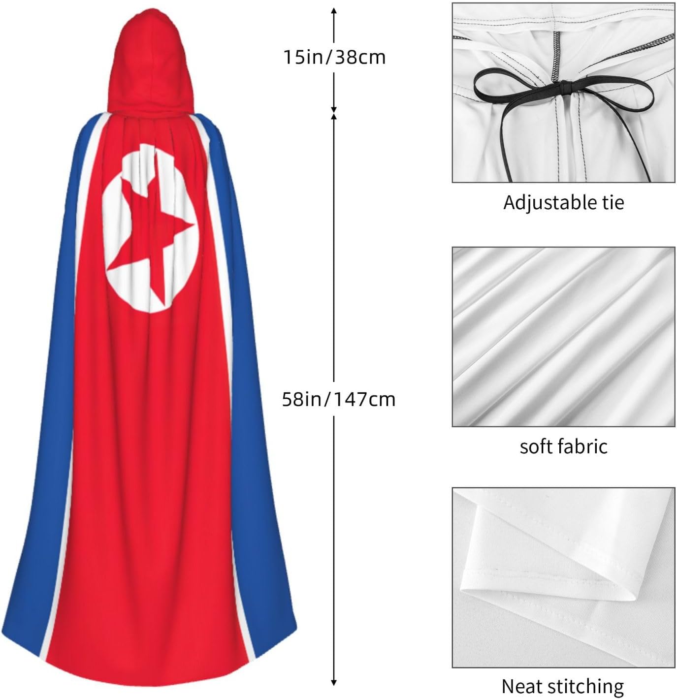 Questo versatile mantello con cappuccio è l'accessorio ideale per feste, Halloween, cosplay e altro ancora. Realizzato in fibra di poliestere di alta qualità, il mantello è comodo e non prurito. Caratterizzato da una stampa a tutta larghezza, aggiunge un tocco unico e intrigante al tuo costume. \r Il mantello è progettato per uso adulto, con un grande cappuccio, un nodo al colletto e senza cerniera, che lo rende comodo e facile da indossare. La sua versatilità lo rende perfetto per una varietà di occasioni, tra cui Halloween, costumi da gioco di ruolo, costumi da palcoscenico, feste in maschera, feste a tema, balli, esposizione di fumetti e altro ancora. Pulire questo mantello è un gioco da ragazzi, grazie al suo tessuto lavabile in lavatrice. Aggiungi questo versatile mantello con cappuccio alla tua collezione di costumi e distinguiti alla tua prossima festa o evento!