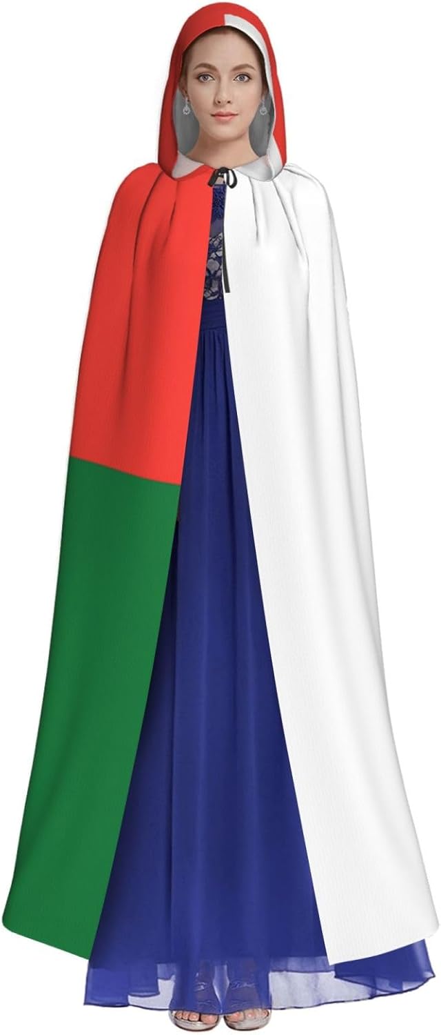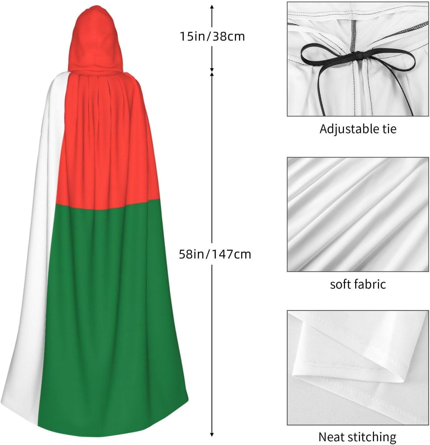 Mantello con cappuccio per adulti con bandiera del Madagascar con cappuccio oversize con papillon, senza cerniera, adatto per Halloween, costumi cosplay, costumi da palco, mascherata, feste a tema, balli, fumetti, ecc. Può essere utilizzato per feste, martedì grasso, Halloween, feste in costume e molto altro ancora.