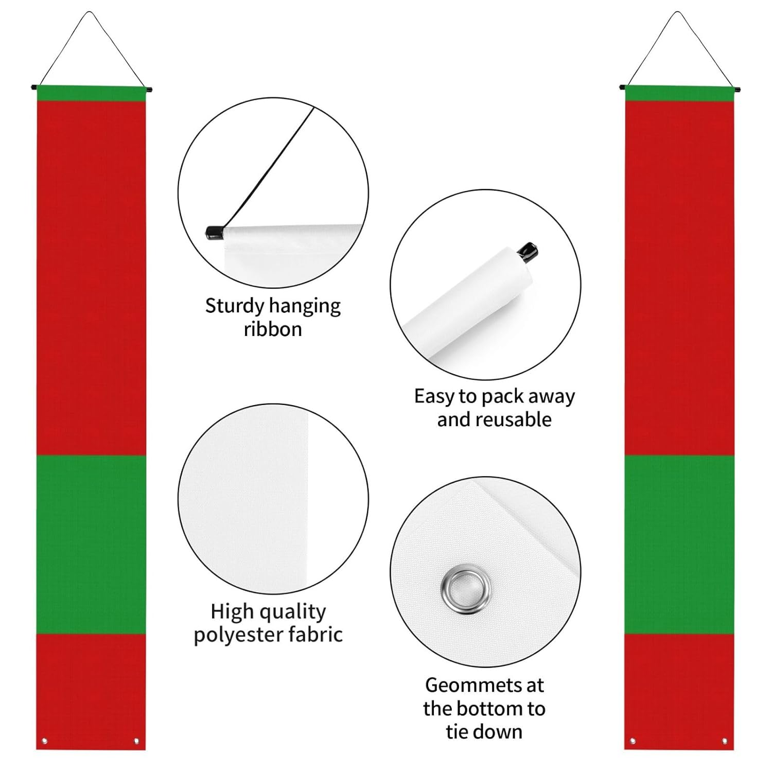 Dimensioni versatili per molteplici scenari: misurando 30 cm di larghezza e 180 cm di altezza, questo striscione stampato con bandiera della Bielorussia si adatta perfettamente a vari ambienti come spazi interni, pareti esterne, giardini e portici. Materiale in poliestere: realizzato in tessuto di poliestere, questo striscione di laurea stampato con bandiera della Bielorussia è robusto, lavabile e riutilizzabile. Per feste, cerimonie o come decorazione per la porta d'ingresso, garantendo un utilizzo duraturo. Installazione semplice: dotato di un'asta per appendere e di corde sulla parte superiore, questo striscione per portico di laurea può essere appeso facilmente ovunque all'interno o all'esterno senza complicate installazioni. Si piega in modo compatto per riporlo facilmente dopo le celebrazioni. Accessori all-inclusive: viene fornito con aste e corde preassemblate per appenderlo senza problemi. Inoltre, due fori passacavo inferiori consentono di proteggerlo dal vento aggiungendo pesi o utilizzando nastro adesivo per una maggiore stabilità. Tutte le celebrazioni di laurea: adatte per decorare eventi universitari, scuole superiori o feste di laurea. Che si tratti di uno sfondo interno o di una festa all'aperto, questo striscione aggiunge fascino festivo e funge da regalo di laurea.