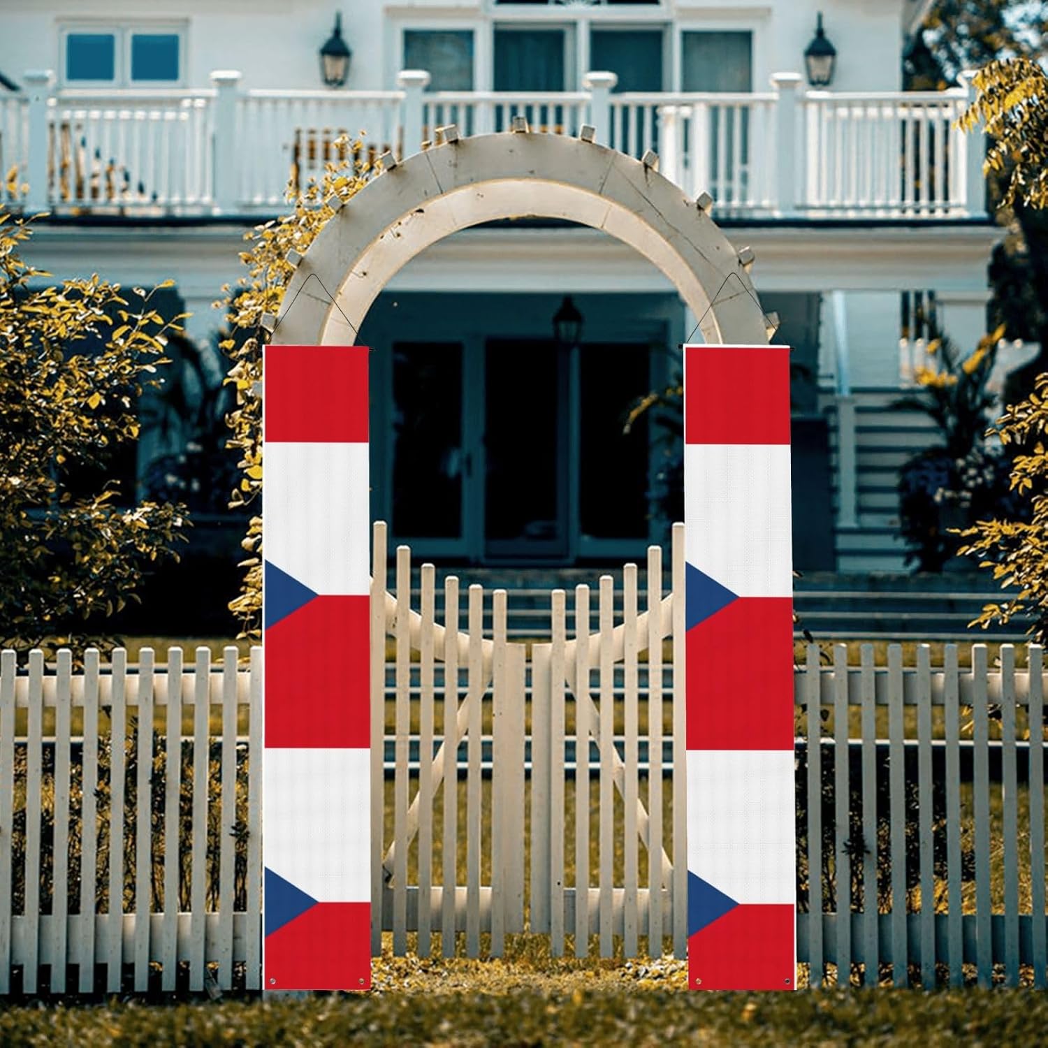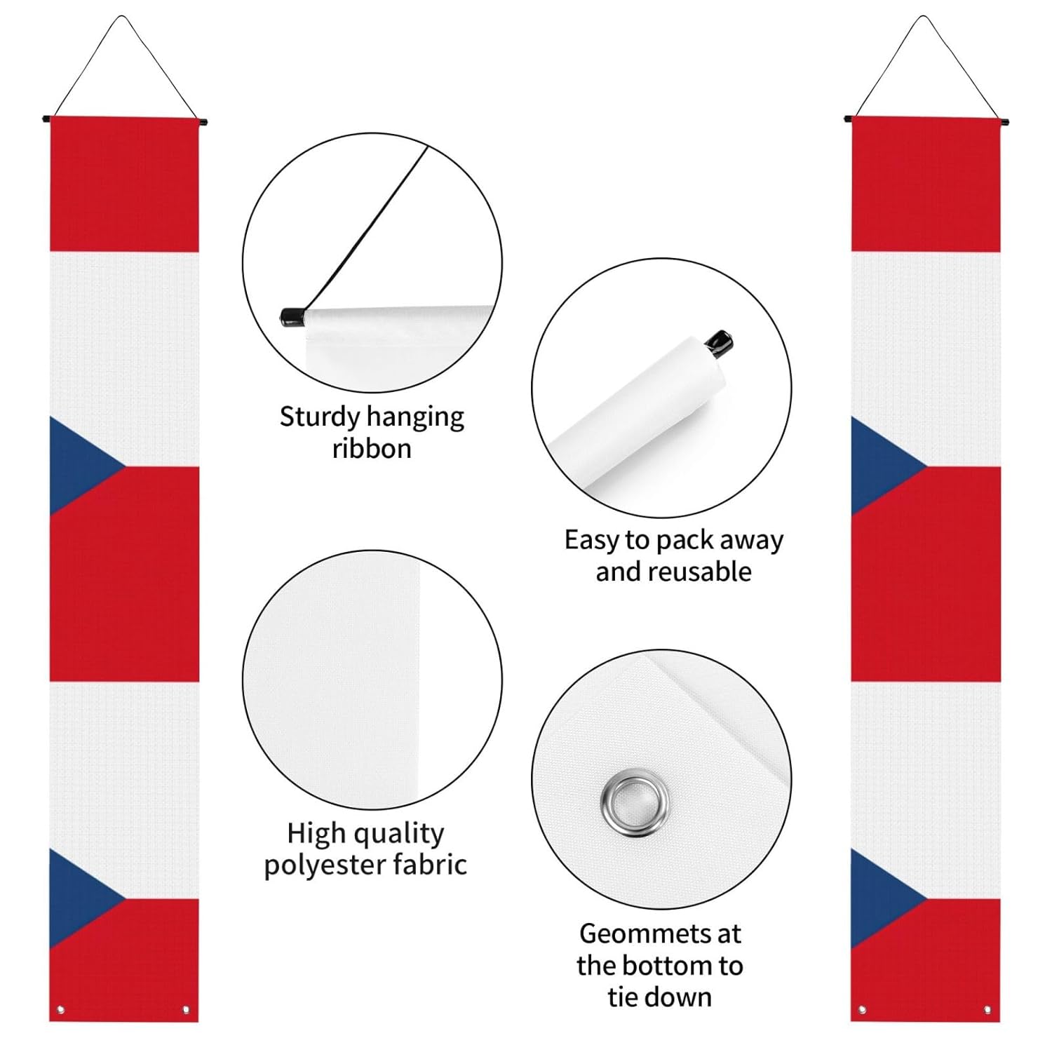 Dimensioni versatili per molteplici scenari: misurando 30 cm di larghezza e 180 cm di altezza, questo striscione stampato con bandiera della Repubblica Ceca si adatta perfettamente a vari ambienti come spazi interni, pareti esterne, giardini e portici. Materiale in poliestere: realizzato in tessuto di poliestere, questo striscione stampato con la bandiera della Repubblica Ceca è robusto, lavabile e riutilizzabile. Per feste, cerimonie o come decorazione per la porta d'ingresso, garantendo un utilizzo duraturo. Installazione semplice: dotato di un'asta per appendere e di corde sulla parte superiore, questo striscione per portico di laurea può essere appeso facilmente ovunque all'interno o all'esterno senza complicate installazioni. Si piega in modo compatto per riporlo facilmente dopo le celebrazioni. Accessori all-inclusive: viene fornito con aste e corde preassemblate per appenderlo senza problemi. Inoltre, due fori passacavo inferiori consentono di proteggerlo dal vento aggiungendo pesi o utilizzando nastro adesivo per una maggiore stabilità. Tutte le celebrazioni di laurea: adatte per decorare eventi universitari, scuole superiori o feste di laurea. Che si tratti di uno sfondo interno o di una festa all'aperto, questo striscione aggiunge fascino festivo e funge da regalo di laurea.