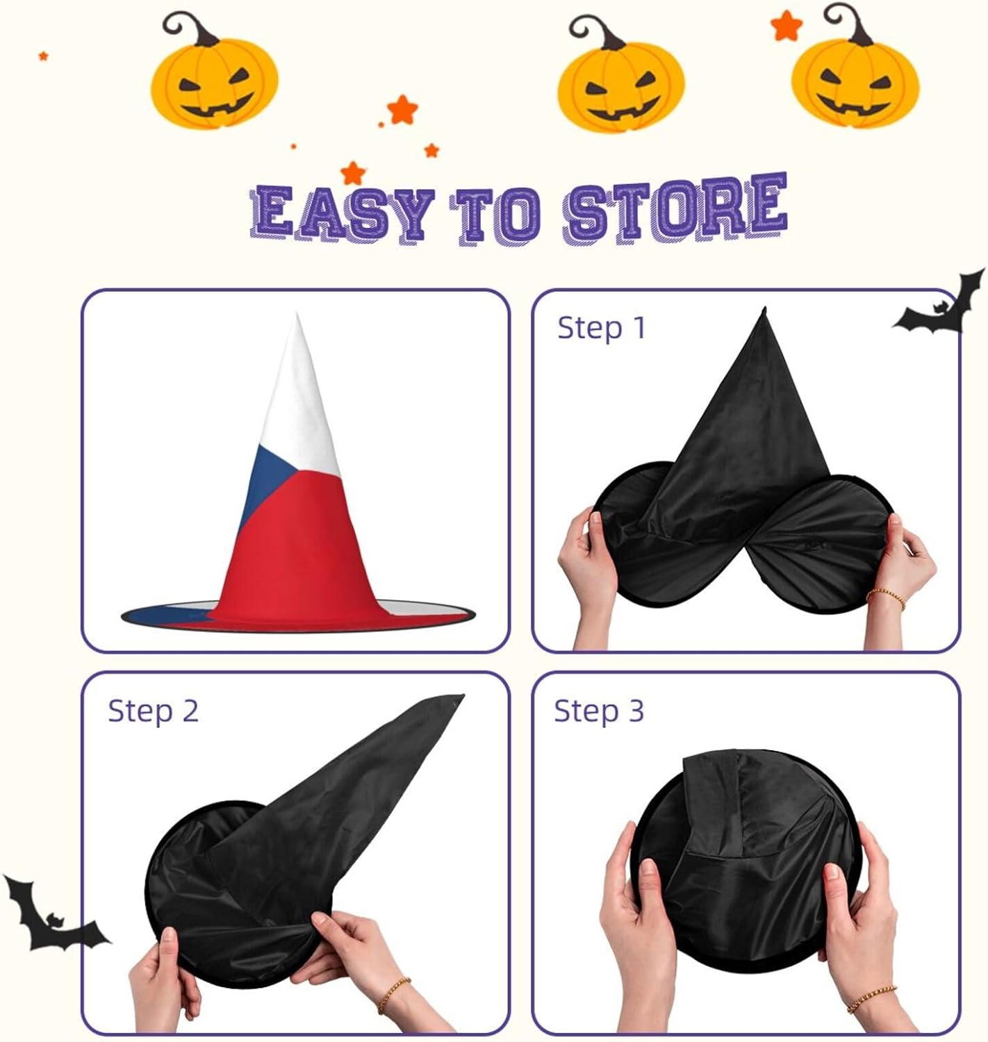 Realizzati in tessuto Oxford superiore, i nostri cappelli con stampa bandiera della Repubblica Ceca garantiscono durata e longevità. Il design unico consente di ridurre al minimo la parte superiore del cappello e i bordi di essere attorcigliati e piegati, rendendo i cappelli salvaspazio e facilmente portatili. Ogni cappello con stampa bandiera della Repubblica Ceca è di dimensioni generose per adattarsi alla maggior parte delle persone ed è leggero per un uso confortevole. Si prega di leggere la tabella delle taglie prima di effettuare l'ordine. Il design versatile della nostra bandiera della Repubblica Ceca stampa cappelli da strega di Halloween li rende perfetti per varie occasioni. Sono lavabili in lavatrice e ad asciugatura rapida per una facile manutenzione.