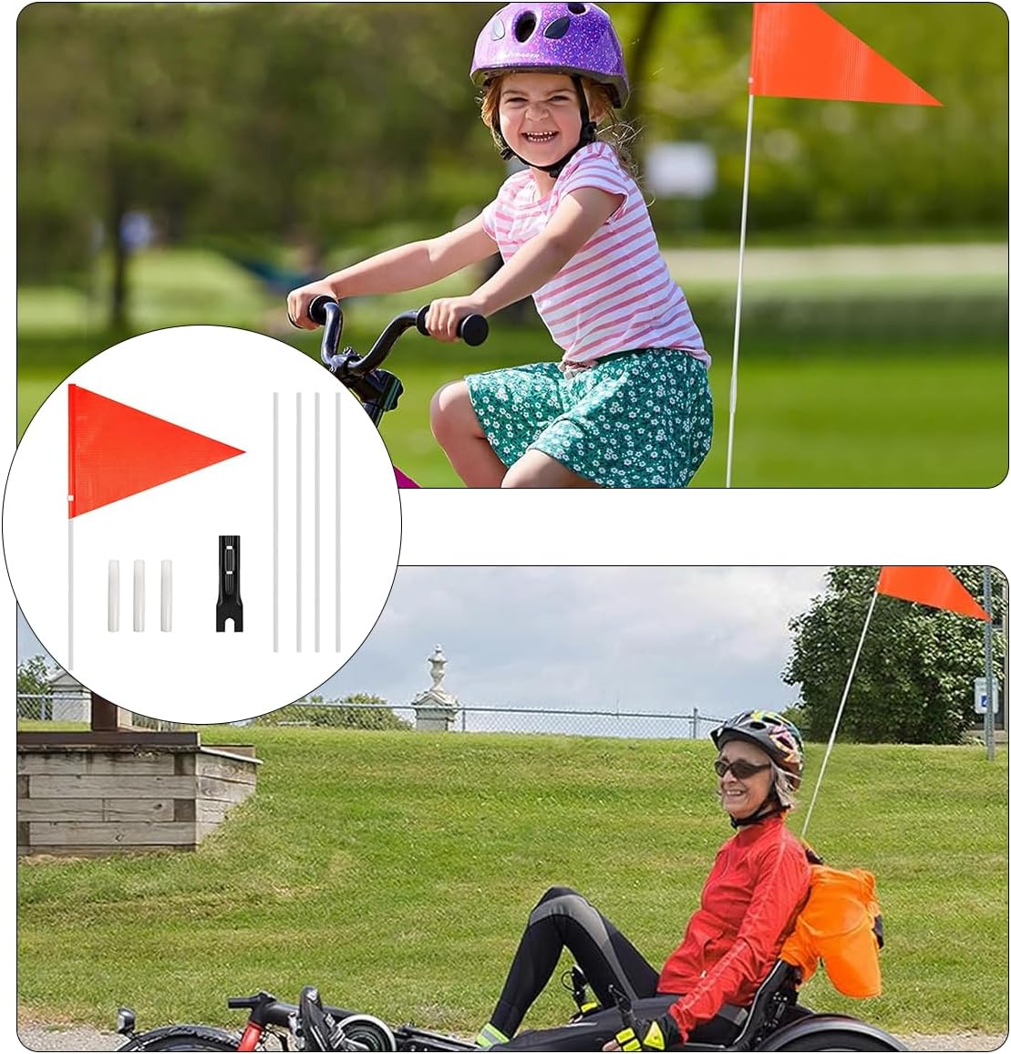 Con il robusto palo in fibra di vetro, la bandiera può diventare abbastanza resistente contro vento forte, rami di alberi, cartelloni pubblicitari e altri possibili impatti, anche facile da installare. quindi puoi usarli in modo casuale anche nei giorni di pioggia. Tutte le bandiere nella confezione sono realizzate in poliestere, stampate a colori, non facili da strappare, impermeabili e facili da pulire. La bandiera di sicurezza con supporto per bicicletta può essere montata sull'asse posteriore delle biciclette con una chiave. Si attacca facilmente all'asse posteriore di una bicicletta per la massima visibilità, una bandiera di sicurezza può farti notare al massimo dal veicolo. Le bandiere alte offrono una visuale sicura a grandi e piccini e possono funzionare su diversi tipi di biciclette, rimorchi per biciclette o qualsiasi altro veicolo ricreativo all'aperto, come sottomarini e tende da esterno. L'asta della bandiera è realizzata in fibra di vetro di alta qualità, affidabile, durevole, antivento e impermeabile. Puoi usarlo per molto tempo.