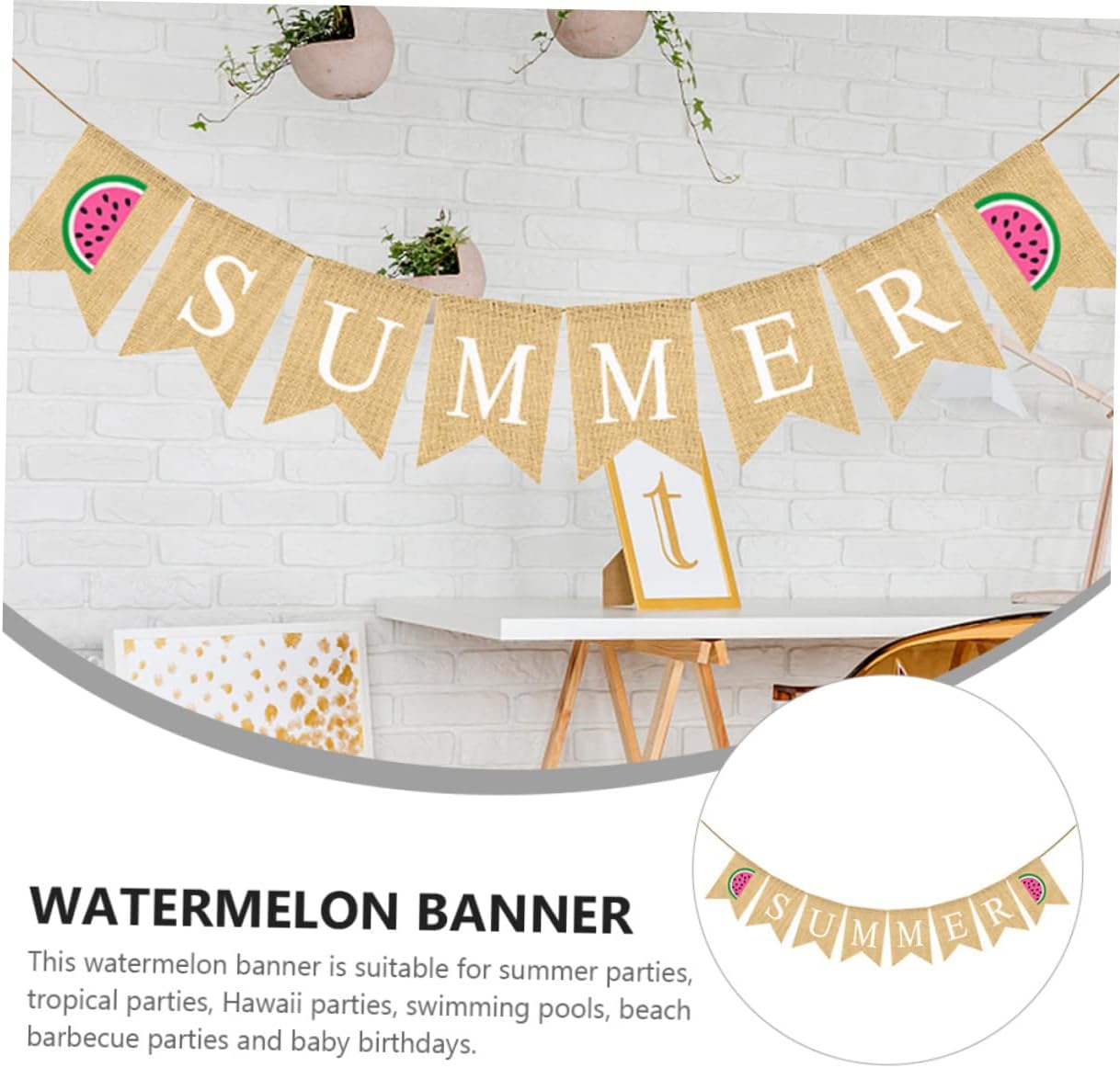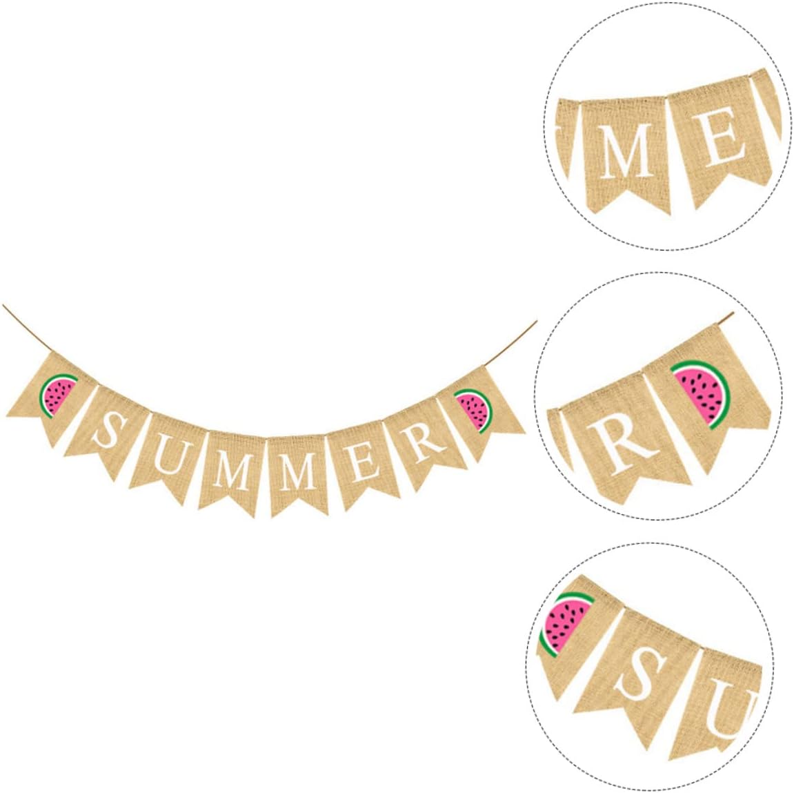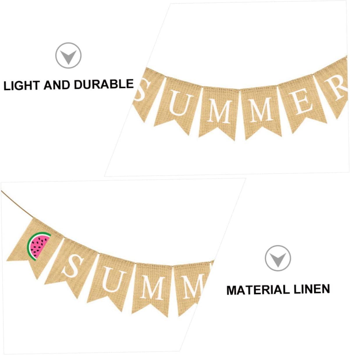 Striscione con bandiera in lino - Striscione estivo in tela, ghirlanda di stendardi estivi in iuta, stendardo sospeso, bandiera a coda di rondine con cartello anguria per piscina, spiaggia, barbecue, decorazione per feste alle Hawaii Striscione per feste estive - Il motivo dell'anguria pieno di interessante atmosfera estiva. Beach flag – striscione di tela con anguria. Questo striscione con anguria è adatto per feste estive, feste tropicali e feste alle Hawaii. Decorazione bandiera ghirlanda per feste - Lo striscione ghirlanda estiva può essere utilizzato per vari eventi estivi tra cui: festa estiva, festa tropicale, festa alle Hawaii, festa in piscina o barbecue sulla spiaggia. Semplicemente sul muro, sulla finestra, sulla mensola del camino, nel corridoio, sul tavolo da dessert e anche come sfondo per una cabina fotografica. Banner estivo già pronto: può anche servire come sfondo per una cabina fotografica e scattare alcune foto interessanti.