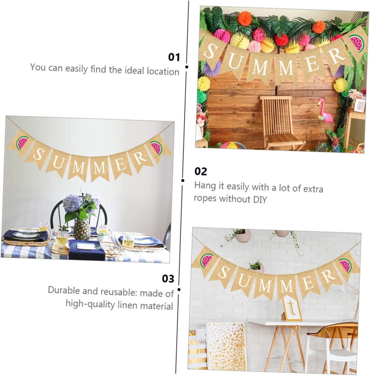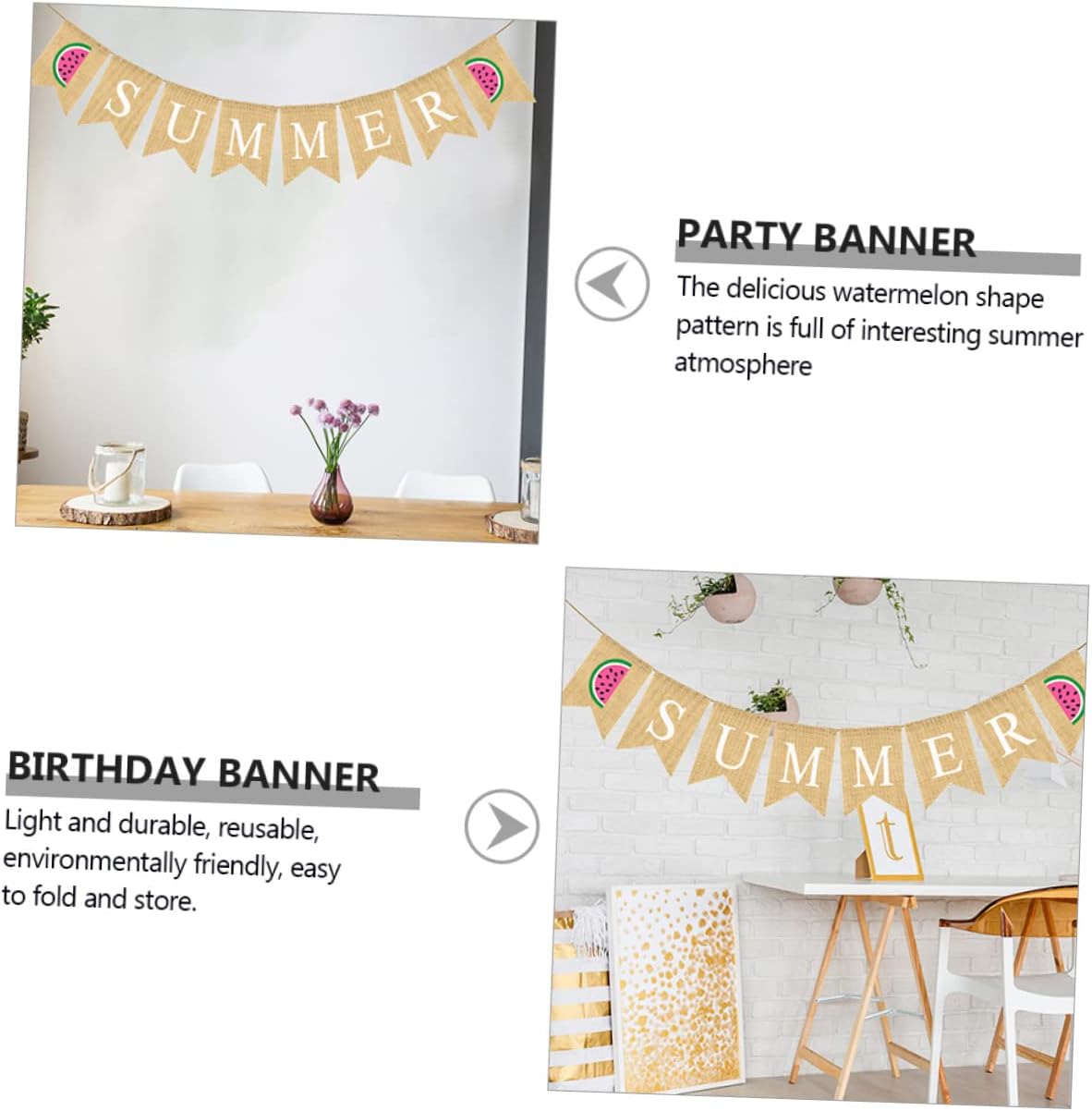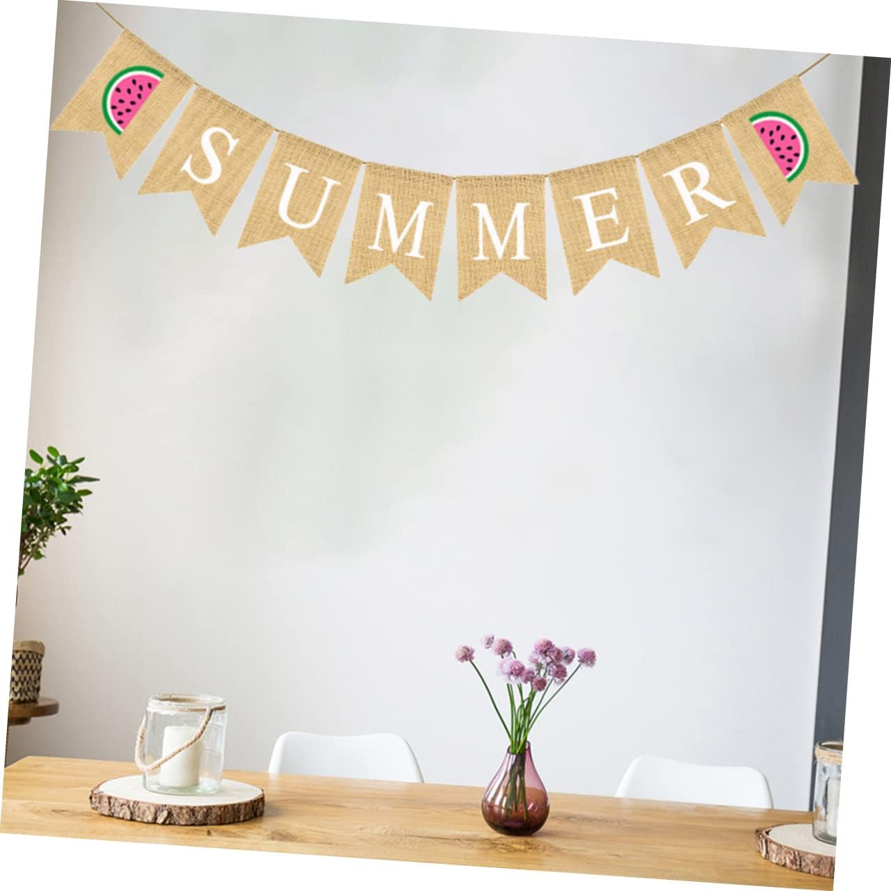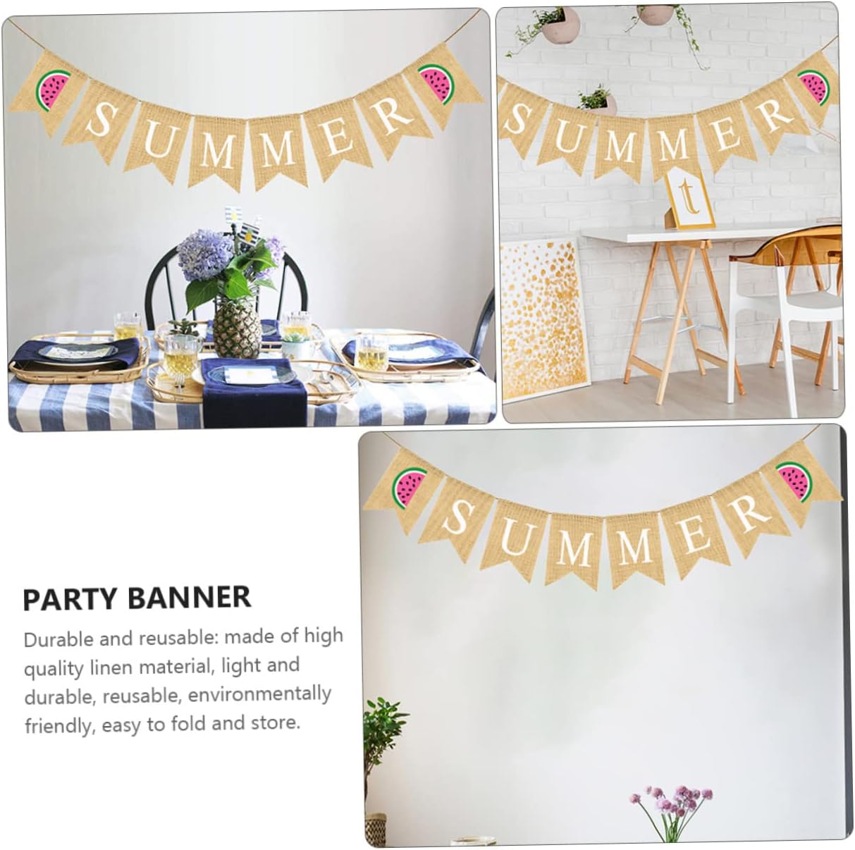 Striscione con bandiera in lino - Striscione estivo in tela, ghirlanda di stendardi estivi in iuta, stendardo sospeso, bandiera a coda di rondine con cartello anguria per piscina, spiaggia, barbecue, decorazione per feste alle Hawaii Striscione per feste estive - Il motivo dell'anguria pieno di interessante atmosfera estiva. Beach flag – striscione di tela con anguria. Questo striscione con anguria è adatto per feste estive, feste tropicali e feste alle Hawaii. Decorazione bandiera ghirlanda per feste - Lo striscione ghirlanda estiva può essere utilizzato per vari eventi estivi tra cui: festa estiva, festa tropicale, festa alle Hawaii, festa in piscina o barbecue sulla spiaggia. Semplicemente sul muro, sulla finestra, sulla mensola del camino, nel corridoio, sul tavolo da dessert e anche come sfondo per una cabina fotografica. Banner estivo già pronto: può anche servire come sfondo per una cabina fotografica e scattare alcune foto interessanti.