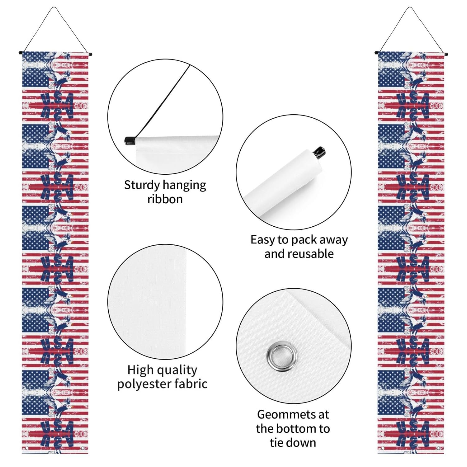 Caratteristiche per un uso conveniente: la nostra bandiera di laurea nazionale americana con striscioni con aquila è dotata di un palo e di una corda per sospenderli, che li rendono facili da installare e pronti per essere appesi ovunque tu voglia. Materiale: realizzate in tessuto poliestere di alta qualità, queste bandiere nazionali americane con stendardi con aquila sono robuste, durevoli, lavabili e riutilizzabili, garantendo che durino per molteplici celebrazioni. DIMENSIONI PER VISIBILITÀ: Con 11,8 pollici di larghezza e 67 pollici di altezza, offrono un'ottima visibilità e fanno una dichiarazione alla tua festa di laurea. Regalo per i laureati: questi striscioni sono un meraviglioso regalo di laurea, aggiungendo un tocco di festa a qualsiasi ambiente, sia all'interno che all'esterno. Occasioni di versatilità: adatti a tutti i tipi di feste di laurea, riunioni e celebrazioni, questi striscioni sono versatili e possono essere utilizzati per qualsiasi cerimonia o evento.