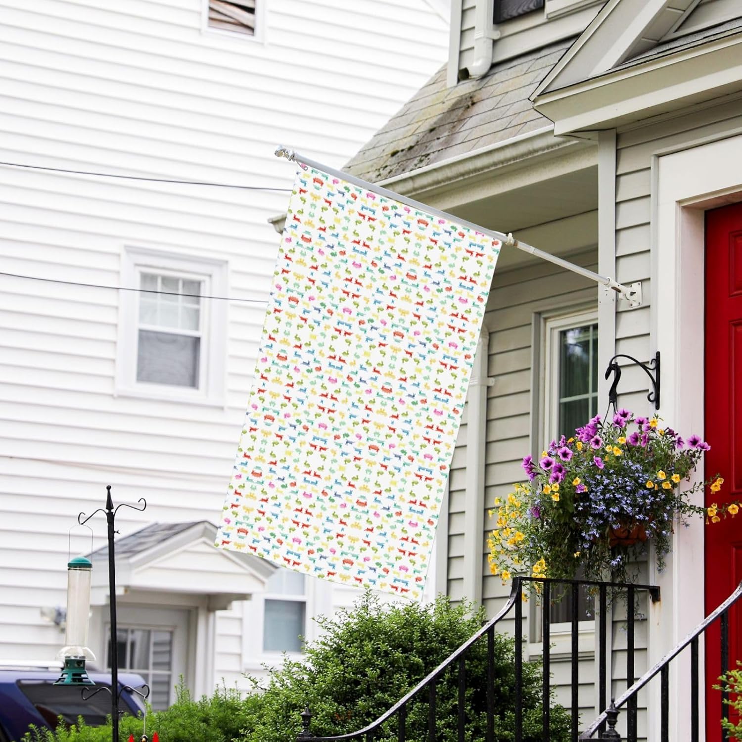 Dimensioni generose: con una larghezza di 90 cm e un'altezza di 150 cm, questo striscione per feste offre un'ampia area espositiva Materiale: questa bandiera è realizzata in tessuto di poliestere, garantendo durata, flessibilità e un design leggero che sventola anche con la minima brezza Multiuso: perfetta per decorazioni esterne, questa bandiera può essere appesa nel tuo giardino, prato, balcone, corridoio o alle feste. Aggiunge un elemento festoso e accattivante a ogni occasione, creando un'atmosfera felice e festosa. Installazione semplice: il banner è dotato di occhielli in metallo che lo rendono facile da appendere. Il tessuto leggero e svolazzante cattura la brezza e aggiunge un tocco dinamico alla tua decorazione esterna. Mostra con orgoglio il tuo banner ovunque con facilità. Istruzioni per la cura: questo banner può essere lavato a mano o lavato delicatamente in lavatrice. Evitare lo sbiancamento e la stiratura ad alte temperature per mantenere i colori vivaci e l'integrità del tessuto