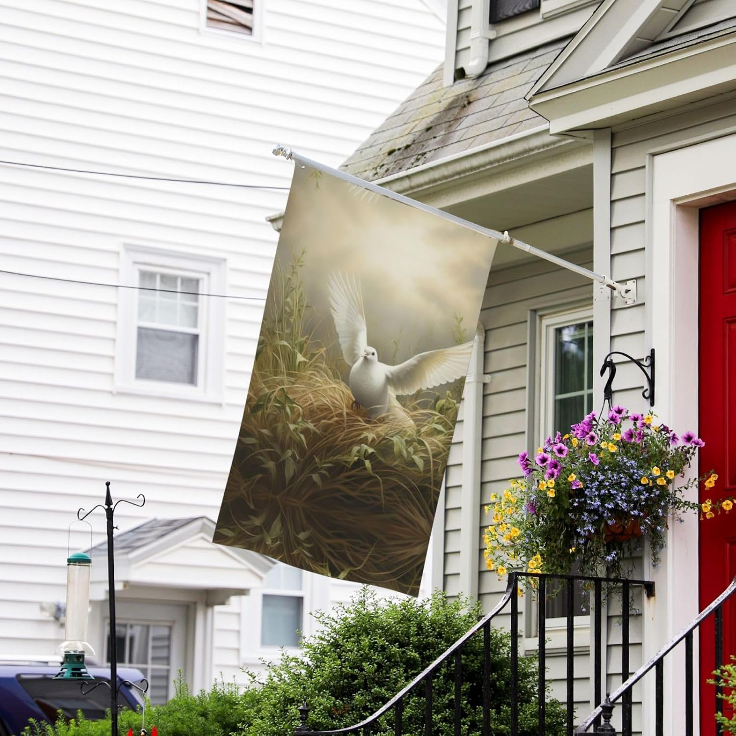 Dimensioni generose: con una larghezza di 90 cm e un'altezza di 150 cm, questo striscione per feste offre un'ampia area espositiva Materiale: questa bandiera è realizzata in tessuto di poliestere, garantendo durata, flessibilità e un design leggero che sventola anche con la minima brezza Multiuso: perfetta per decorazioni esterne, questa bandiera può essere appesa nel tuo giardino, prato, balcone, corridoio o alle feste. Aggiunge un elemento festoso e accattivante a ogni occasione, creando un'atmosfera felice e festosa. Installazione semplice: il banner è dotato di occhielli in metallo che lo rendono facile da appendere. Il tessuto leggero e svolazzante cattura la brezza e aggiunge un tocco dinamico alla tua decorazione esterna. Mostra con orgoglio il tuo banner ovunque con facilità. Istruzioni per la cura: questo banner può essere lavato a mano o lavato delicatamente in lavatrice. Evitare lo sbiancamento e la stiratura ad alte temperature per mantenere i colori vivaci e l'integrità del tessuto