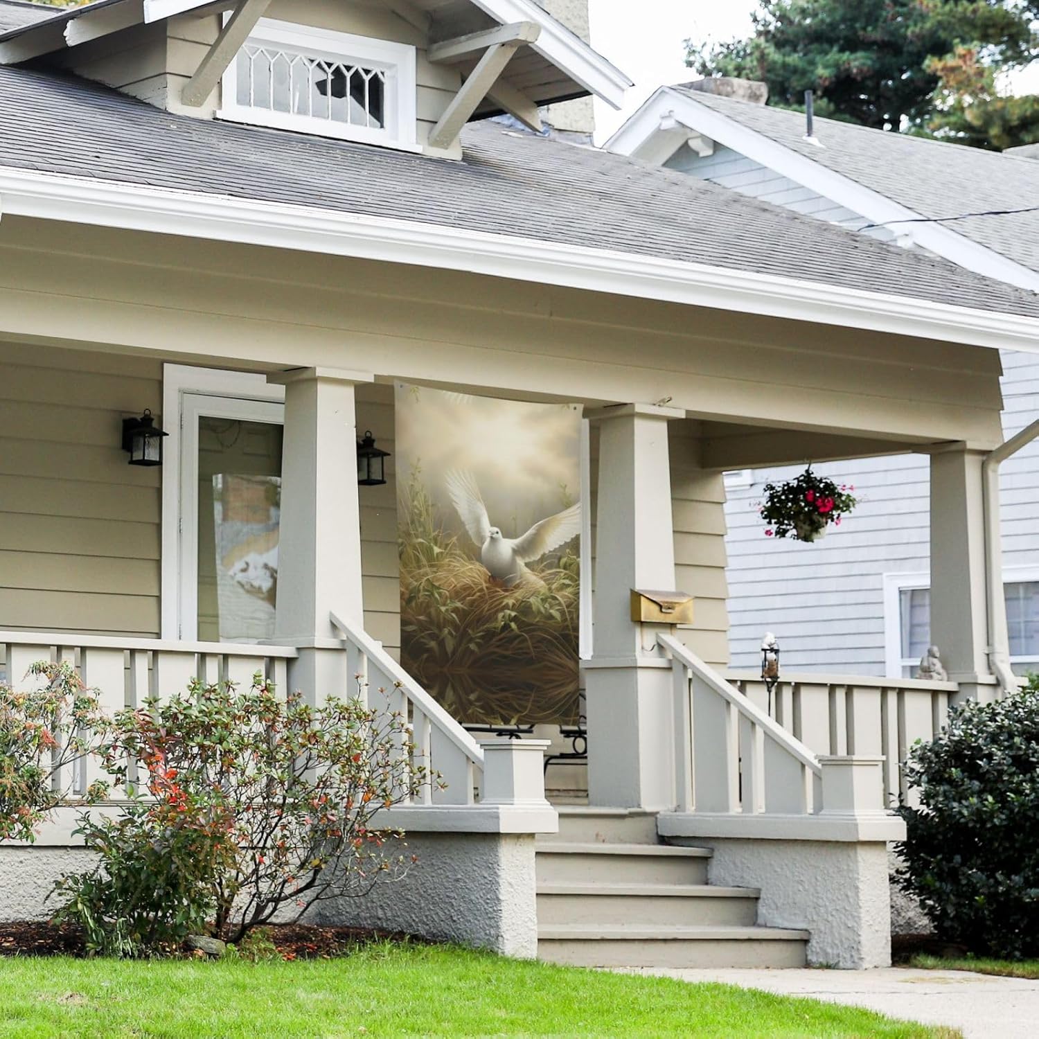 Bandiere decorative con erba e colomba per cortile esterno, patio, compleanno, laurea, striscione 9,1 x 1,8 m