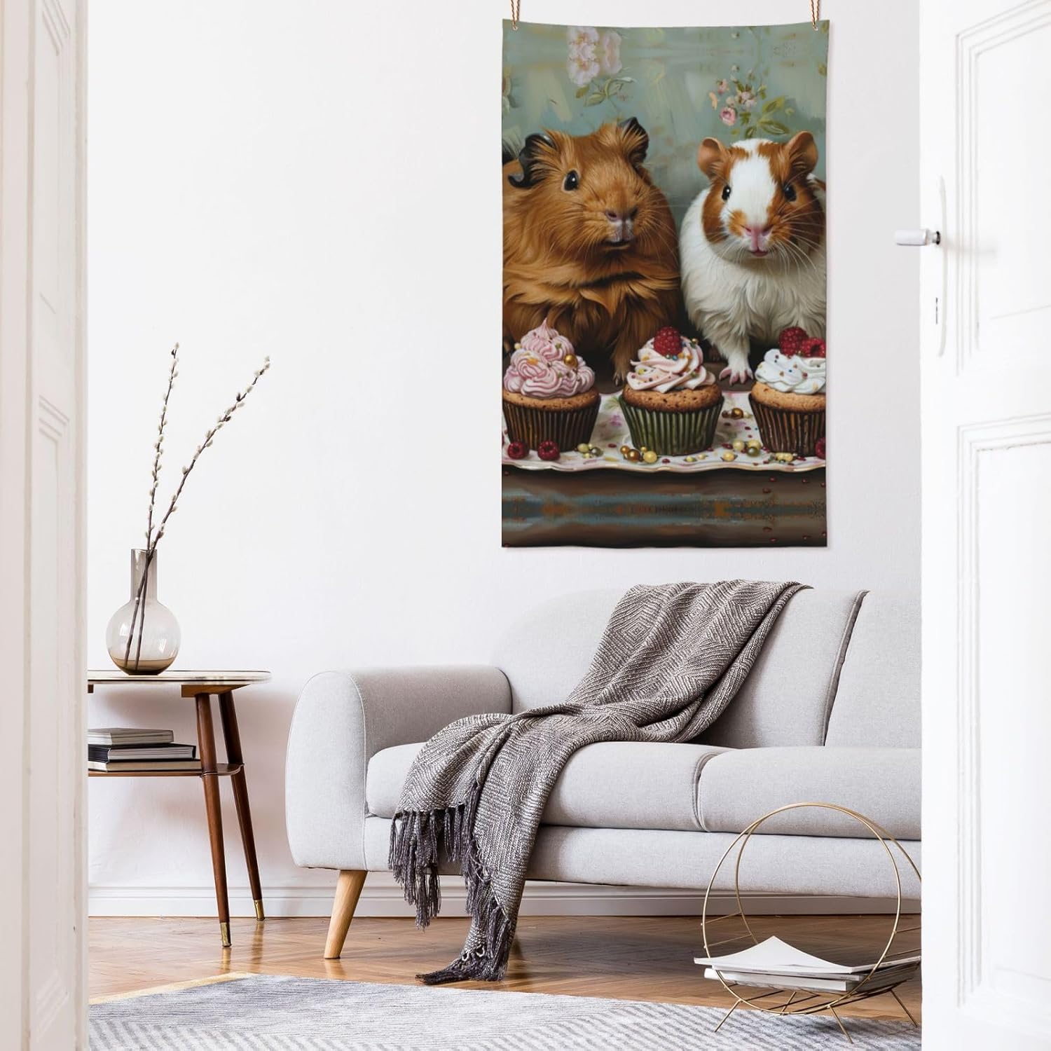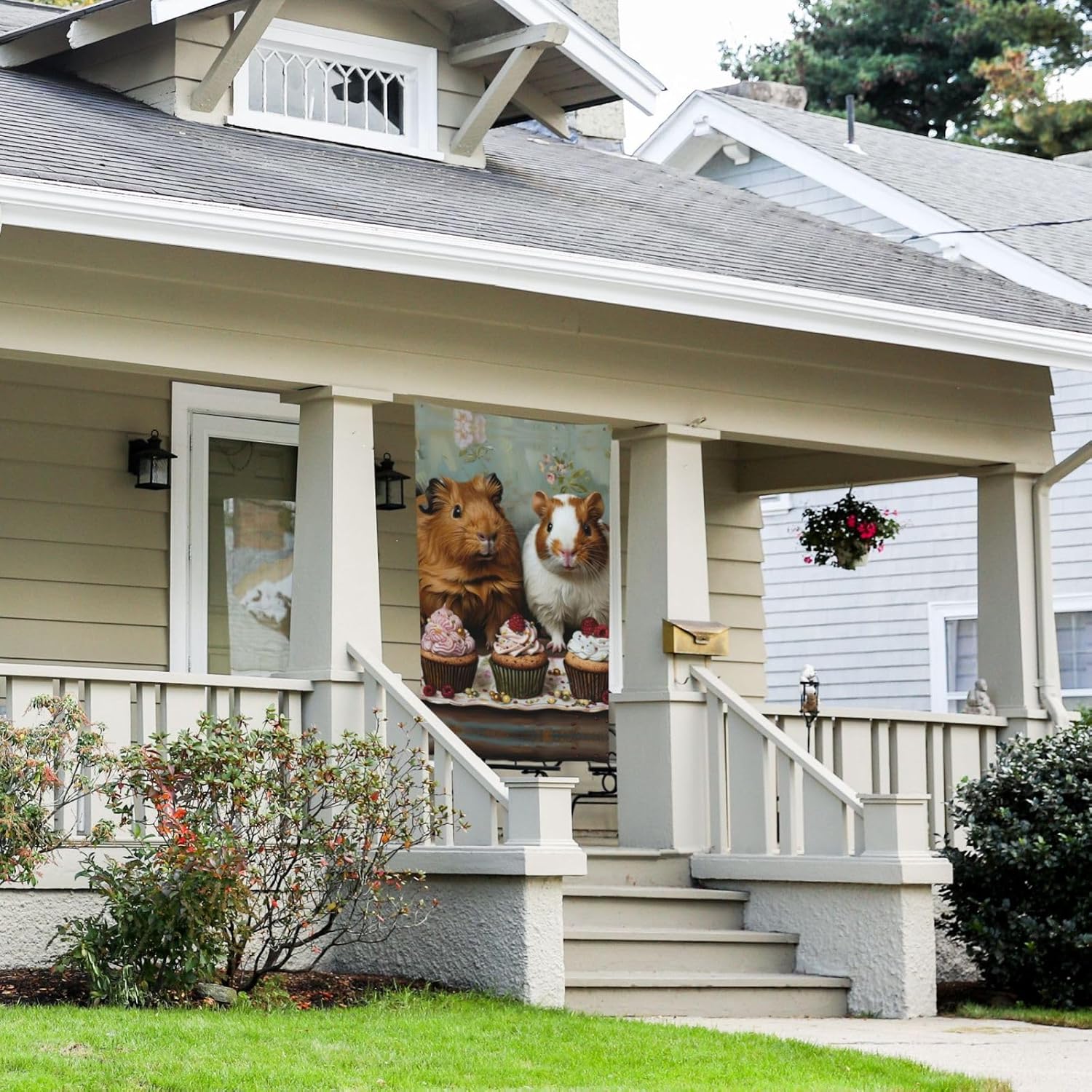 Bandiere decorative per cupcake con porcellino d'India, patio, patio, compleanno, laurea, festa, 0,9 x 1,8 m
