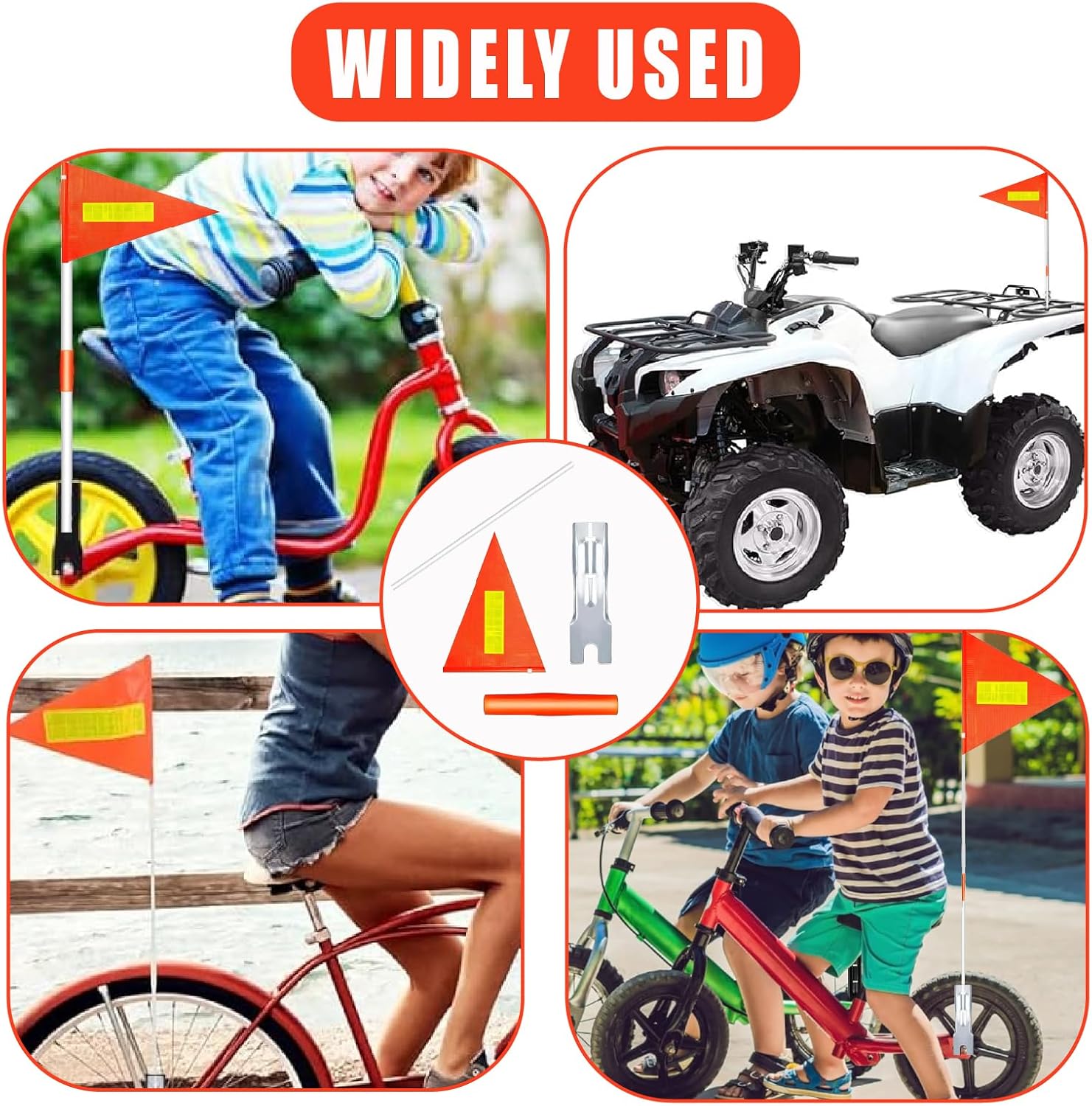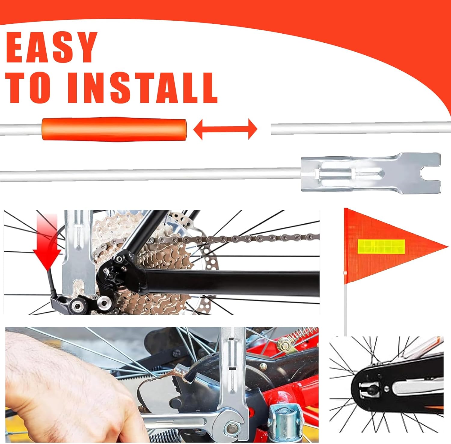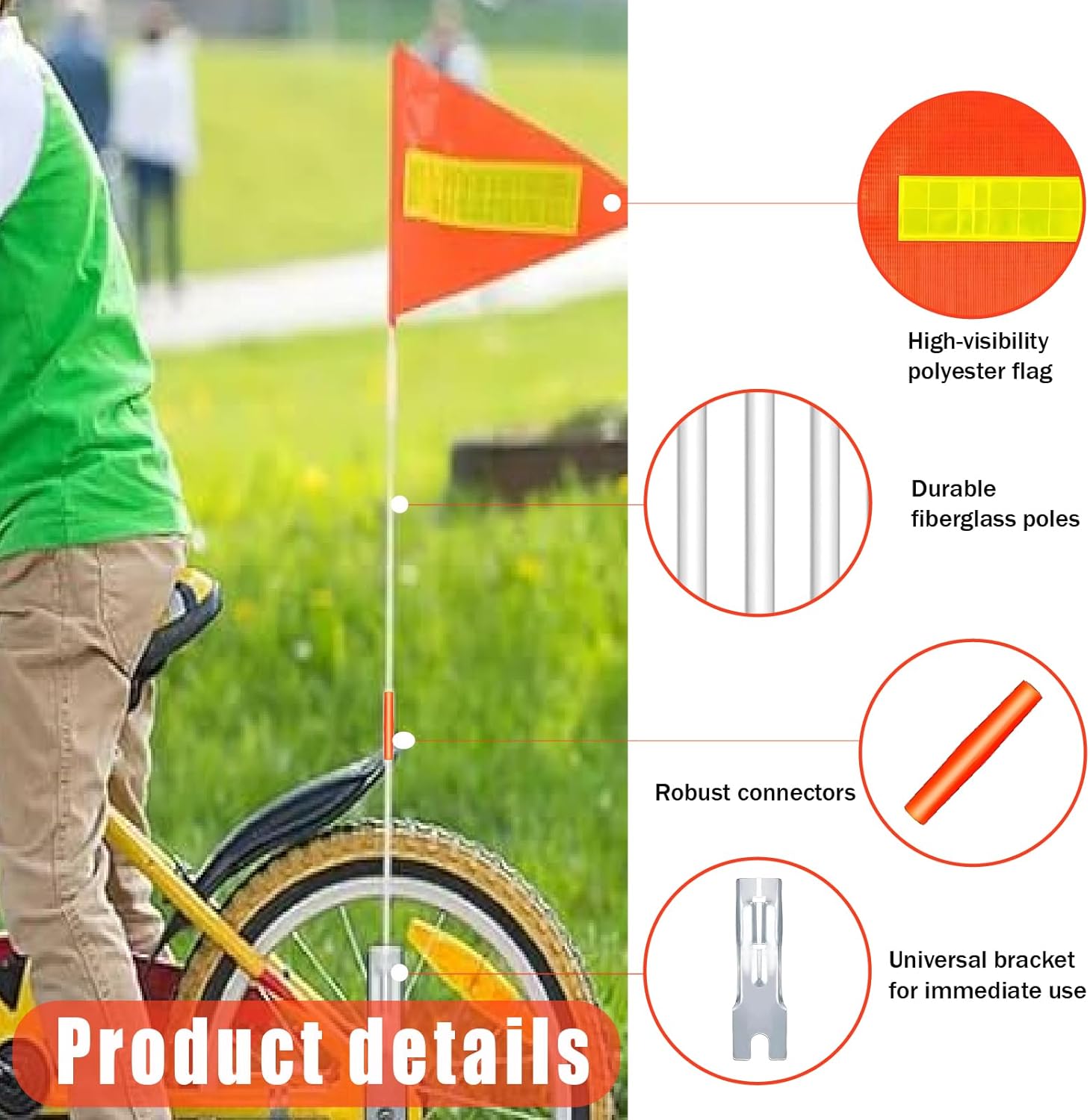 [visibilità e sicurezza ottimali per i giovani ciclisti] le nostre bandiere da ciclismo di alta qualità per bambini garantiscono la massima visibilità nel traffico stradale, di giorno e di notte! Il triangolo arancione brillante con strisce riflettenti permette ai tuoi bambini di vedere da lontano. Particolarmente pratico: i colori accattivanti e i riflettori funzionano passivamente e il vostro bambino non deve essere attivo in tutto. Ideale per gite scolastiche, gite in famiglia o corsi di trasporto. [set completo] Il set da 12 pezzi contiene tutto il necessario per l'uso immediato: 1 bicicletta per bandiere per bambini, 6 aste per bandiere, 5 connettori robusti e 1 staffa universale. Le aste in fibra di vetro garantiscono una stabilità ottimale in caso di vento e intemperie, mentre la struttura modulare consente un'altezza individuale da 80 a 180 cm. Adatto a diverse dimensioni di biciclette e rimorchi! [facile da installare] La bandiera di sicurezza riflettente con staffa per bicicletta può essere facilmente montata sull'asse posteriore della bicicletta. Il portapacchi incluso si adatta alla maggior parte delle biciclette, motociclette e rimorchi per biciclette per bambini. Grazie all'asta della bandiera a innesto è possibile regolare l'altezza in modo flessibile, sia per una piccola bicicletta da città che per una grande bicicletta per ragazzi. [qualità eccellente] La bandiera del rimorchio per bicicletta è realizzata in tessuto di poliestere di alta qualità, resistente agli strappi, all'acqua e ai raggi UV. Le aste in fibra di vetro si piegano se sottoposte ad urti, ma non si rompono e ritornano alla forma originale. In questo modo la bandiera può resistere a forti venti, forti piogge o strade sconnesse. Nessuno sbiadimento, nessuna usura! [divertente, pratico] La bandiera dal design colorato non solo è visibile, ma porta anche gioia alla guida! I bambini si sentono dei veri avventurieri e hanno la propria bandiera, mentre i genitori godono di questa ulteriore sensazione di sicurezza. Ideale per la vita di tutti i giorni, per il ciclismo o per la prossima gita in famiglia. Un must per tutti coloro che apprezzano la sicurezza, la qualità e il design a misura di bambino!