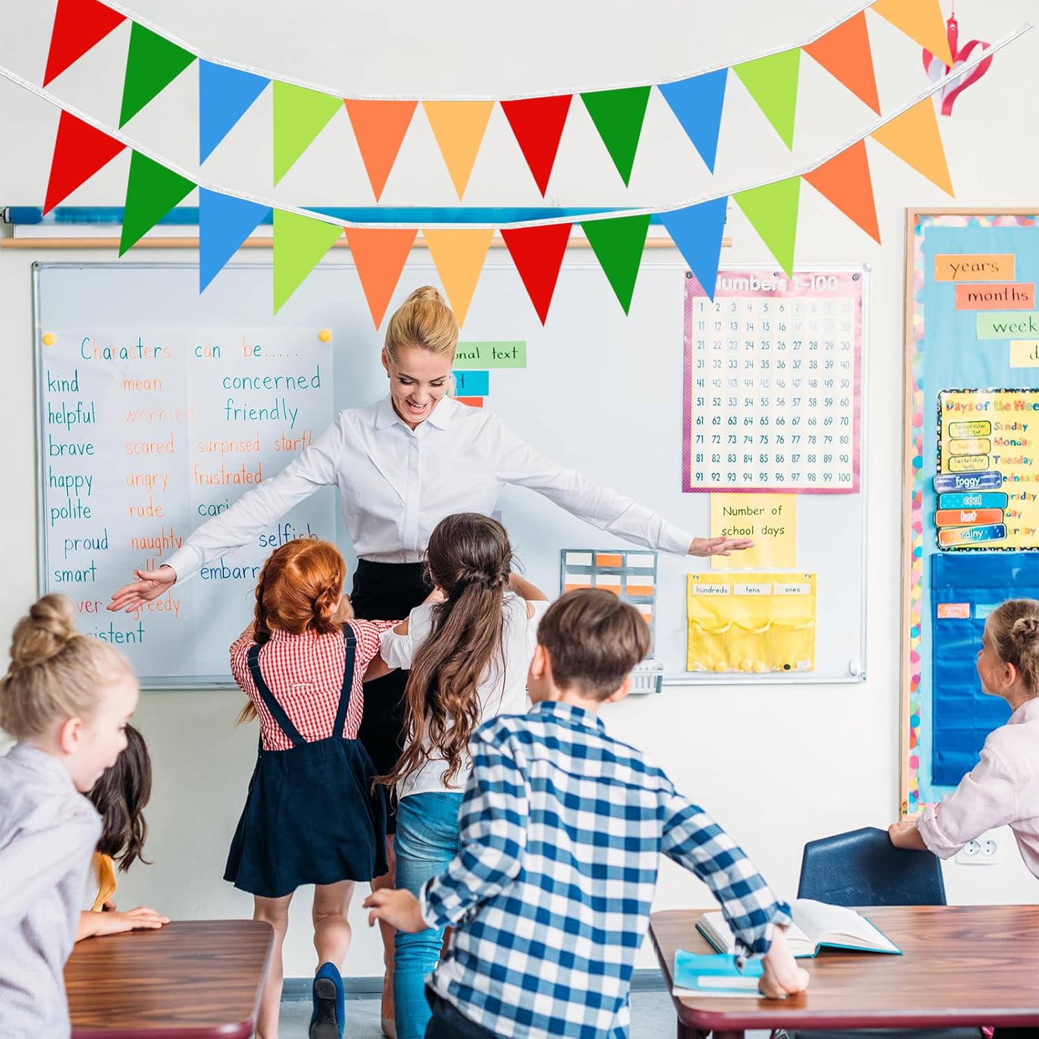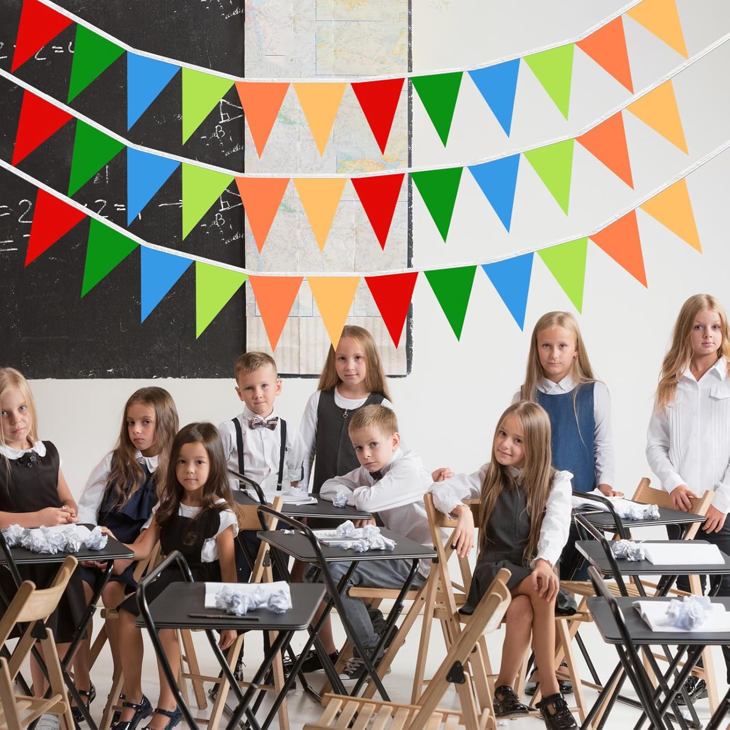 Confezione da 3 bandierine di alta qualità: offerte esclusivamente da FangBoJie e consegnate via FBA Con 36 bandierine colorate (lunghezza totale 4,2 m) otterrete un imbattibile rapporto qualità-prezzo, perfetto per molteplici applicazioni decorative. Affidatevi alla qualità originale ed evitate i prodotti di imitazione a buon mercato! Varietà di colori brillanti: la ghirlanda convince con 6 colori vivaci: blu, giallo, rosa, rosa, viola e verde. Ideale per aggiungere un ambiente allegro e vivace a qualsiasi festa, cameretta dei bambini o feste! Durevole ed ecologico: realizzato in resistente finto lino, resistente alle intemperie, atossico e inodore. Riutilizzabile per molte occasioni, sia all'interno che all'esterno Design flessibile: personalizzabile grazie alla distanza variabile dello striscione e ai cordini extra alle estremità. Facile da fissare a recinzioni, alberi o pareti: la decorazione non è mai stata così semplice! Versatile: che si tratti di feste di compleanno, inizio della scuola, feste in giardino o decorazioni per la cameretta dei bambini: queste affascinanti bandierine aggiungono accenti colorati ovunque e garantiscono occhi luminosi