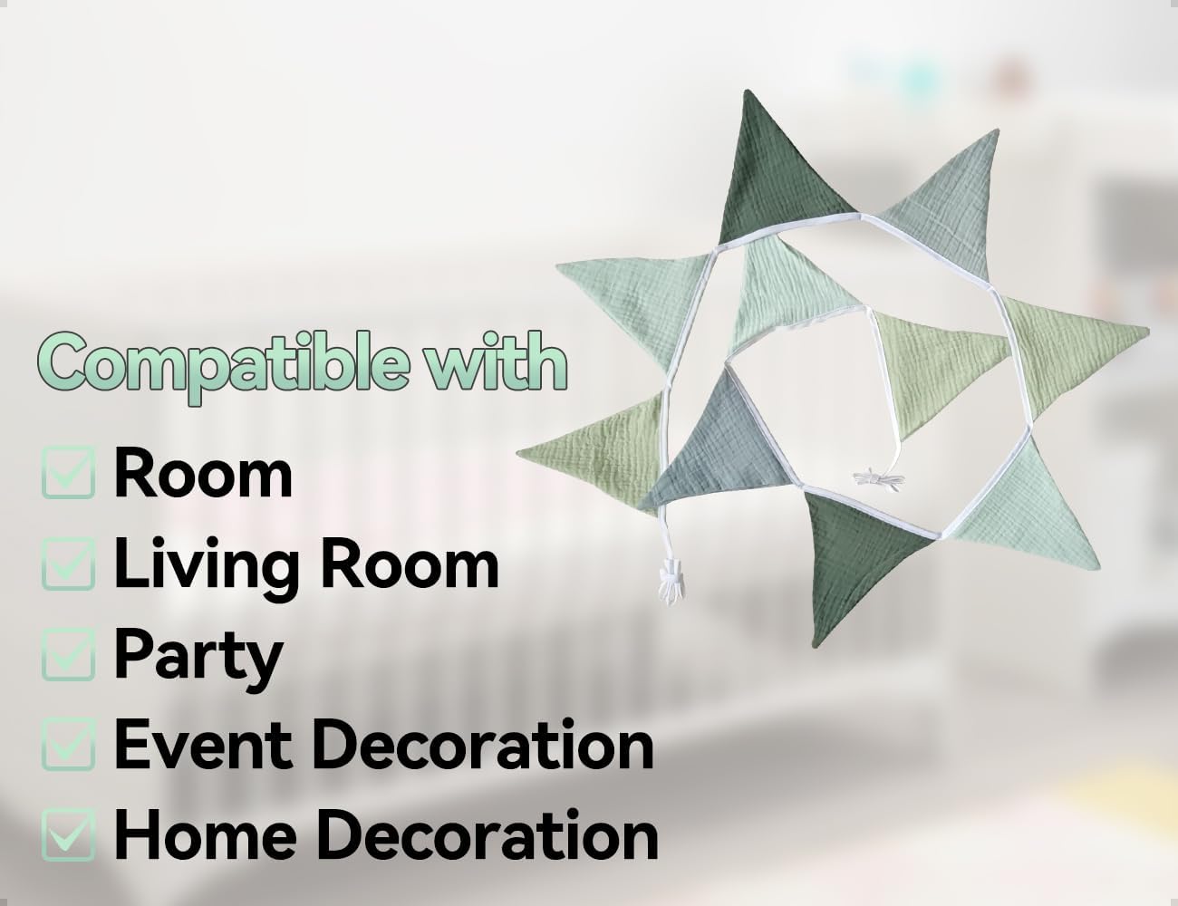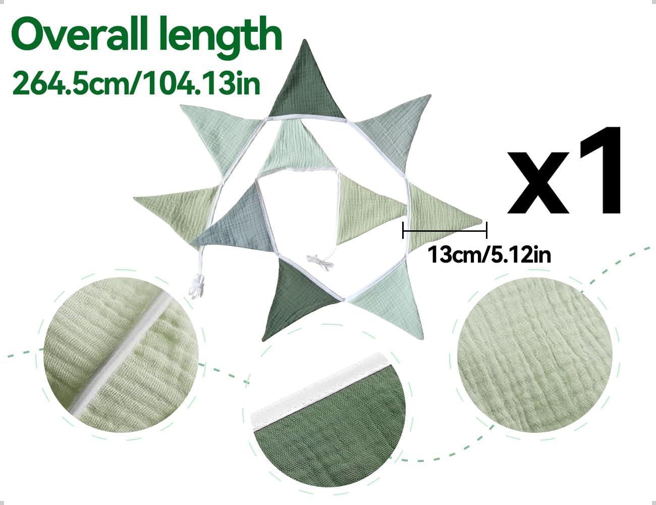 [Contenuto del set]: il set comprende un gagliardetto Morandi verde fresco che misura 2,36 m di lunghezza. Ogni gagliardetto trasmette un'atmosfera vivace e allegra e aggiunge una decorazione unica al tuo locale. [Riutilizzabile]: grazie al design riutilizzabile, la collana può essere appesa quante volte vuoi dopo il lavaggio. Puoi togliere la collana e appenderla di nuovo in qualsiasi momento, così potrai goderti la decorazione a lungo. [Buon materiale]: il tessuto di cotone è traspirante, confortevole e morbido al tatto. È facile da pulire e mantenere, garantendo un uso confortevole. [Uso pratico]: lo stendardo viene fornito con una comoda corda che puoi appendere facilmente al muro, ai rami degli alberi, alle porte, ecc., in modo da poter completare rapidamente la decorazione. [Multiuso]: le ghirlande dello stendardo sono adatte per feste di compleanno, matrimoni, vacanze e decorazioni domestiche. Aggiungono colore e gioia al tuo evento e soddisfano i tuoi diversi desideri di decorazione