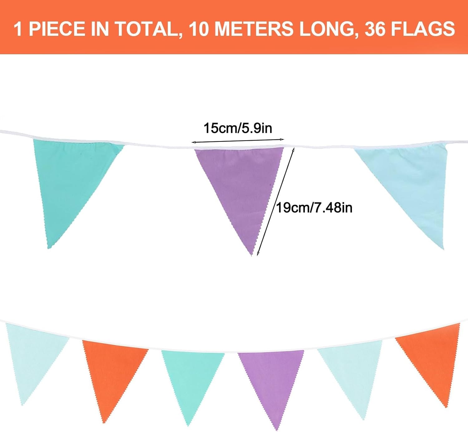 Decorazione versatile per feste: striscione da 10 m con 36 bandiere triangolari multicolore, creando un'atmosfera invitante per matrimoni, compleanni, baby shower, feste in giardino, grandi aperture, riunioni di tè e molto altro ancora. Lunghezza generosa e facile da appendere: presenta una lunghezza totale di 10 m con cinghie da 0,45 – 0,5 m su ciascuna estremità; ogni gagliardetto misura 19 cm x 15 cm, rendendolo veloce da appendere su porte, pareti, recinzioni o da utilizzare come affascinante sfondo fotografico. Materiale in cotone morbido e riutilizzabile: realizzato in cotone resistente, questo striscione è lavabile e riutilizzabile, consentendo di decorare più celebrazioni mantenendo il suo aspetto vivace. Design colorato con bandiera triangolare: include bandiere triangolari floreali vintage in cotone in tonalità e motivi assortiti, mescolando fascino vintage con vivacità festiva per abbinare vari temi per feste. Idea regalo premurosa: una deliziosa decorazione da appendere da condividere con amici, parenti o vicini, aggiungendo calore e carattere a casa, giardino o spazi per eventi.