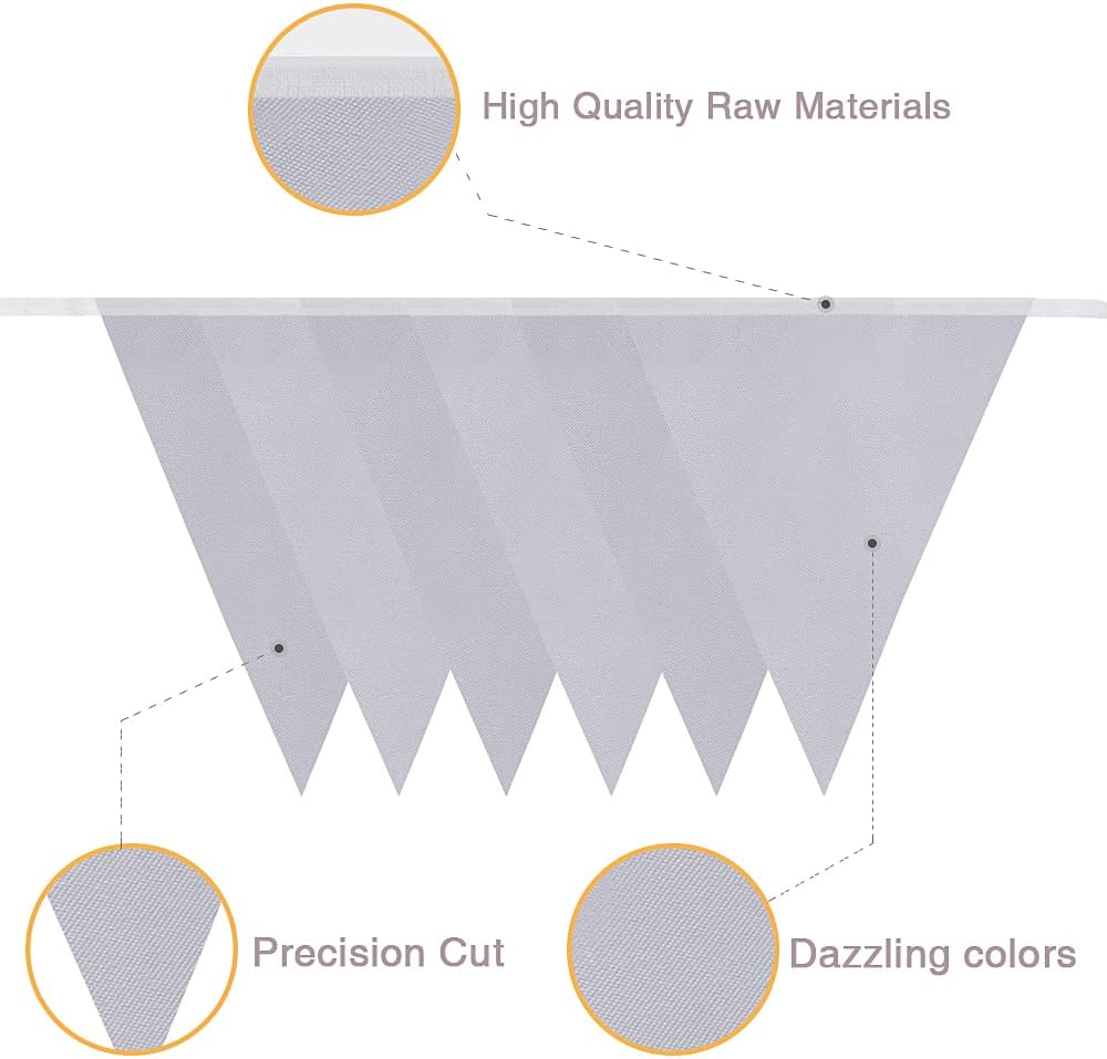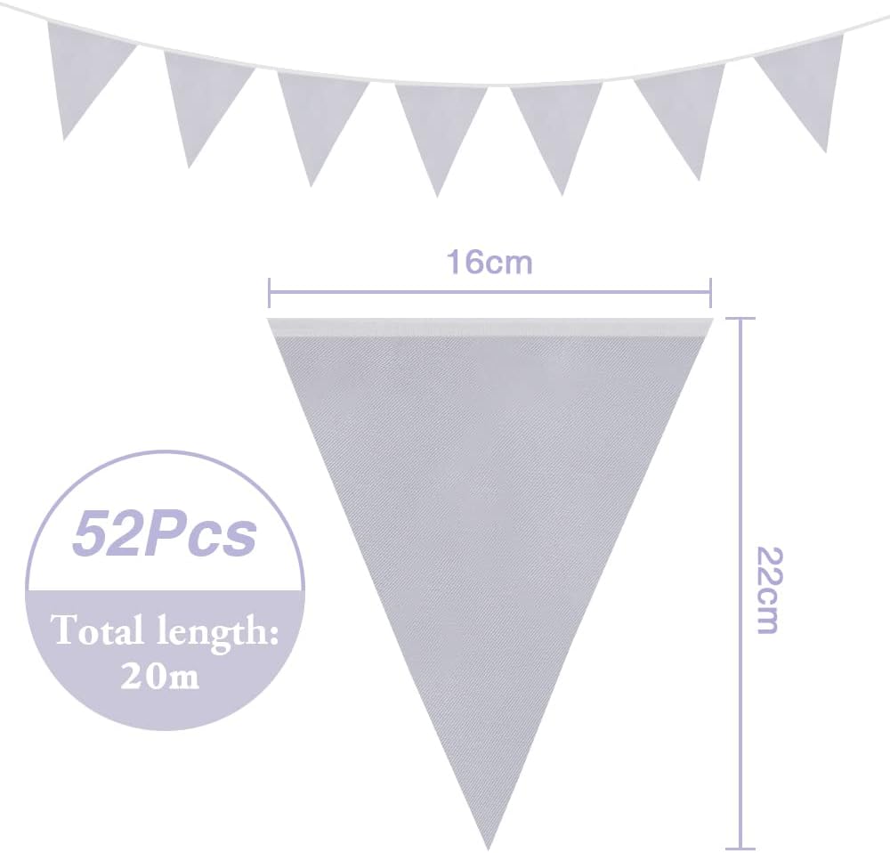 【Pacchetto incluso】 Riceverai 2 confezioni di bandierine argentate da 10 m, per un totale di 52 bandiere triangolari. Le catene con stendardi in argento non sono adatte solo per varie occasioni decorative, ma sono anche ottime come regalo per parenti e amici. 【Dimensioni ragionevoli】 La lunghezza totale dei banner è di 20 metri (65,6 piedi) e la dimensione di ciascuna bandiera è di 22 cm x 16 cm. La distanza tra le singole bandiere è di circa 20 cm. 【Ampia compatibilità】 La stamina argentata è perfetta per uso interno ed esterno. Puoi appenderli al muro, al tavolo o alla finestra durante feste di compleanno, matrimoni, anniversari, fidanzamenti, ecc. Aggiungono colore alla tua festa e migliorano l'atmosfera della festa. 【Buona qualità】 La nostra stamina argentata è realizzata in tessuto di cotone morbido e di alta qualità e anche i colori della bandiera sono stampati con inchiostro di alta qualità che dura più a lungo. SERVIZIO CLIENTI: Se non sei soddisfatto della merce, non esitare a contattarci. Siamo disposti a rimborsarti l'intero prezzo di acquisto.
