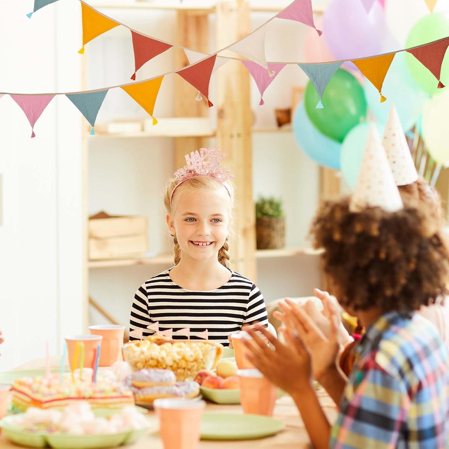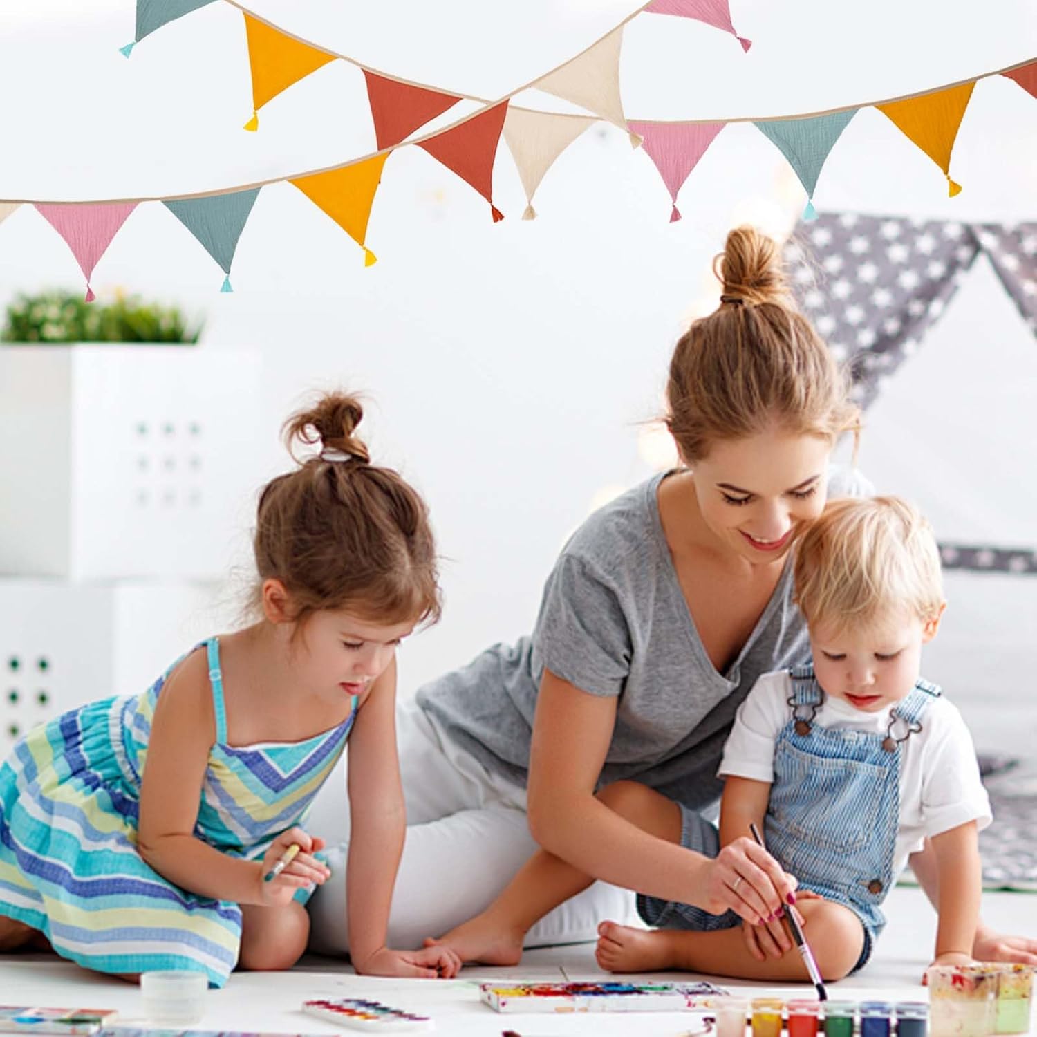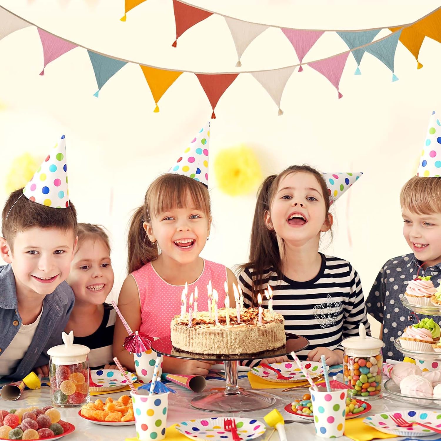Contenuto della confezione: riceverete 1 set di gagliardetti in tessuto (2,6 m di lunghezza, 15,5 x 12,7 cm ciascuno, 10 pezzi in totale). La parte superiore dello striscione in cotone colorato è fissa e non scivola quando viene appeso. Materiale sicuro: il nostro gagliardetto in tessuto crêpe antistrappo con cuciture pulite è particolarmente morbido e confortevole e non ha odori sgradevoli. Design dai colori eleganti: il nostro stendardo in tessuto fronte-retro presenta un design a caramella semplice ed elegante in cinque colori vivaci: rosa, giallo, albicocca, arancione e verde, che rompe la monotonia e aggiunge luminosità e vitalità alla tua casa. Facile da montare: questa bandierina in tessuto è dotata di corde beige lunghe 50 cm su entrambe le estremità che possono essere appese orizzontalmente, verticalmente o ad angolo. Il tessuto dello stendardo lavabile in lavatrice mantiene la sua forma e il suo colore anche dopo un uso ripetuto. Ampia gamma di usi: gli striscioni colorati in cotone sono ampiamente utilizzati e sono molto adatti per la decorazione di matrimoni, compleanni, riunioni di famiglia e amici, camerette, camerette e aule.
