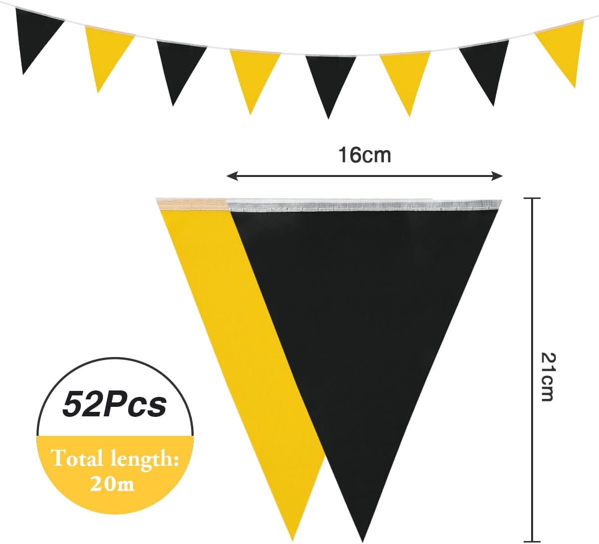 Il pacchetto include 20 m52 bandiere nere e gialle nella confezione che riceverai e le dimensioni di ciascun gagliardetto: 16 cm x 21 cm. QUALITÀ PREMIUM: Il nostro stendardo nero e giallo è realizzato in tessuto di alta qualità, con colori vivaci e nessun odore fastidioso. Puoi anche riutilizzarlo più volte senza preoccuparti che sbiadisca. Facile da usare: ci sono corde sulle due sezioni della stamina nera e arancione. Basta legare la corda dove vuoi appenderla e legarla con un nodo. Molto pratico 🌳【Ampia applicazione】Le nostre bandiere sono adatte per feste in varie occasioni e festival, come incontri sportivi, picnic, compleanni e giornate per bambini... Lascia che queste bandiere rendano la tua festa interessante! 🚴 【Miglior servizio】 Non esitare a contattarci in caso di problemi. Il tuo problema sarà risolto in 24 ore.