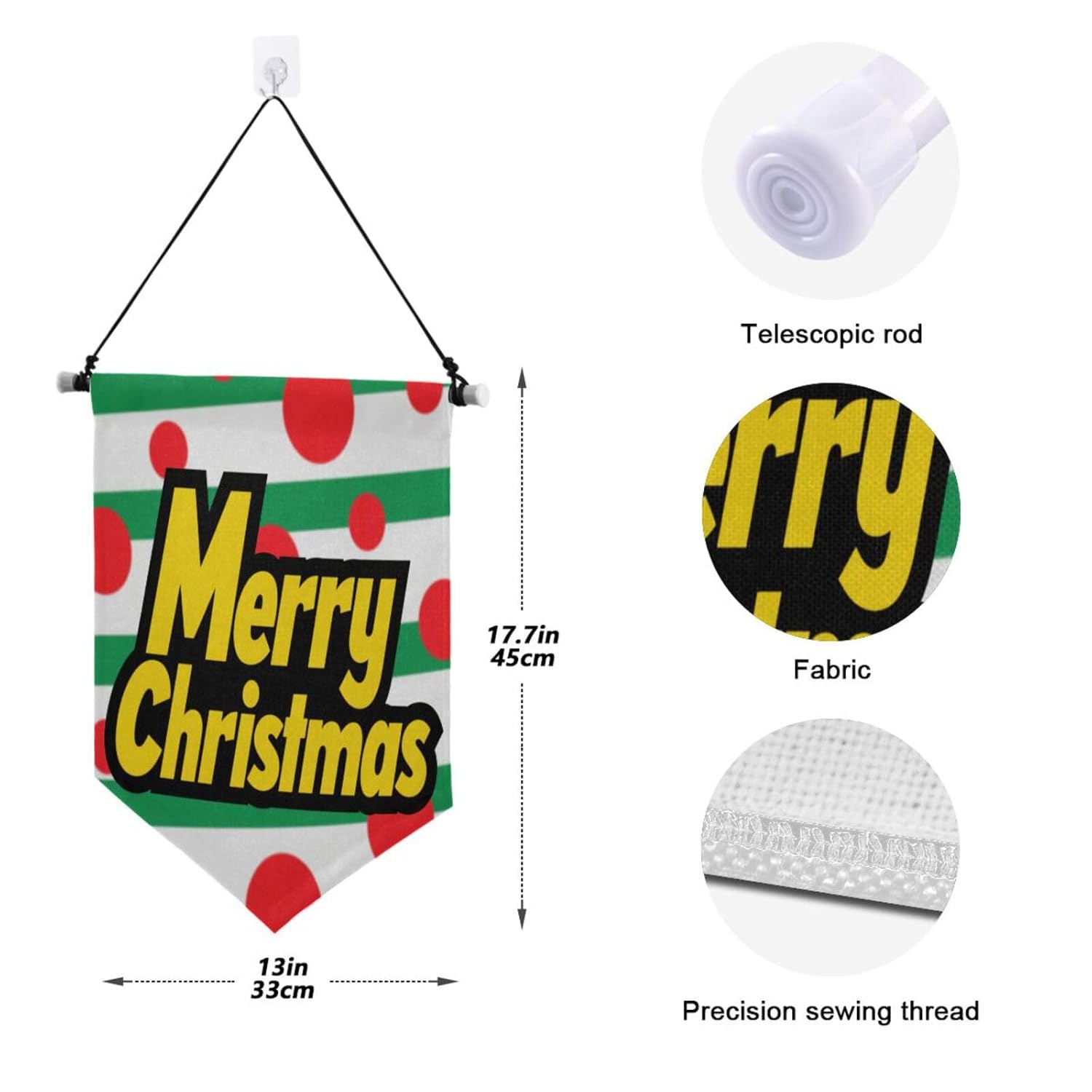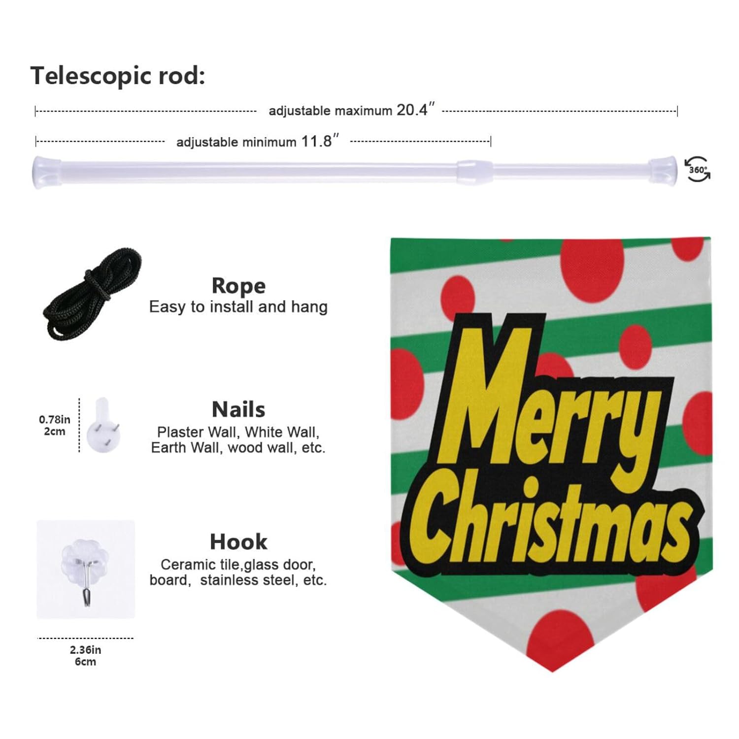 【Migliora la tua decorazione murale】 Il nostro gancio per striscioni da parete è un modo elegante e moderno per aggiungere un tocco di eleganza alle tue pareti. Dimensioni: 33 cm di larghezza e 45 cm di altezza. La dimensione perfetta per fare una chiara dichiarazione su qualsiasi parete della casa o dell'ufficio. Il pacchetto include: riceverai un banner, la dimensione è lunghezza: 45 cm, larghezza: 33 cm, la lunghezza del palo telescopico va da 30 cm a 51,8 cm, include anche una corda nera, un chiodo senza traccia e un gancio adesivo. Multiuso: questo appendiabiti da muro non renderà festosa la tua casa o il tuo ufficio, ma puoi anche usarlo per collezionare accessori come spille, spille smaltate, distintivi, ecc., formando una decorazione sospesa unica che aggiunge vitalità alla tua stanza. 【Facile da installare】 I nostri banner per accessori sospesi sono completi e facili da installare. Metodo di installazione: svitare l'asta telescopica, legare la linea nera, fissare il chiodo o il gancio antitraccia sulla porta o sul muro e appenderlo. 【Ottima scelta regalo】 Il fantastico striscione regalo da appendere, famiglia, amici, ragazzi, ragazze, adolescenti, bambini e ragazzi. È anche una scelta per la decorazione murale!