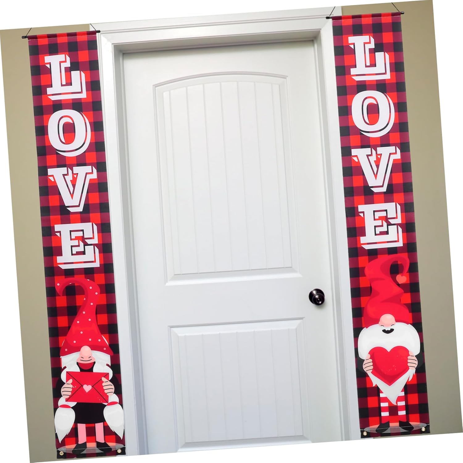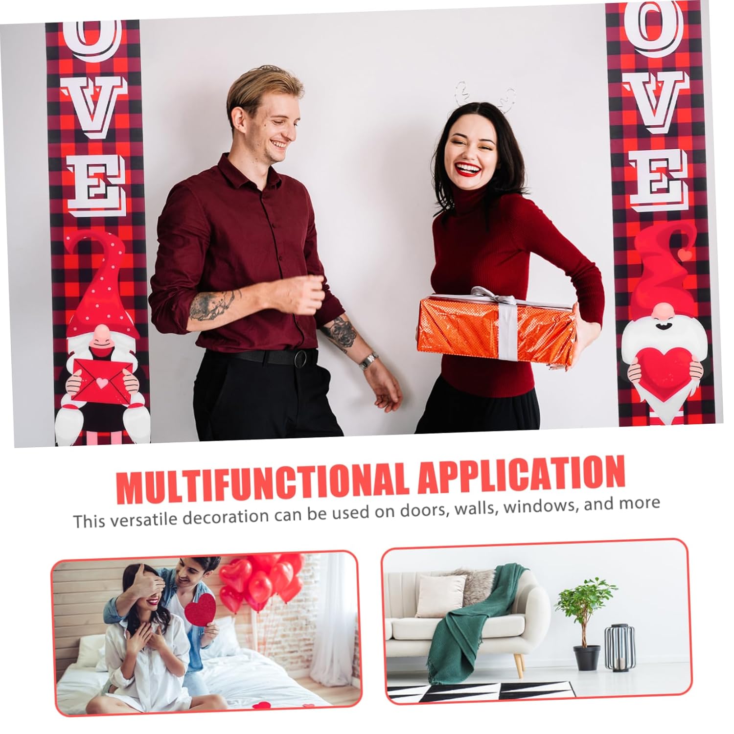Banner per porta - questa decorazione è facile da installare, ti consente di trasformare rapidamente e facilmente il tuo spazio in un arredamento per San Valentino, distico per portico con motivo gnomo Insegna per banner per feste - la dimensione appropriata è molto adatta per decorazioni interne o esterne, che può adattarsi bene alla tua porta, banner per San Valentino Banner per porta di San Valentino - realizzato in poliestere, banner per porta di San Valentino da utilizzare, cartello per porta di San Valentino Distico decorativo - il banner per porta di San Valentino è realizzato in poliestere, la pregevole fattura garantisce praticità e durata, portico per porta di casa Distico Insegna del portico di San Valentino: colori vivaci e disegni delicati aggiungono una forte atmosfera di San Valentino alla tua casa, rendendo la tua casa la bandiera appesa più accattivante