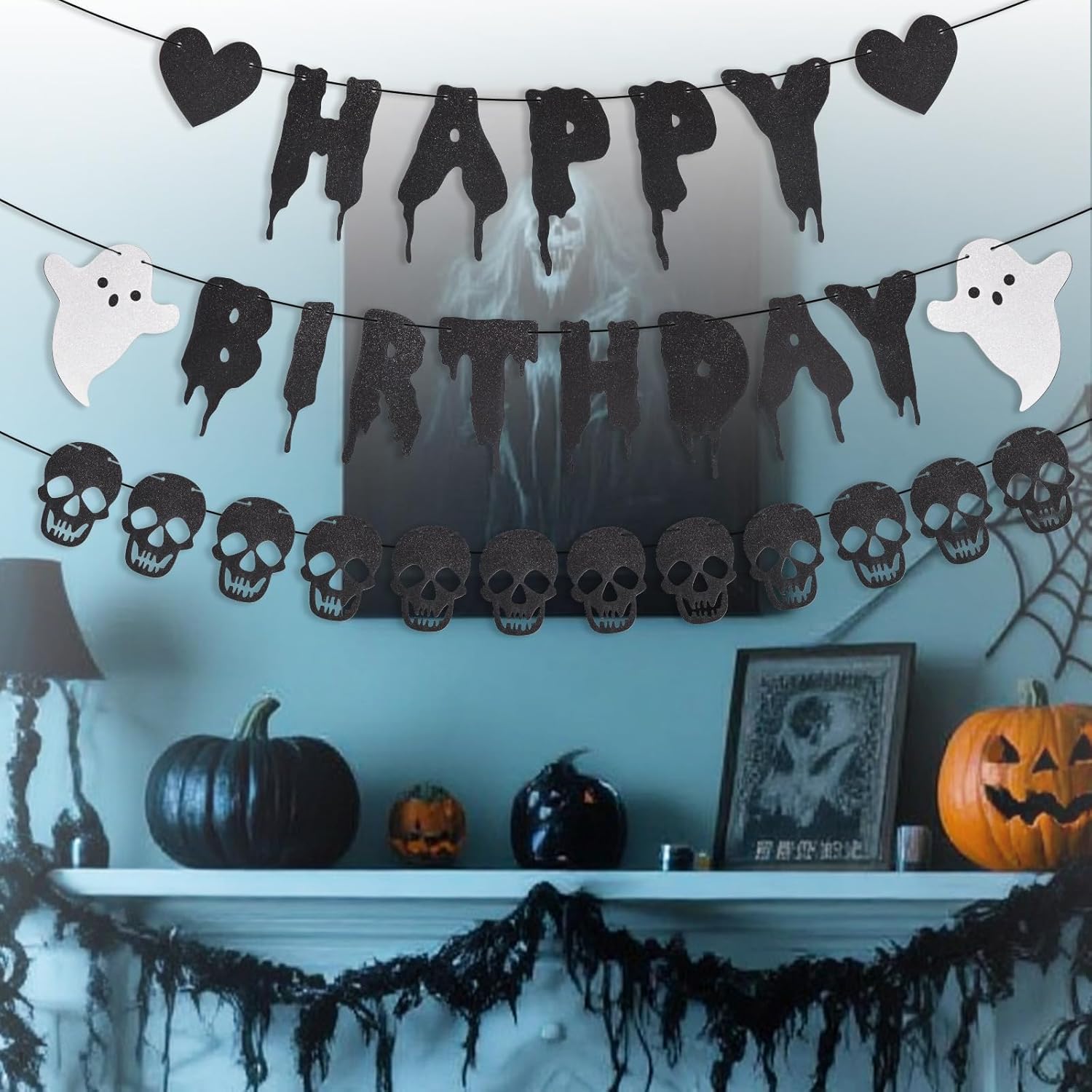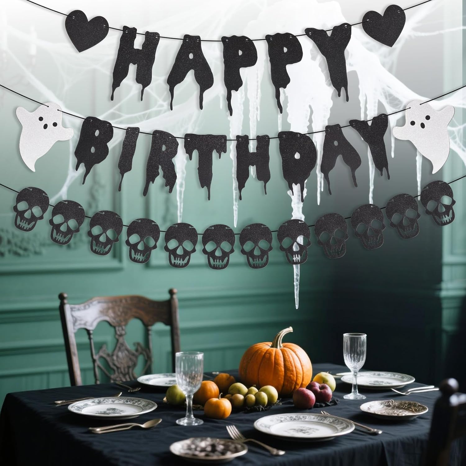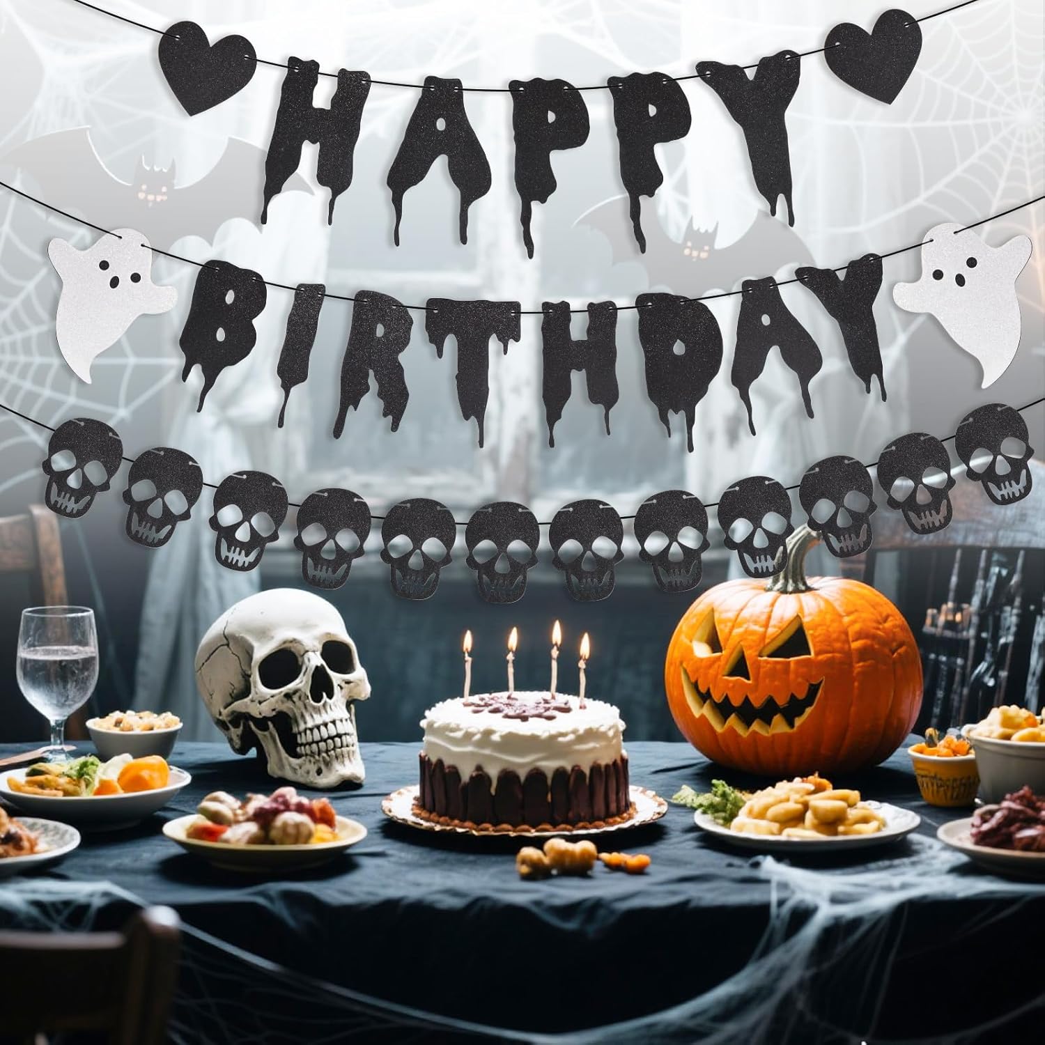 Il pacchetto include: Riceverai 1 set di striscioni di buon compleanno di Halloween a tema Halloween, spettrali nella stagione di Halloween per celebrare le celebrazioni di compleanno. Design spettrale e divertente: caratterizzato da elementi fantasma, teschio e cuore con scritte in stile gocciolante, questo striscione vivace crea un'atmosfera spettrale ma giocosa che crea l'atmosfera perfetta per i compleanni a tema Halloween. Facile da usare: il banner viene fornito preassemblato per la tua comodità. Basta regolare la spaziatura tra le lettere secondo i tuoi gusti e appenderlo a pareti, finestre, tavoli, caminetti o ovunque desideri un tocco spettrale. Materiale di qualità: realizzato in carta di alta qualità con finitura nera scintillante, è robusto, accattivante e resistente agli strappi. La finitura lucida assicura che si distingua durante la tua festa. Occasioni versatili: ideale per feste di compleanno di Halloween, case infestate, temi sui vampiri e celebrazioni spettrali. Può essere utilizzato anche come sfondo fotografico per creare ricordi divertenti e indimenticabili con i tuoi ospiti.