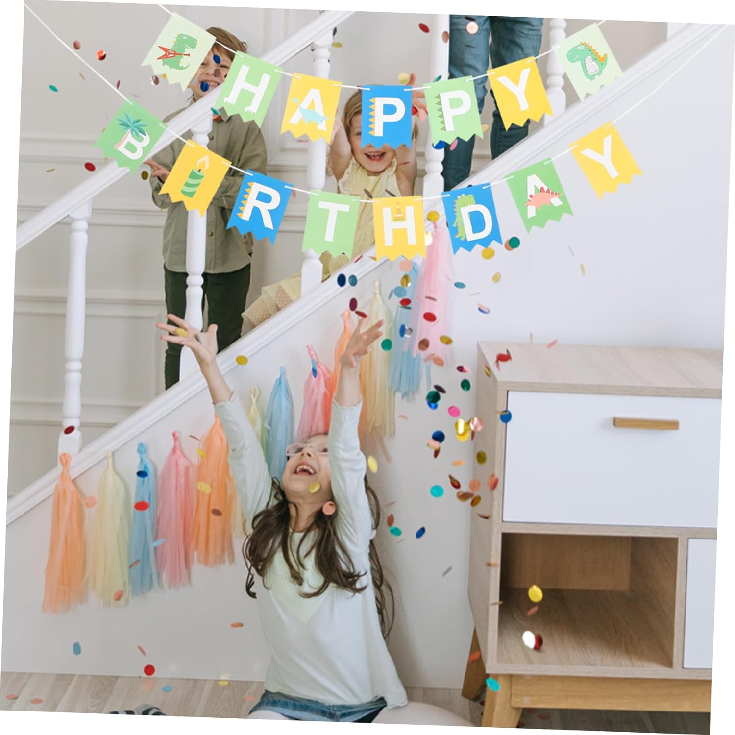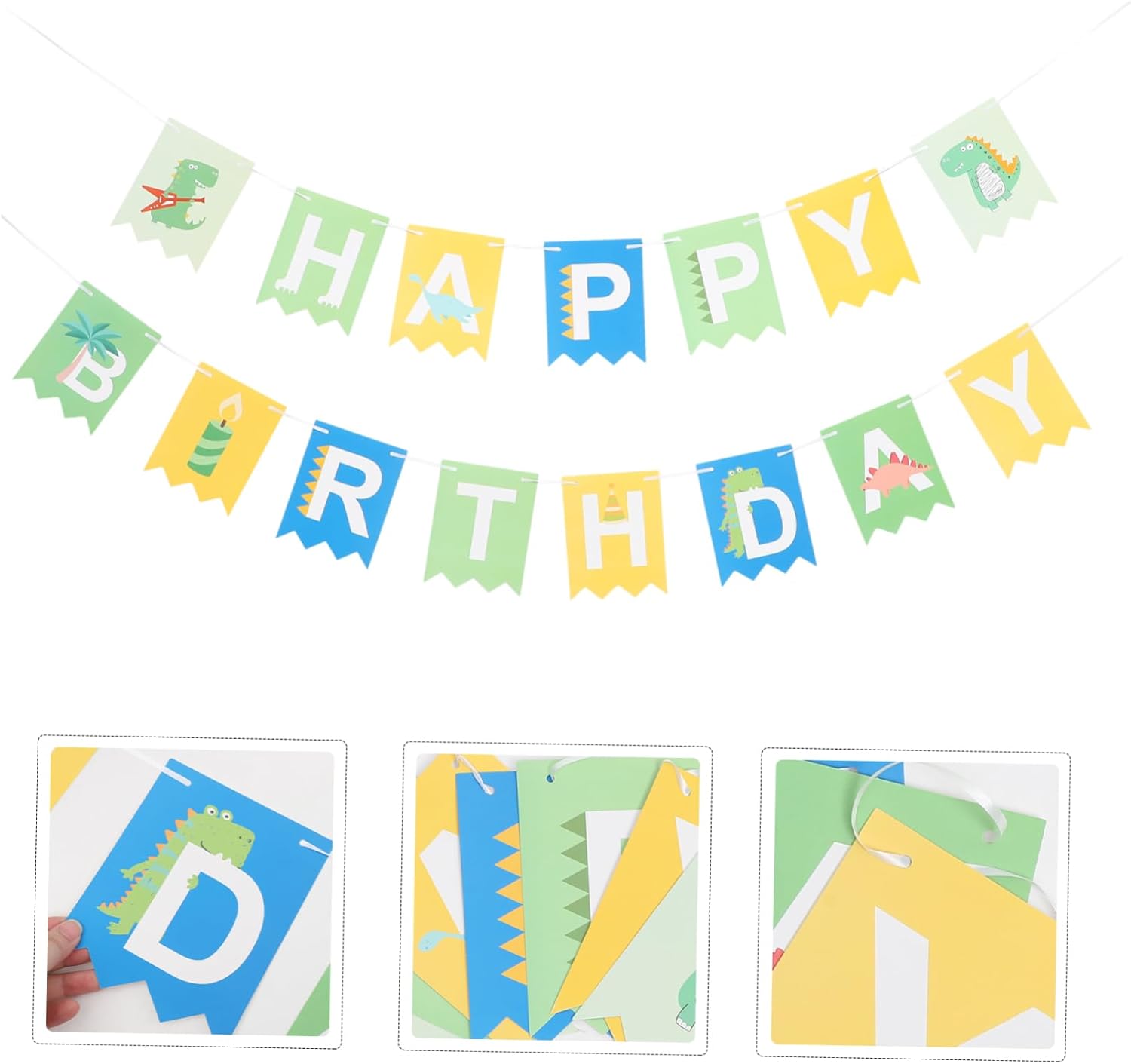 Banner di dinosauri: semplice nel design e pratico da usare. pregevole fattura che ne garantisce praticità e durata. Gli striscioni di compleanno sono il momento clou della tua festa di Natale e il loro design accurato lascerà una profonda impressione su tutti gli ospiti. Decorazione per feste di compleanno: uno sfondo unico per la festa di compleanno per festeggiare il tuo compleanno e aggiungere atmosfera alla festa di compleanno. Ghirlanda di anniversario - Decorazione per feste di compleanno, aggiungi più interesse, bellezza e fascino alla decorazione della tua festa. Striscione di compleanno: questo striscione sospeso viene utilizzato per decorare una festa di compleanno di dinosauri al ristorante o a casa.