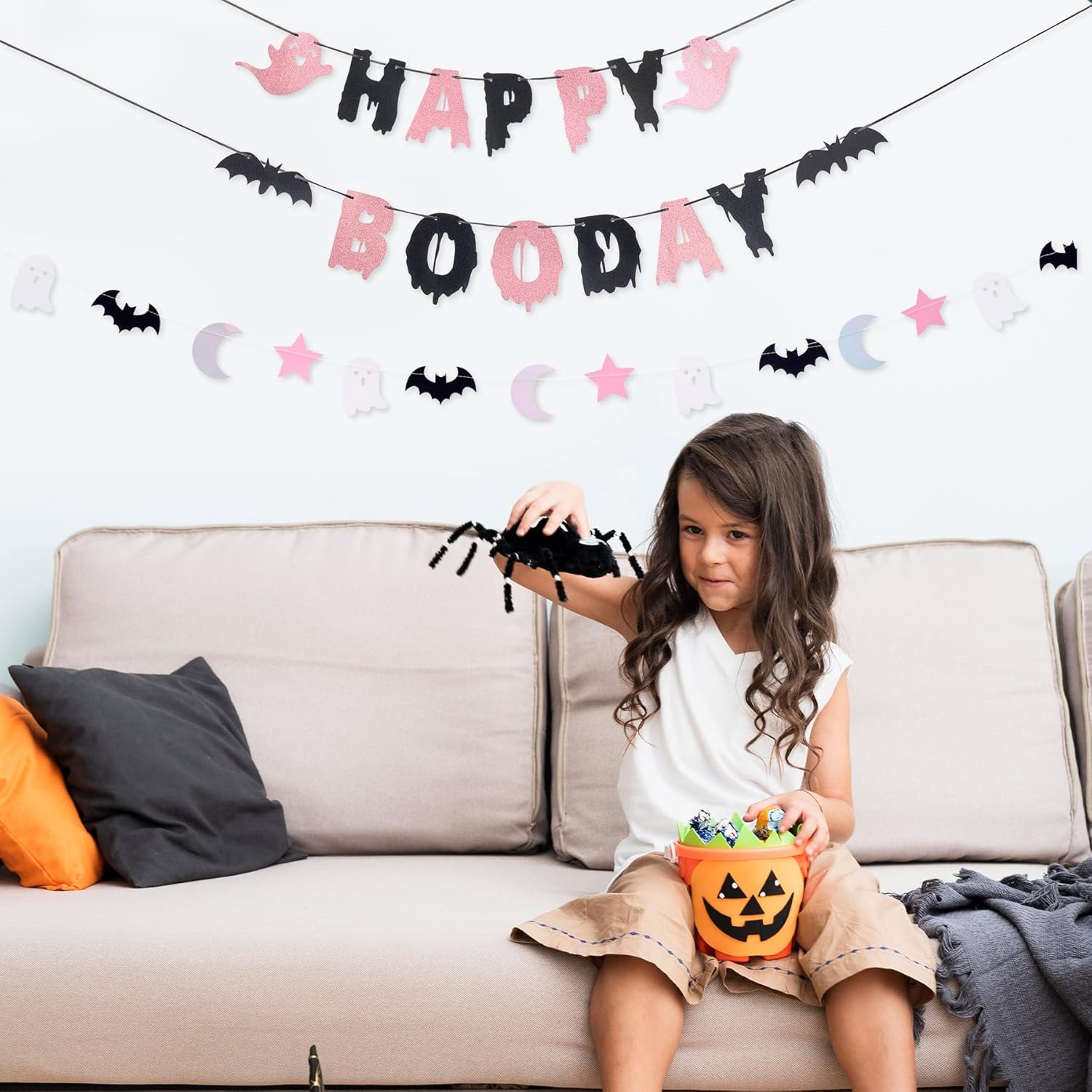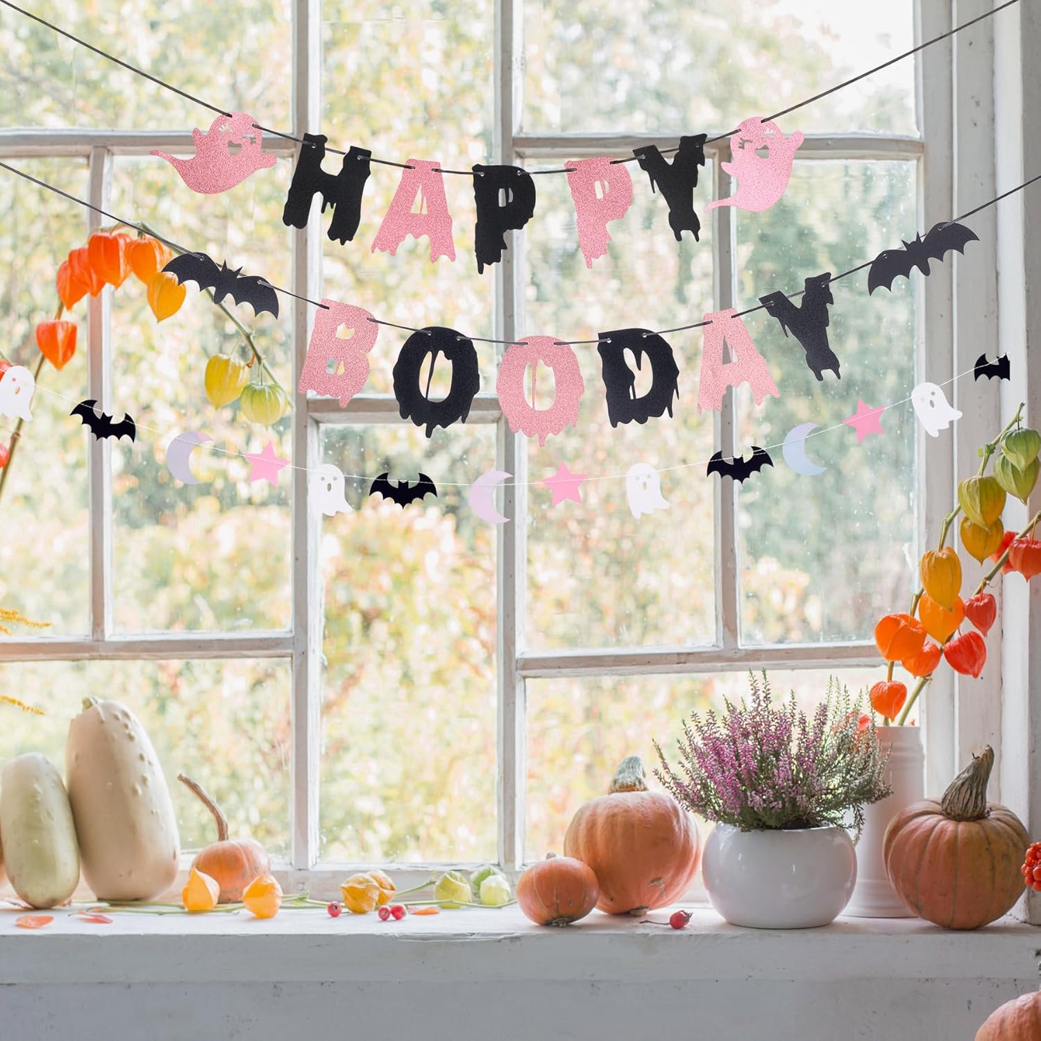 PACCHETTO INCLUSO: Questo set include 1 striscione HappyBooday glitter nero e rosa e 1 striscione pipistrello, fantasma, stella e luna, perfetto per decorare feste di compleanno di Halloween, feste di compleanno di zombie o vampiri e altre occasioni spaventose. Decorazioni di compleanno di Halloween: questo striscione rosa brillante di compleanno di Halloween con elementi di fantasmi, pipistrelli e scritte spettrali aggiungerà il tocco festoso perfetto alla tua festa. Crea un'atmosfera divertente e inquietante ed è l'ideale per foto di compleanno di Halloween dolci e memorabili. Grazie al suo design unico, avrai sicuramente ricordi di vacanza indimenticabili. ALTA QUALITÀ E DIMENSIONE: Realizzata in carta glitter ecologica, ogni lettera misura circa 10 x 13 cm. Lo striscione resistente e scintillante può essere utilizzato come sfondo per una cabina fotografica, centrotavola per tavolo, decorazione murale o accento sul caminetto, rendendolo versatile per uso interno ed esterno. GRANDE VALORE: Realizzato in vero materiale glitterato, questo banner è facile da montare e appendere. Può essere posizionato su tavoli da dessert, finestre, alberi, buffet, pareti, portici, caminetti o persino sulla tua auto. È anche un'ottima idea regalo per Halloween! L'assemblaggio è semplice e veloce: basta infilare insieme lo striscione in uno o due minuti utilizzando l'ago incluso. MULTIUSO - Questa decorazione Happy Halloween Birthday è perfetta per feste di Halloween, feste in costume per bambini, feste di compleanno, feste di fantasmi e altro ancora. È anche uno splendido sfondo fotografico o un regalo premuroso per amici, familiari o persone care per godersi la stagione spettrale!