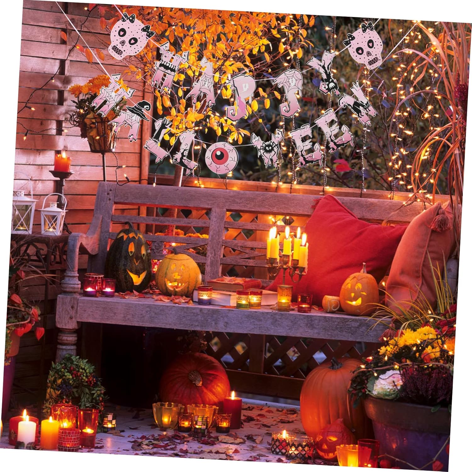 Cappotto con bandiera di Halloween: la combinazione di tutti gli elementi di Halloween serve a celebrare l'arrivo della festa di Halloween e la decorazione della casa. Decorazione da appendere per feste: realizzata in materiale cartaceo, sicura e durevole, decorazione per esterni. Decorazioni per la casa: decorazioni per il compleanno di Halloween, aggiungi più interesse, bellezza e fascino alla decorazione della tua festa, striscione sospeso per fantasmi. Forniture per feste: decorazioni per feste in maschera di Halloween, casa, ingresso, pub, ufficio, centro commerciale, mensola o muro, decorazione d'interni. Banner per camino di Halloween: per la tua festa di Halloween, decorazioni per feste a casa, decorazioni per ufficio e altre occasioni interne ed esterne, banner per festival.