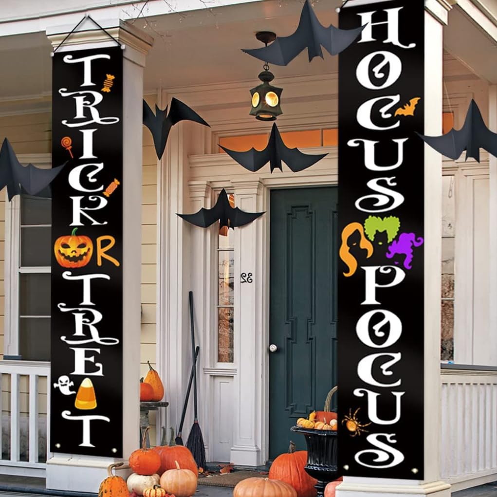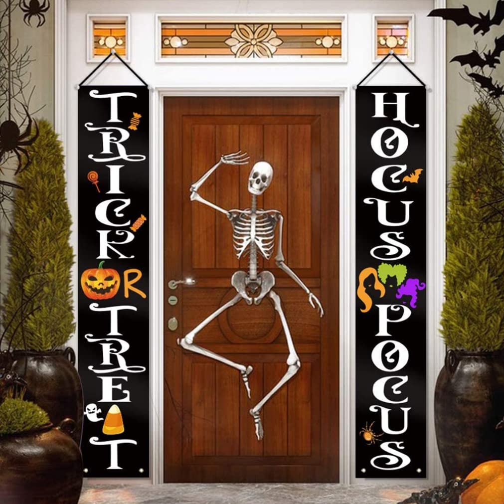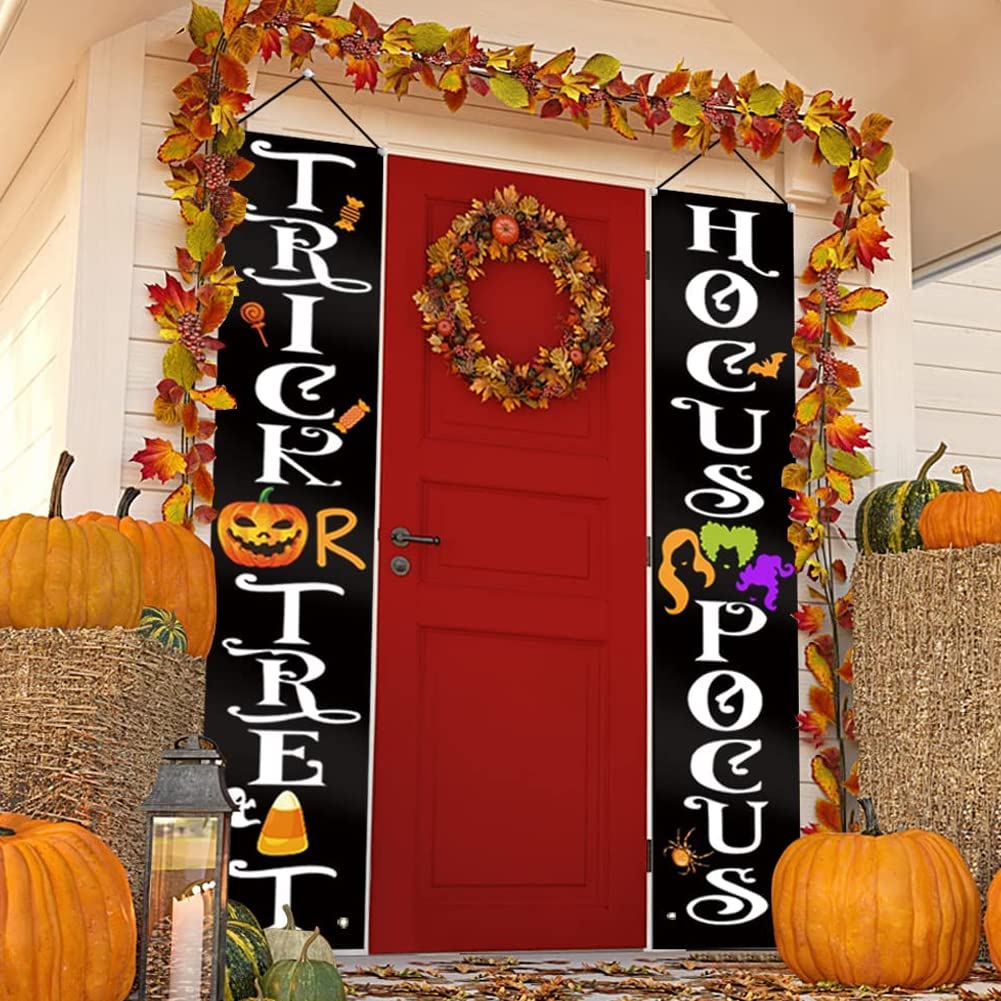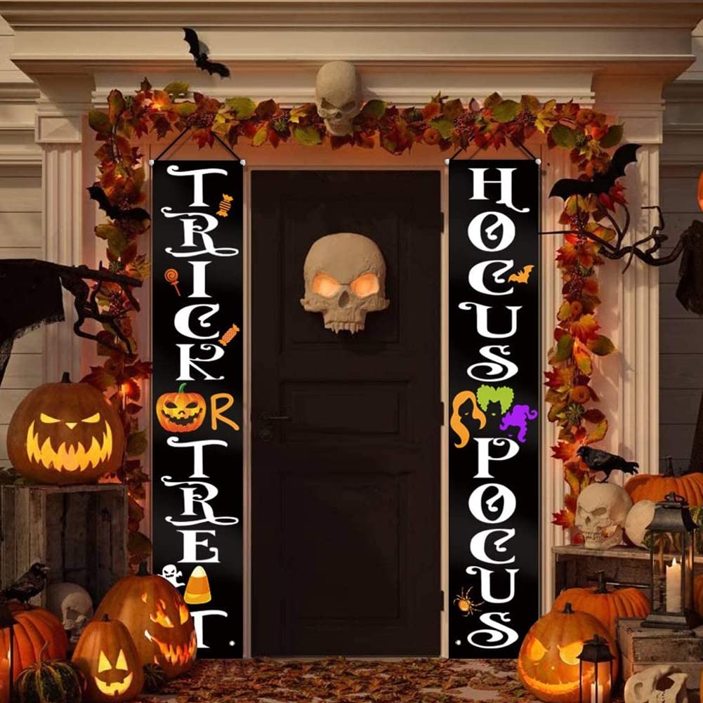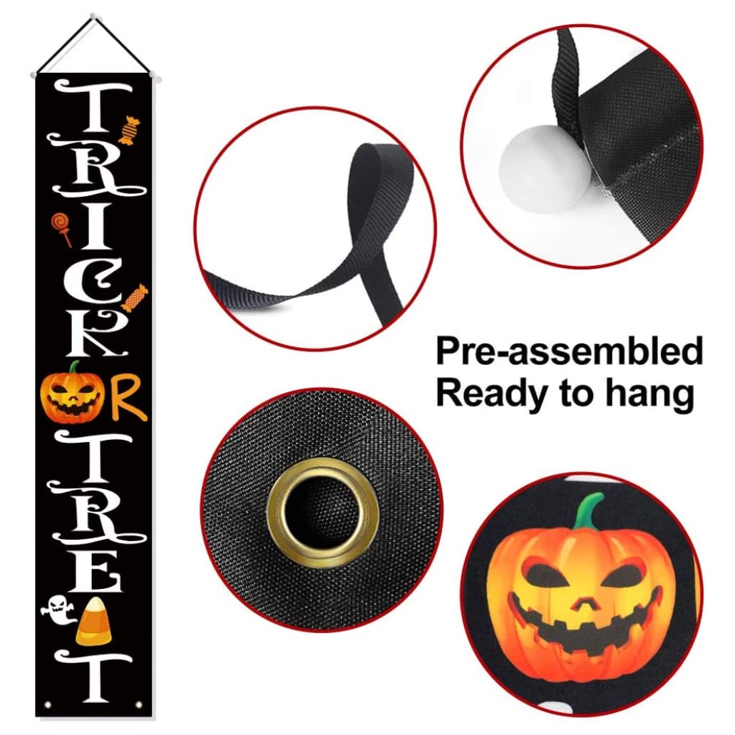 Appendilo sulla veranda, sul balcone o sulla porta del garage per offrire un benvenuto unico a tutti i tuoi ospiti. Sia che li usi per decorare le finestre o la porta d'ingresso, i piccoli demoni e goblin penseranno sicuramente di essersi imbattuti nella casa di una strega malvagia. Banner di Halloween per esterni Dotato di nastro filettato da 6 m, solido e bello, con asta in PVC e cappuccio morbido, facile da installare e non facile da staccare. striscioni per portico di Halloween La tenda della porta è realizzata in tessuto Oxford di poliestere 600D resistente agli agenti atmosferici. Forte e ti consente di usarlo ancora e ancora. decorazioni per esterni della strega di Halloween Questa tenda per coppia di Halloween utilizza una taglierina termica per tagliare i bordi, tagliare in modo netto senza sbavature e non facilmente disegnabile. decorazioni per la porta d'ingresso di Halloween La stampa è realizzata con inchiostro, stampa digitale a sublimazione del colore, elevata solidità del colore, non facile da sbiadire e resa cromatica brillante.