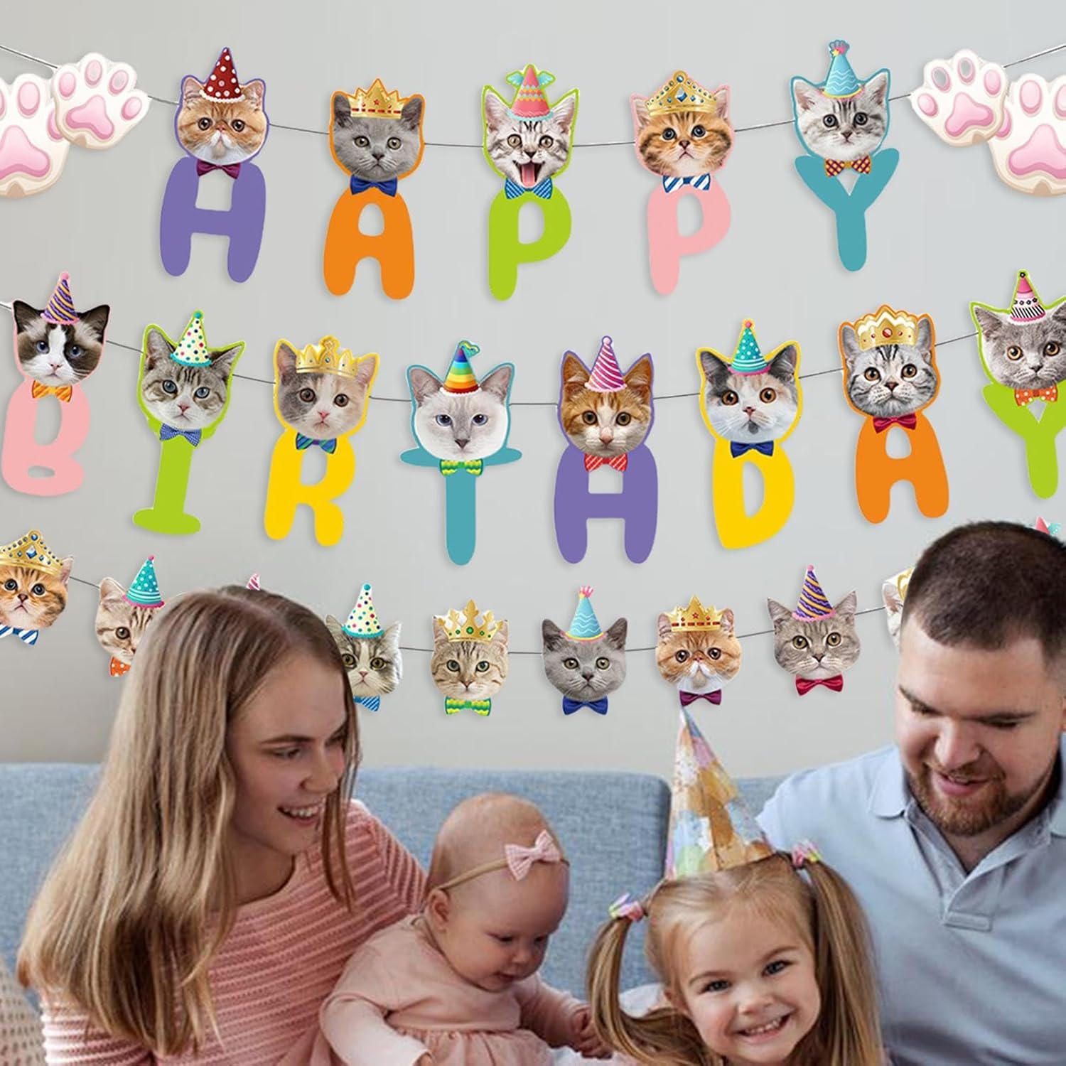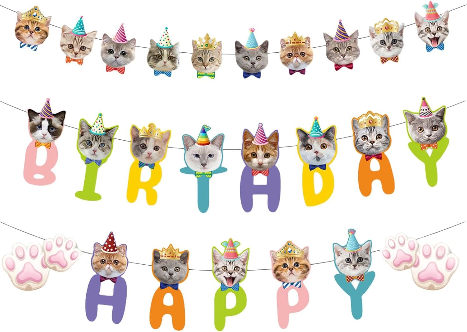 Festa delle fate: illumina il giorno speciale del tuo gattino con il nostro striscione di compleanno per gatti, perfetto per una festa a tema gatto; Include un adorabile striscione "Happy Birthday" a forma di zampa di gatto e un adorabile striscione con testa di gatto che garantisce una celebrazione perfetta. Striscione in cartone: utilizzando un cartone robusto e una tecnologia di stampa all'avanguardia, il nostro striscione per il compleanno di gatti è durevole e riutilizzabile. I design vivaci e resistenti al colore garantiscono un'aggiunta duratura e festosa a qualsiasi celebrazione. Libertà: appendi i musi e le zampe del gatto ovunque sulla corda flessibile e regola la spaziatura delle carte come preferisci con il nostro striscione di compleanno per gatti. Rendi speciale la giornata del tuo amico peloso con decorazioni creative per le feste che riflettono la sua personalità unica. Decorazione fatata: il nostro striscione di compleanno per gatti aggiunge un tocco divertente e stravagante a qualsiasi evento. Con adorabili facce di gatto e zampe carine, è perfetto per compleanni, baby shower o altri incontri. Portali a chiunque, anche se non sei il proprietario di un gatto. 【Ampia gamma di applicazioni】 Trasforma qualsiasi evento in un'occasione vivace con questo simpatico striscione di compleanno per gatti. Adatto a varie celebrazioni come l'adozione di animali domestici o i baby shower, è il modo perfetto per valorizzare la tua festa e renderla indimenticabile.