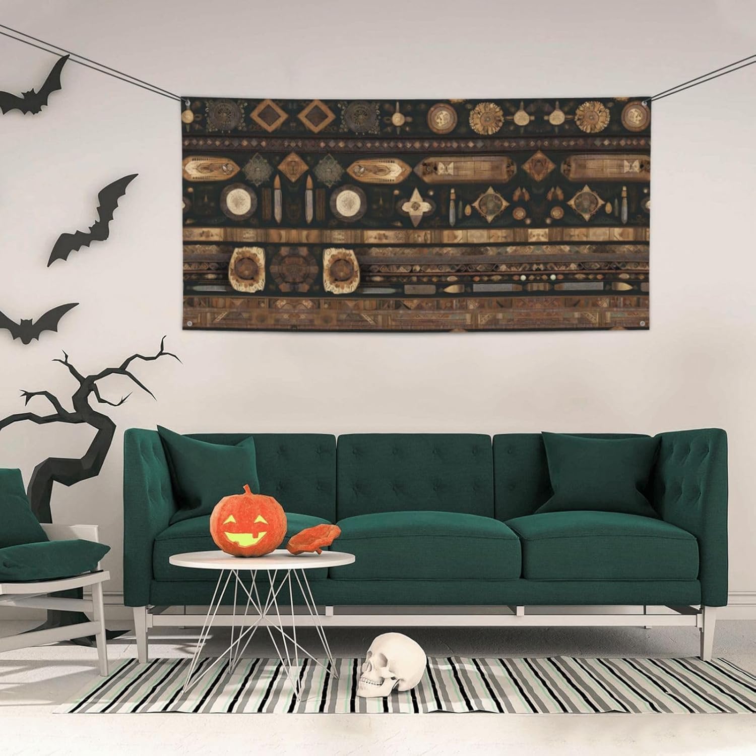 Realizzato al 100% in poliestere, lo striscione per feste in stile bohémien vacsAX è durevole e resistente all'usura, garantendo un uso a lungo termine. Colori vivaci: la stampa su tessuto di questo striscione presenta colori vivaci e luminosi, creando un'atmosfera festosa e allegra. Resistente ai raggi UV e allo sbiadimento: realizzato in materiale resistente ai raggi UV, questo banner è resistente allo sbiadimento anche dopo una prolungata esposizione al sole. Facile da appendere: con quattro fori circolari in metallo agli angoli, questo banner può essere facilmente appeso ovunque con solo una corda, rendendo la decorazione senza problemi. 【Uso versatile】 Perfetto per varie occasioni come Halloween, Natale, feste notturne e riunioni di amici. Può essere appeso su navi, automobili, giardini, bar e altro ancora.