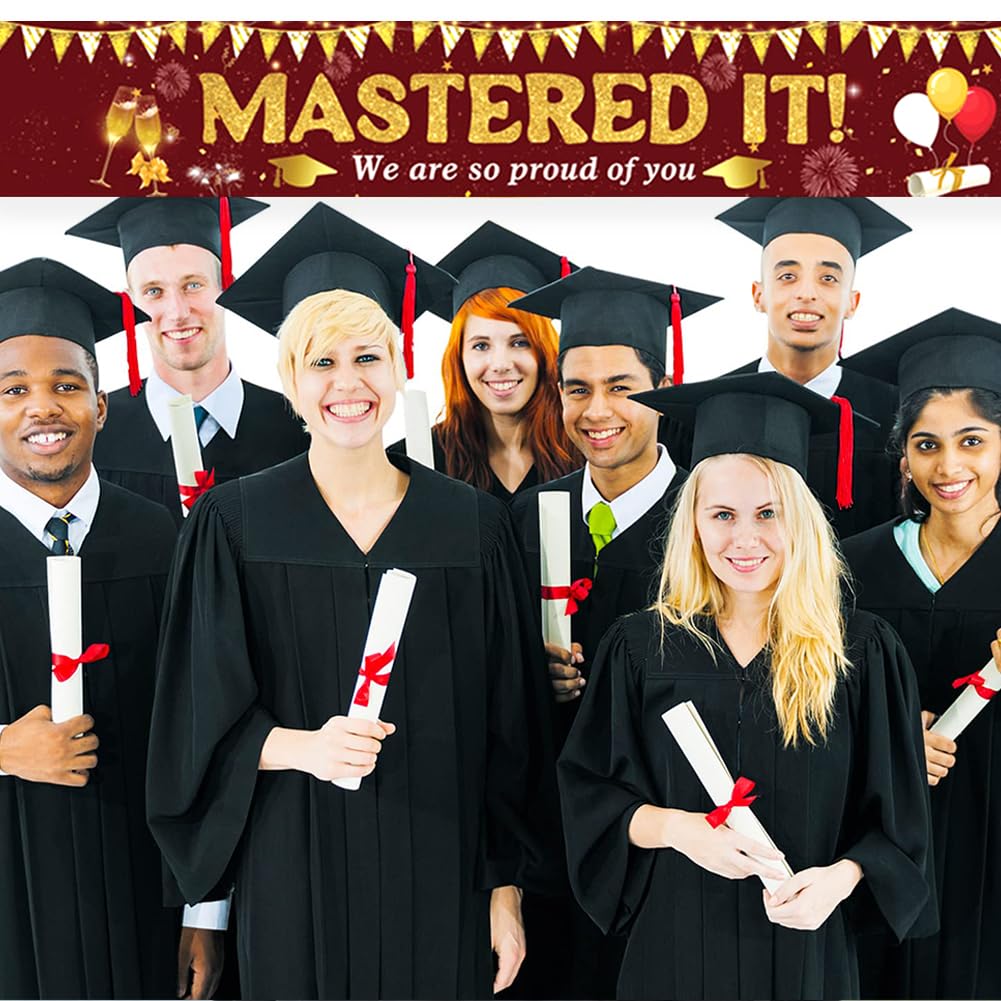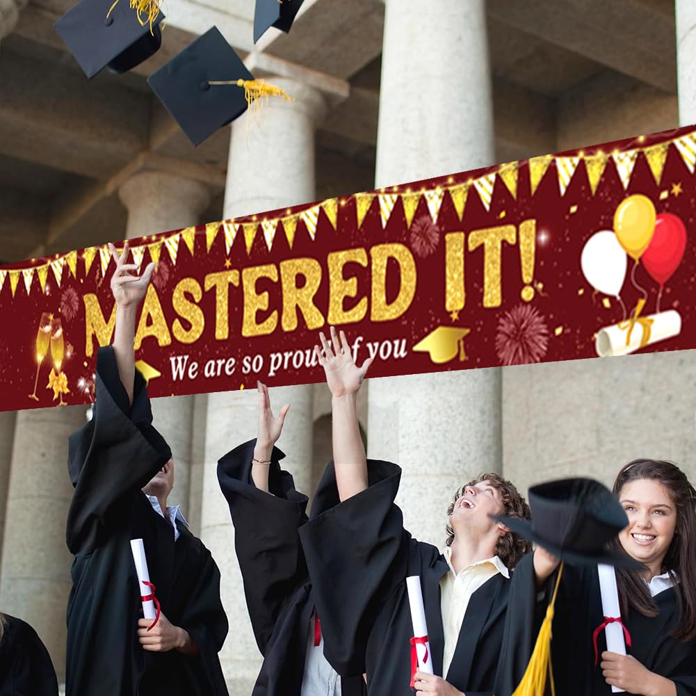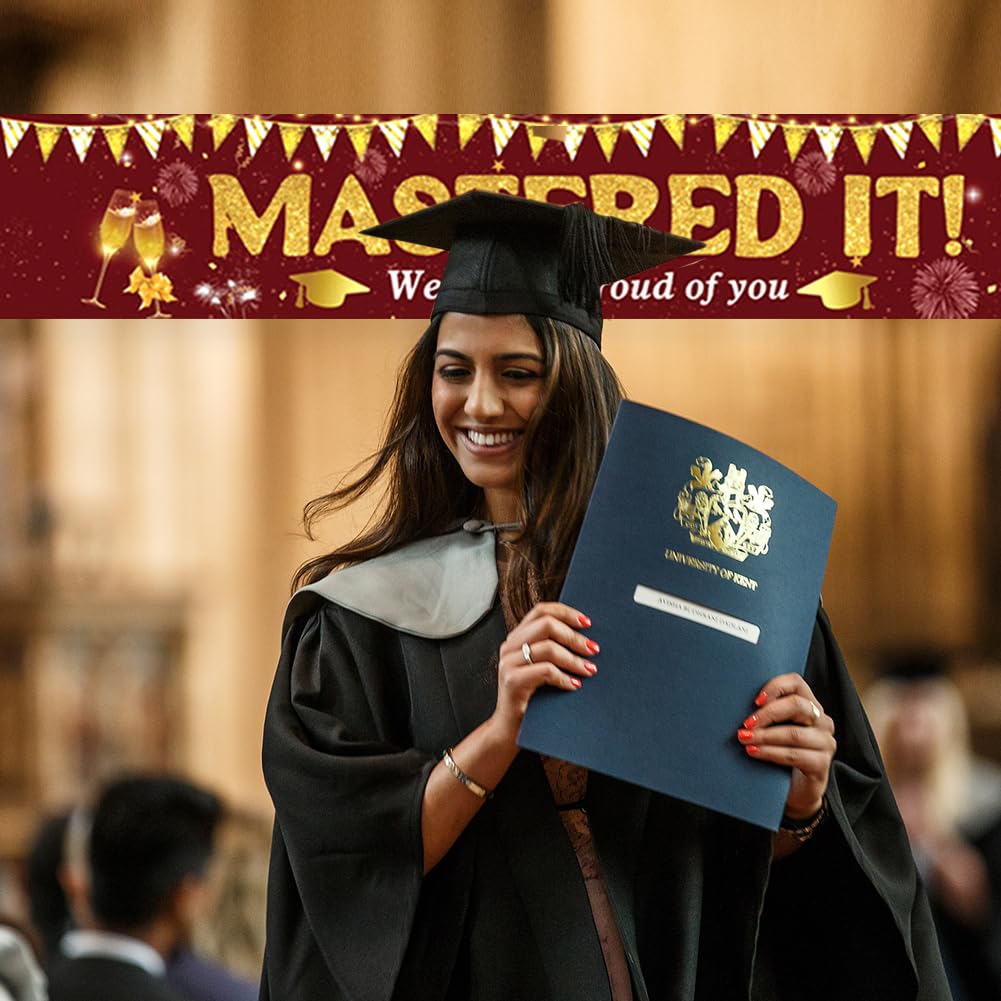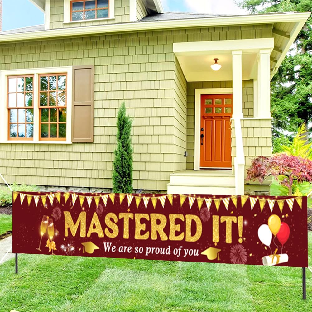 【Materiale】Tessuto in poliestere, resistente e durevole, antirughe, senza stiratura, nessuna deformazione. Durevole, leggero, resistente ai colori e agli agenti atmosferici, adatto per uso interno ed esterno. 【Dimensioni perfette】Circa 300 x 50 cm (118 x 19,7 pollici). È molto visibile e le persone possono vederlo da lontano. Dimensionato per adattarsi a qualsiasi spazio come pareti, portici, cortili, giardini, cortili, prati, ponti, bordo piscina e lago! 【Vantaggi】 Resistente, antivento, non facile da strappare, dai colori vivaci e stirabile. Molto stabile e bello. È stato il momento clou della festa. 【Occasioni applicabili】 Le parole extra large "Mastered It" portano facilmente un'atmosfera di laurea alla tua festa! Questo banner renderà la tua festa di laurea molto interessante e attraente. Creiamo un'atmosfera divertente e ricordi indimenticabili per i tuoi amici o familiari. Utilizzo: ai quattro angoli dello striscione è presente un piccolo foro che può essere fissato e appeso con delle corde. Può essere appeso a pareti, balconi, recinzioni, alberi, ecc. e può essere utilizzato all'interno e all'esterno.