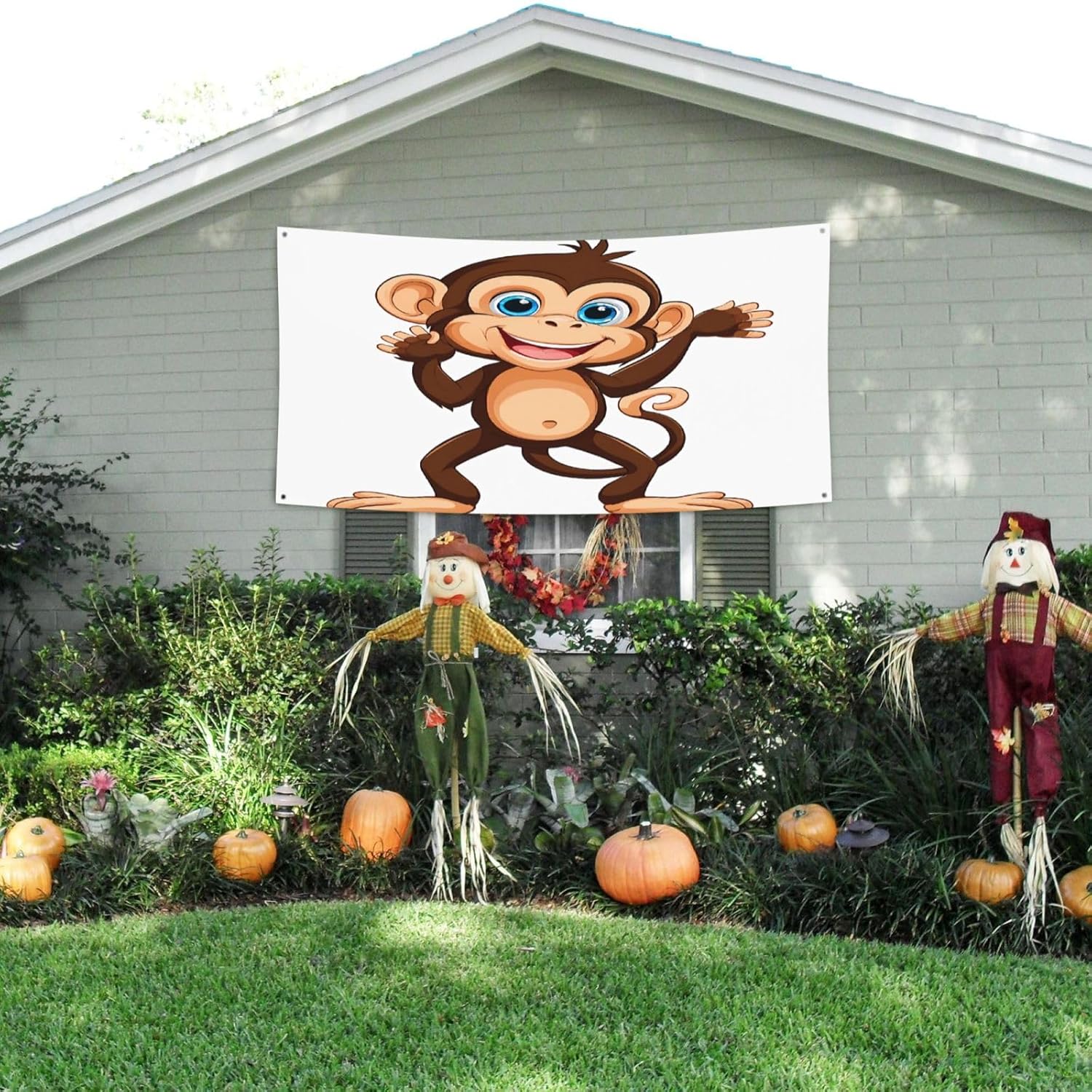 Banner per fondale per eventi personalizzato con stampa di scimmie carine Decorazione per interni ed esterni con occhielli in metallo per festival e feste