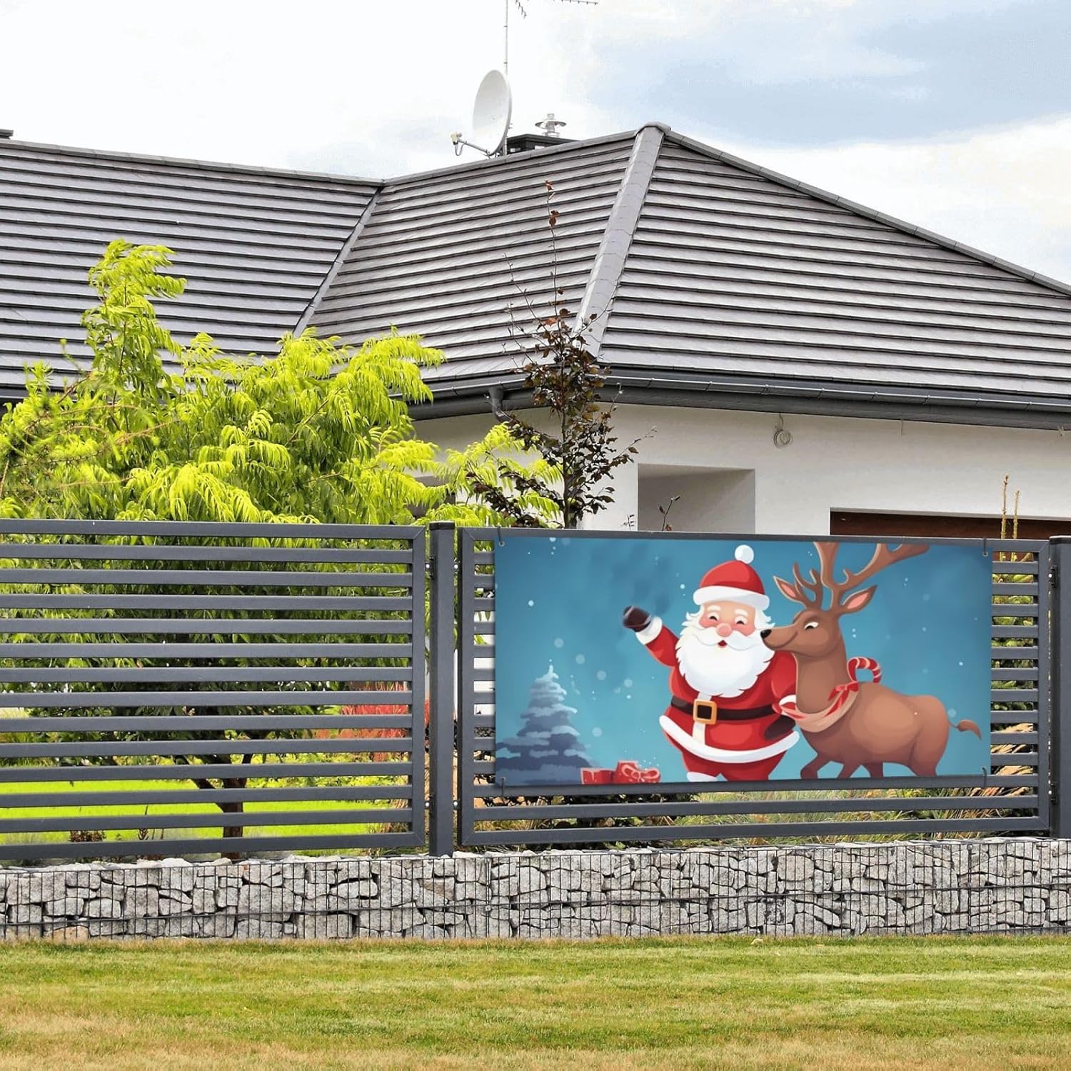 Materiali di alta qualità: i nostri striscioni con Babbo Natale e renne sono realizzati in tessuto di poliestere resistente e di qualità, impermeabile e leggero. I nostri striscioni hanno doppie cuciture attorno ai bordi. Il che lo rende più pulito e più bello. Inoltre, l'eccellente lavorazione artigianale è in grado di far sì che lo striscione sia appeso con durabilità. Dimensioni adeguate: le nostre decorazioni di compleanno misurano circa 47 x 24 pollici e 71 x 35 pollici, sono ideali per la decorazione delle feste; puoi trovare il posto perfetto per appenderlo facilmente, come parete, soffitto, porta, finestra, arco o cortile. Decorazione perfetta: questo striscione di congratulazioni non può essere utilizzato solo come decorazione di laurea su recinzioni, muri, alberi o porte di garage, ma anche come sfondo per una cabina fotografica di laurea che può lasciare ricordi indimenticabili. È facile da installare dove vuoi e può farti risparmiare tempo per tornare alla festa o scattare foto. Comodo da usare: il design semplice ti consente di infilare lo sfondo autunnale per portare l'autunno direttamente a casa tua, lo striscione è dotato di un anello di metallo nell'angolo, che consente un facile infilamento della corda, una volta finita la festa, puoi piegarlo facilmente per riporlo comodamente, preparato per la prossima celebrazione. Ampia applicazione: i banner possono decorare spazi per feste, come ristoranti, cene all'aperto, feste a tema animali o feste a tema western, che possono creare un'atmosfera vacanziera e vivace per i tuoi amici e familiari sia all'interno che all'esterno.
