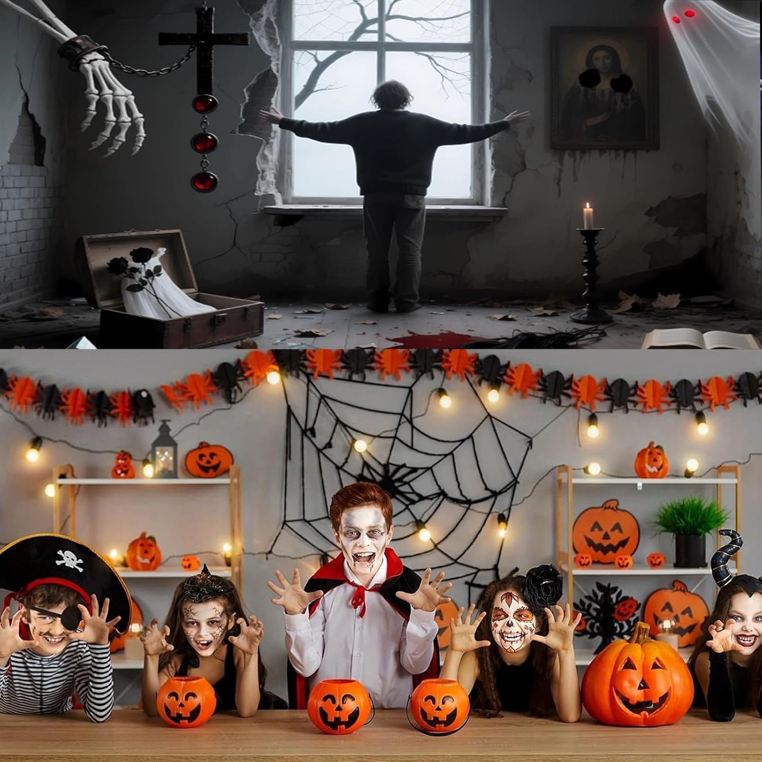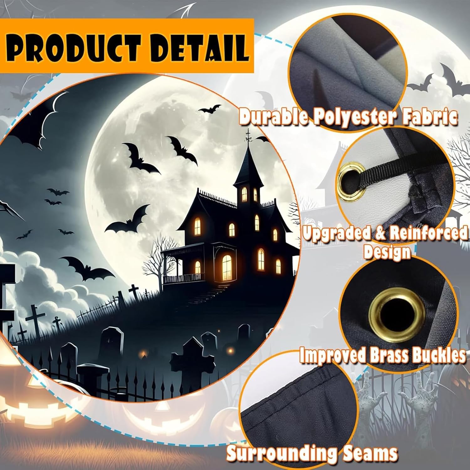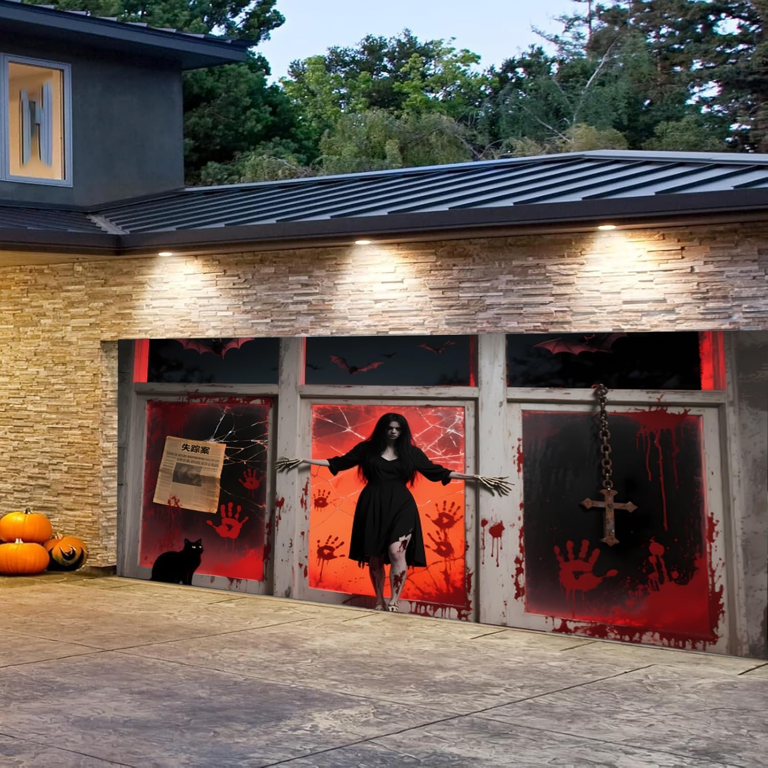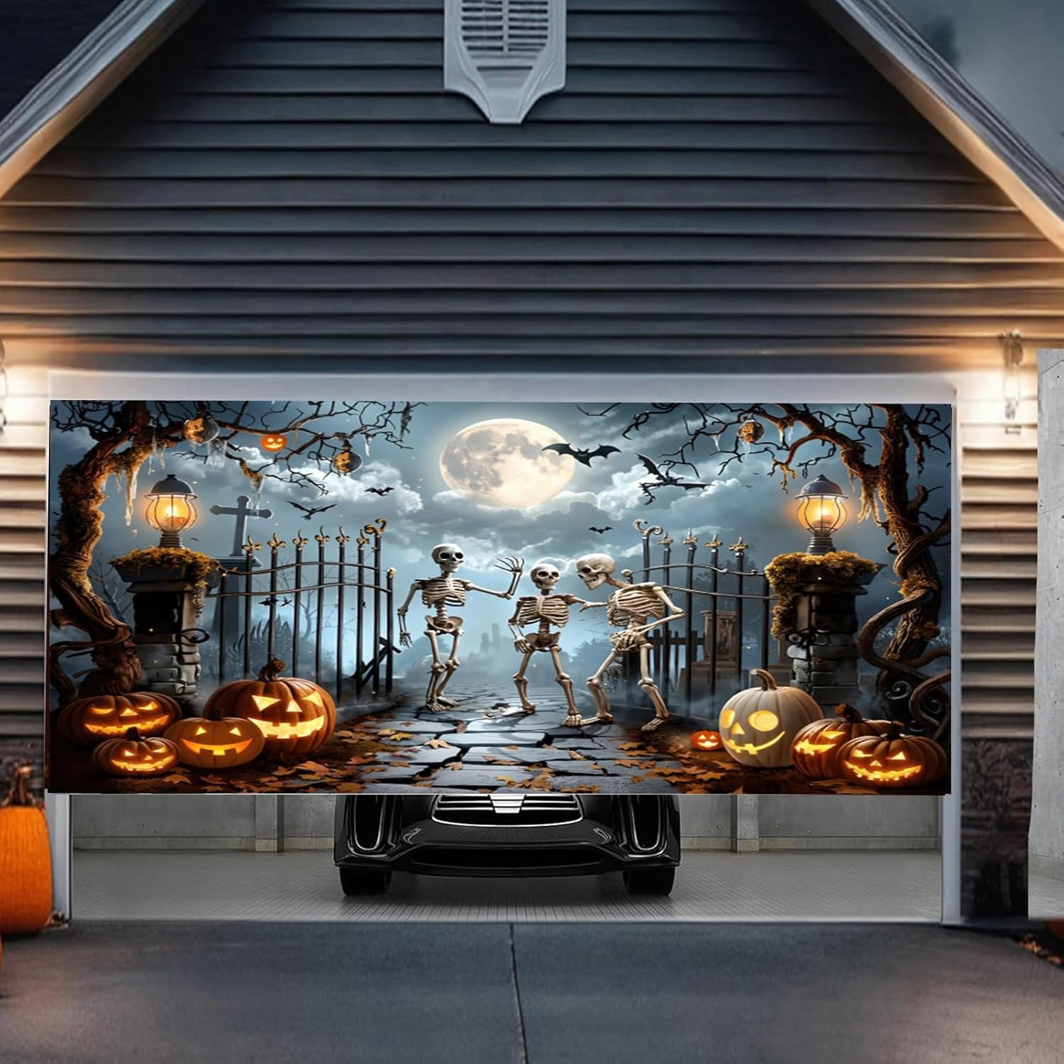 Stampa resistente allo sbiadimento: la nostra copertura per garage di Halloween è realizzata in resistente tessuto di poliestere. Utilizza inchiostro di alta qualità resistente allo sbiadimento per garantire che il vivace design natalizio rimanga luminoso e attraente per tutta la stagione delle vacanze, anche in condizioni meteorologiche avverse. Design festivo: il nostro striscione per porta del garage di Halloween presenta una grafica dettagliata a tema festivo con elementi spettrali di Halloween, tra cui zucche, cimiteri, pipistrelli, una notte di luna horror, alberi morti, ecc., che affascineranno sia i vicini che i passanti. Facile da usare: include 1 corda da 8 m, 6 nastri biadesivi, 3 ganci adesivi e 4 elastici. Ogni angolo ha un foro di rame per appenderlo facilmente con le corde. Permette di aprire e chiudere facilmente la porta del garage senza causare danni. GRANDE BANNER PER GARAGE: questa decorazione per garage con teschio di Halloween è progettata in grandi dimensioni, misura circa 13x6 piedi/4x1,8 m, 16x7 piedi/4,8x2,1 m, 8x7 piedi/2,4x2,1 m, garantisce la massima attrazione e impatto visivo; assicurati di prendere la taglia. Ampia applicazione: questa decorazione spettrale e vivace per la porta del garage renderà la tua notte di Halloween indimenticabile. Non solo per la tua festa di Halloween, ma può anche essere utilizzato come sfondo per cabine fotografiche, muri stradali, decorazioni per la casa ed eventi a tema.