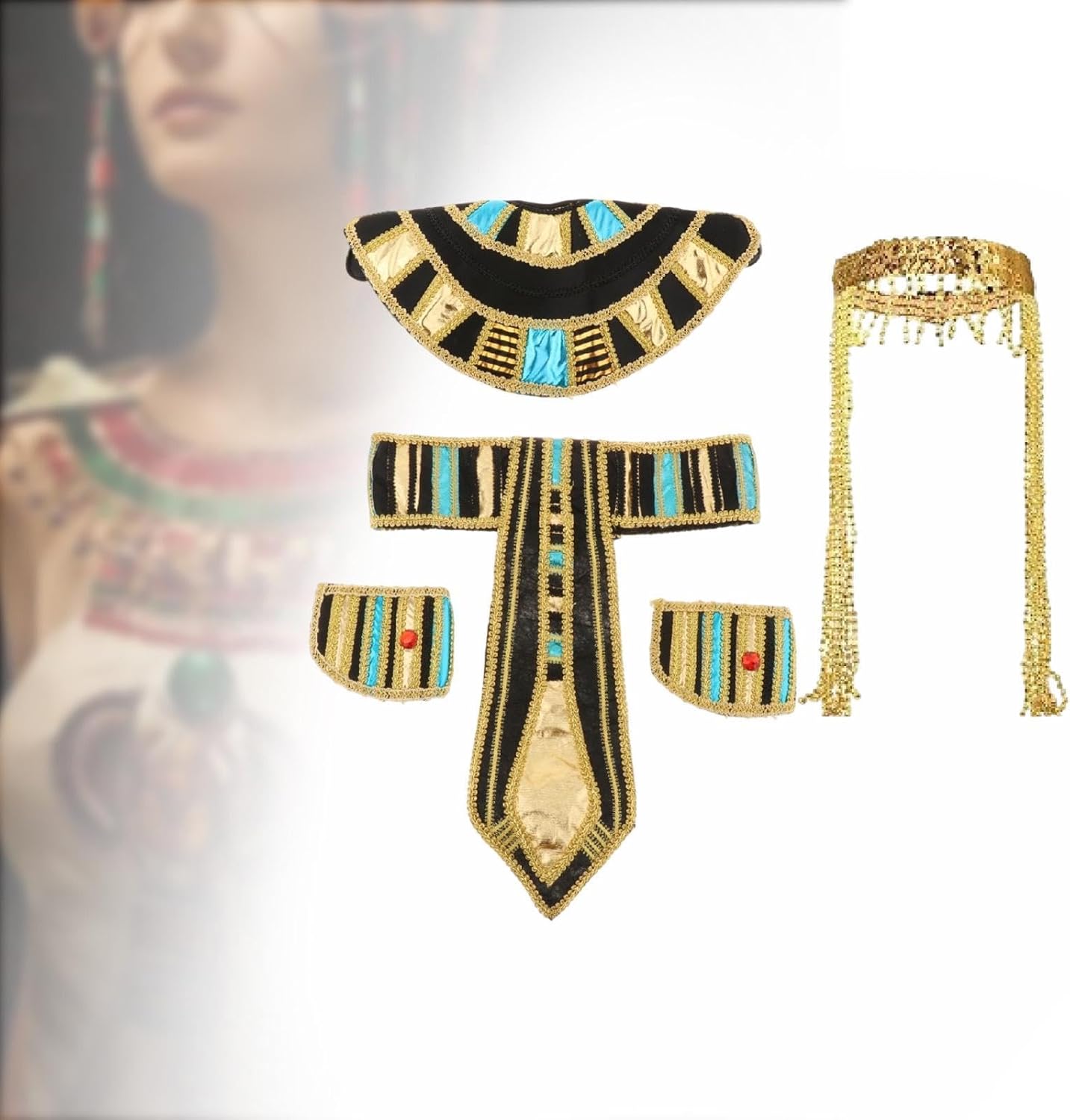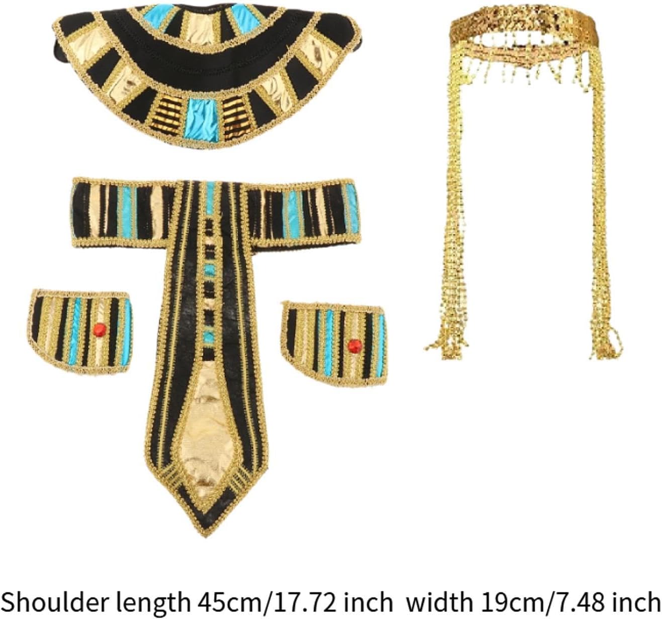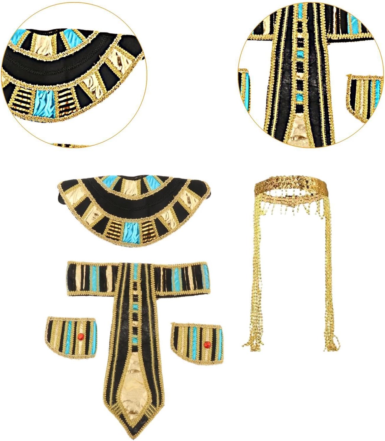 【Accessori per costumi】: questo set di costumi egiziani include 1 copricapo egiziano, 1 collare egiziano, 1 cintura egiziana e un paio di cinturini da polso. Questi accessori belli e pratici sono perfetti per completare il tuo outfit egiziano 【Divertiti con il gioco di ruolo】: con i suoi colori vivaci e l'aspetto meraviglioso, gli accessori per costumi egiziani ti renderanno il centro dell'attenzione delle persone, portandoti molti complimenti e aiutandoti a scattare bellissime foto 【Facile da indossare】: questo set di costumi egiziani è facile da indossare e da togliere, puoi abbinarlo bene ad altri costumi e accessori egiziani per aiutarti a creare un look affascinante 【Comodo da indossare】: gli accessori per costumi egiziani sono realizzati in tessuto di qualità, morbido e confortevole, che ti offre un'esperienza di utilizzo piacevole, leggero e non aggiunge troppo peso 【Utilizzo versatile】: il costume egiziano crea look accattivanti ed è adatto per costumi di Halloween, giochi di ruolo, spettacoli teatrali, giochi drammatici, feste in costume egiziane ed eventi