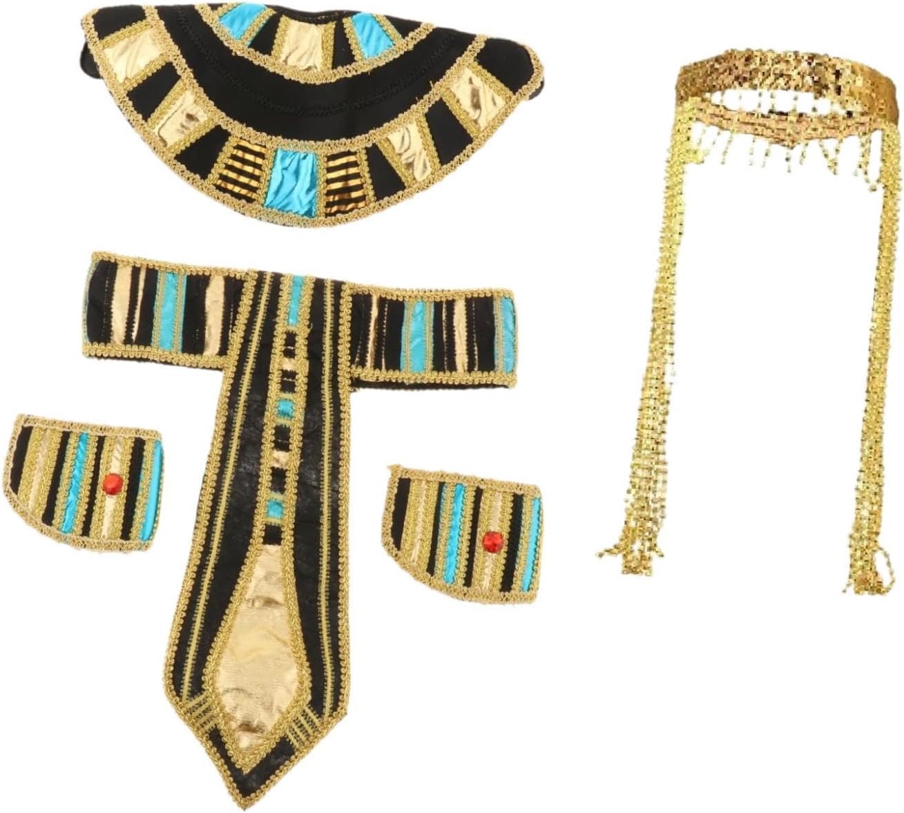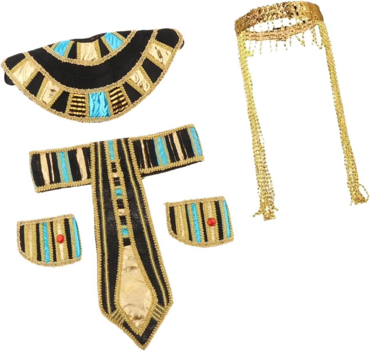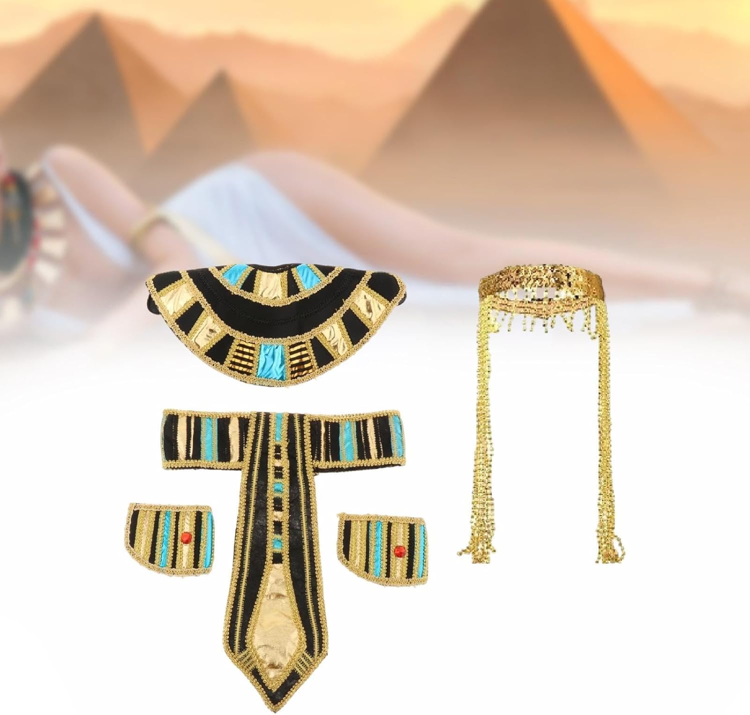 【Accessori per costumi】: questo set di costumi egiziani include 1 copricapo egiziano, 1 collare egiziano, 1 cintura egiziana e un paio di cinturini da polso. Questi accessori belli e pratici sono perfetti per completare il tuo outfit egiziano 【Divertiti con il gioco di ruolo】: con i suoi colori vivaci e l'aspetto meraviglioso, gli accessori per costumi egiziani ti renderanno il centro dell'attenzione delle persone, portandoti molti complimenti e aiutandoti a scattare bellissime foto 【Facile da indossare】: questo set di costumi egiziani è facile da indossare e da togliere, puoi abbinarlo bene ad altri costumi e accessori egiziani per aiutarti a creare un look affascinante 【Comodo da indossare】: gli accessori per costumi egiziani sono realizzati in tessuto di qualità, morbido e confortevole, che ti offre un'esperienza di utilizzo piacevole, leggero e non aggiunge troppo peso 【Utilizzo versatile】: il costume egiziano crea look accattivanti ed è adatto per costumi di Halloween, giochi di ruolo, spettacoli teatrali, giochi drammatici, feste in costume egiziane ed eventi