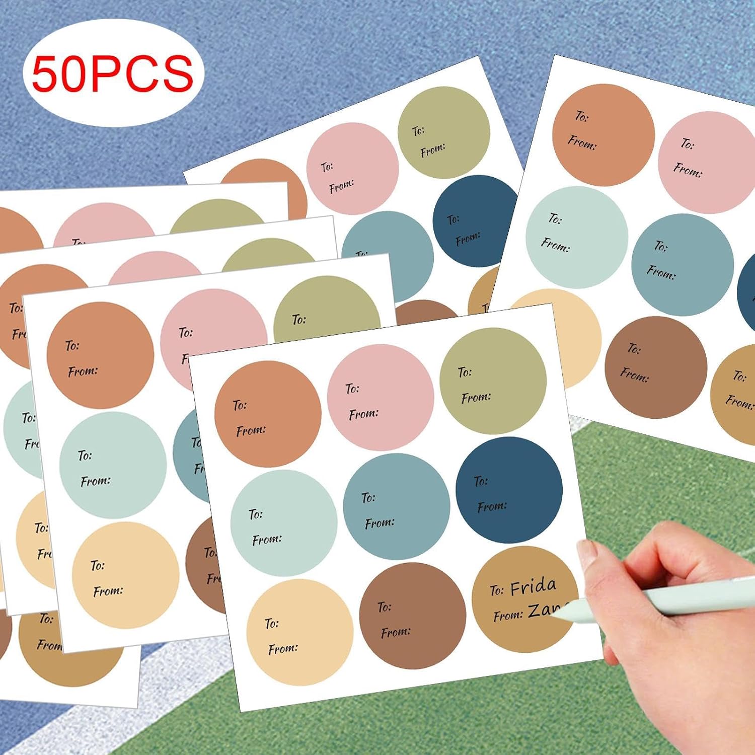 Facili da usare: questi adesivi sono facili da applicare su qualsiasi superficie, come regali, buste, imballaggi o barattoli Design semplice: valorizza la confezione regalo con questi eleganti adesivi, caratterizzati dalla stampa del design A/Da che consente una facile scrittura con le penne. Quantità sufficiente: la confezione include 50 fogli/300 etichette adesive rotonde per regali in 9 colori diversi. Il diametro di ogni singolo adesivo è di 6,35 cm/2,5 pollici. Ampia applicazione: le etichette regalo eleganti e versatili sono perfette per compleanni, matrimoni, addio al nubilato, shower, Pasqua, Ringraziamento o feste di Natale, feste Qualità premium: realizzati in PVC, questi adesivi circolari sono spessi, lisci e facili da scrivere