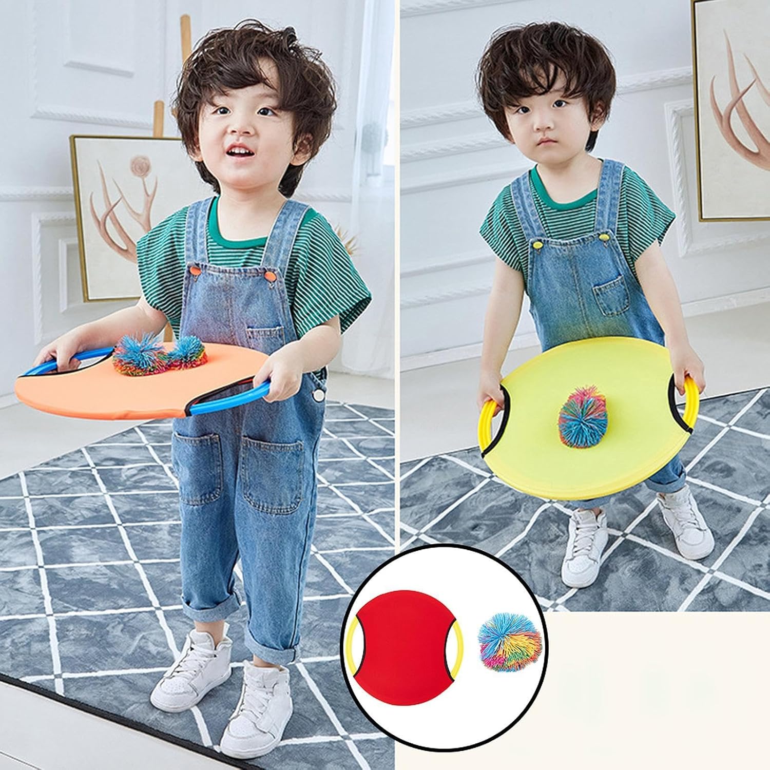 【Set di giochi di paddle a sfera di qualità】: realizzato con design elastico del disco morbido in tessuto, garantendo la sicurezza. Ottimo per bambini e familiari, tutti possono divertirsi a lanciare o colpire la palla avanti e indietro 【Multiuso】: il design a palla di lancio e cattura incoraggia i bambini a migliorare le loro capacità di lancio e cattura aumentando al contempo la loro forza fisica 【Ottimo esercizio】: Migliora le capacità motorie del bambino e il coordinamento degli occhi per la mano con questa attrezzatura di allenamento sensoriale a sfera rimbalzante appositamente progettata, ottima per i bambini 【Portatile】: set di palline paddle e spalline Bouncy è versatile sia per uso esterno che per interni, fornendo comodità e flessibilità per giocare ovunque 【Game di sviluppo dei bambini】: un grande giocattolo sportivo che combina divertimento con lo sviluppo fisico, consentendo ai bambini di migliorare le loro capacità atletiche durante il gioco
