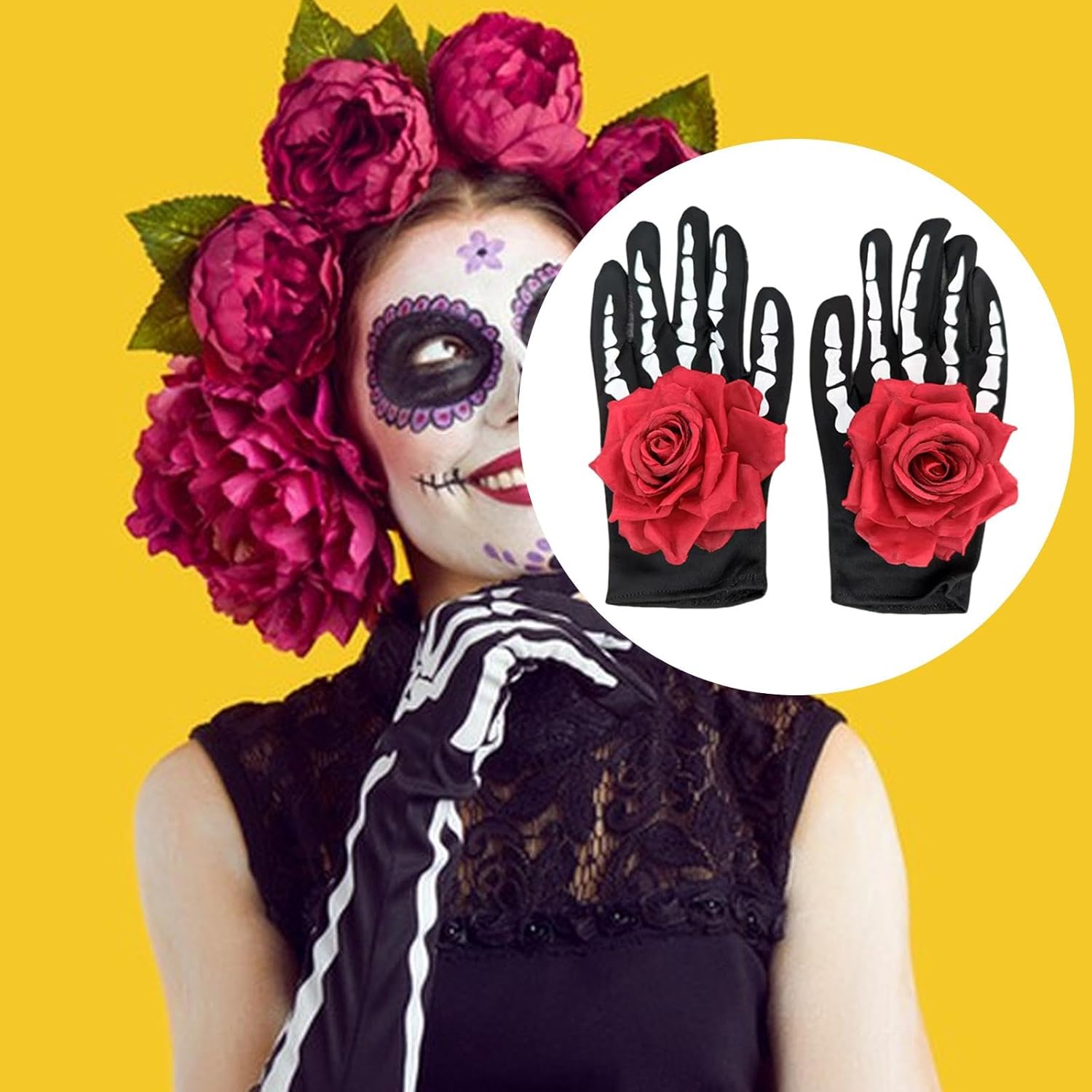 【Design unico】: Caratterizzati da una combinazione di motivi a scheletro e rosa, questi guanti offrono un'estetica distintiva e inquietante, ideale per qualsiasi o festa di Halloween 【Dimensioni ideali】: con dimensioni di 24*10 cm, questi guanti da teschio di Halloween sono progettati per adattarsi comodamente alla maggior parte delle dimensioni delle mani, offrendo una vestibilità aderente e sicura 【Ottimo per il cosplay di Halloween】: questi guanti da scheletro a forma di rosa sono un accessorio ideale per i giochi di ruolo di Halloween, aggiungendo un tocco spettrale ma elegante al tuo costume 【Set completo】: ogni acquisto include un paio di guanti, assicurandoti di avere tutto il necessario per completare il tuo look di Halloween 【Materiale di qualità】: realizzati in robusto poliestere, questi guanti da scheletro per costumi di Halloween garantiscono comfort e longevità, consentendoti di goderteli in più occasioni