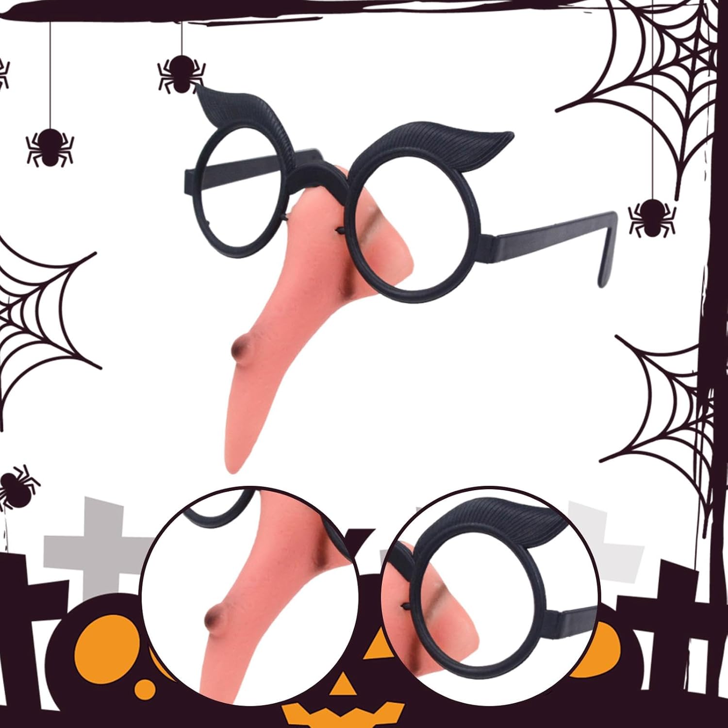 【Facile da usare】: basta indossare occhiali con il naso attaccato per una trasformazione istantanea da strega; adatto sia per adulti che per bambini 【Materiale di qualità】: il naso degli occhiali da strega è realizzato in materiale PP leggero, comodo da indossare per lunghi periodi durante feste o spettacoli teatrali 【Accessori per feste di Halloween】: il divertente set di accessori per costumi da strega include una montatura per occhiali con un lungo naso attaccato, adatto per feste di Halloween, cosplay ed eventi a tema 【Accessori per costumi】: il design realistico presenta un naso da strega lungo 10 cm e una montatura per occhiali cm per trasformare istantaneamente il tuo look per spettacoli o riunioni 【Confezione】: Ogni confezione contiene 1 montatura per occhiali da naso da strega, che la rende un comodo accessorio per bomboniere, cabine fotografiche, feste in maschera o costumi teatrali