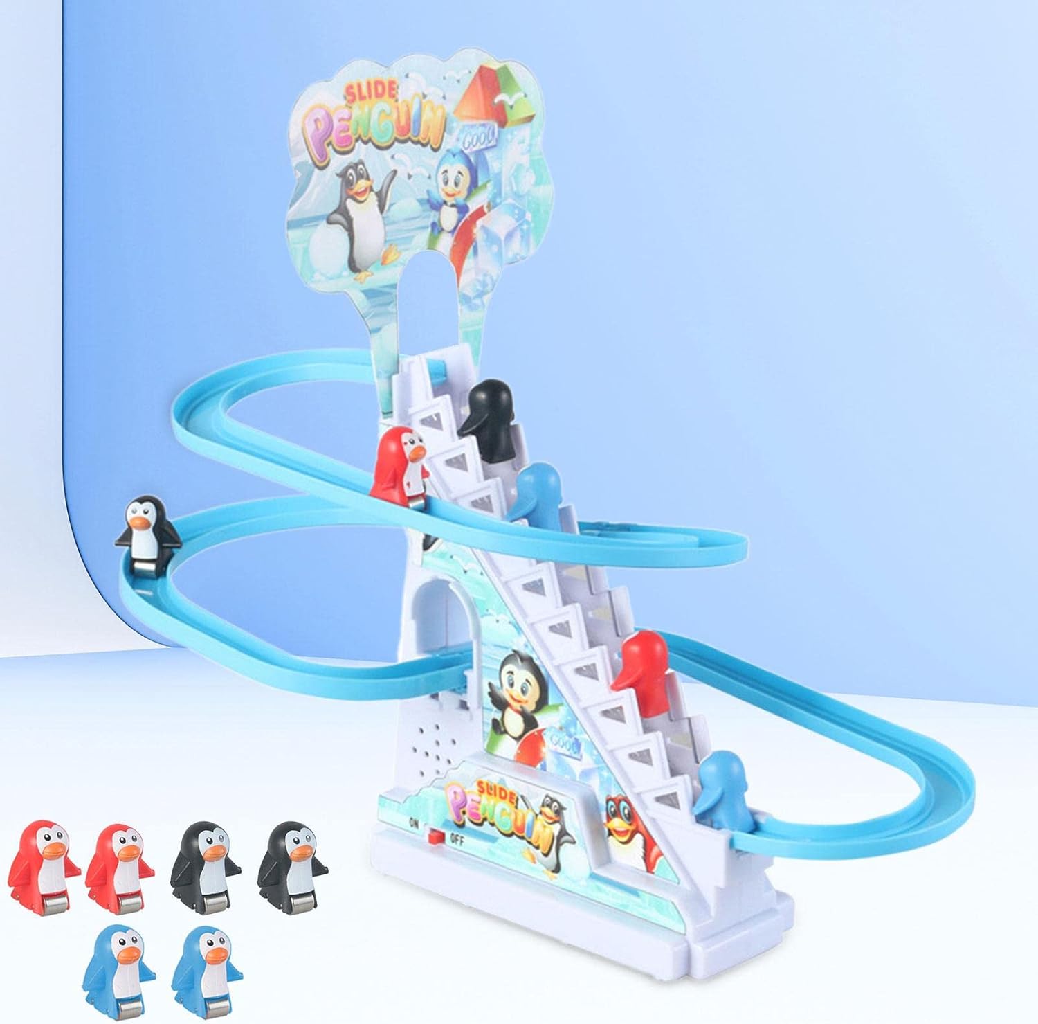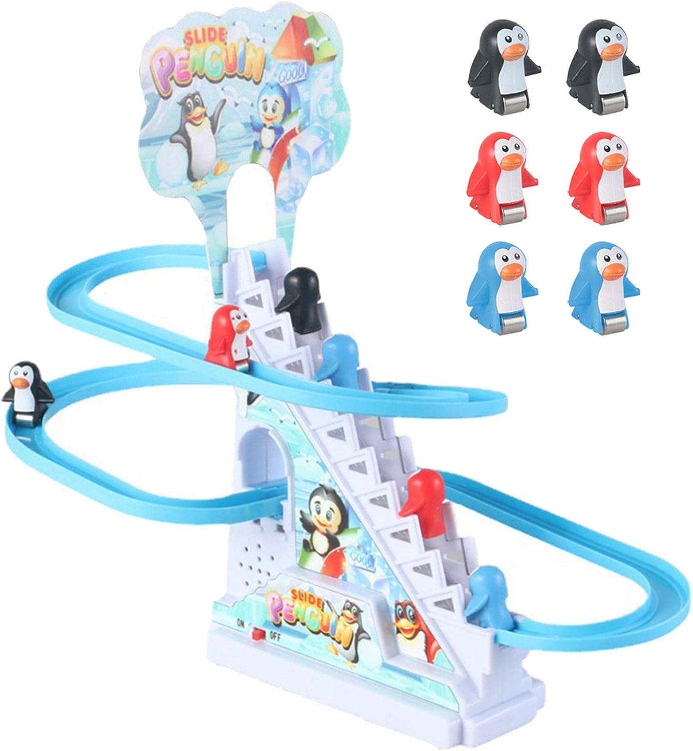 【GIOCATTOLI EDUCATIVI PRECEDENTI】: questo giocattolo scorrevole a forma di pinguino sviluppa la motricità fine dei bambini e li aiuta a identificare i colori, migliorare la coordinazione occhio-mano. 【FACILE DA INSTALLARE】: il set di giochi per piste da corsa richiede un semplice montaggio e smontaggio, conveneint da portare ovunque smontaggio. 【SET DI GIOCATTOLI SCORREVOLI】: pinguini divertenti creativi salgono e scivolano giù. 【LUCI E MUSICA LAMPEGGIANTI】: i giocattoli con scivolo sono dotati di luci lampeggianti e musica , ei pinguini saliranno con la musica e poi scivoleranno giù per lo scivolo. 【REGALI】: il set di giocattoli per diapositive è un bel compleanno, vacanze, regali per bambini per bambini, ragazzi, ragazze, bambini.
